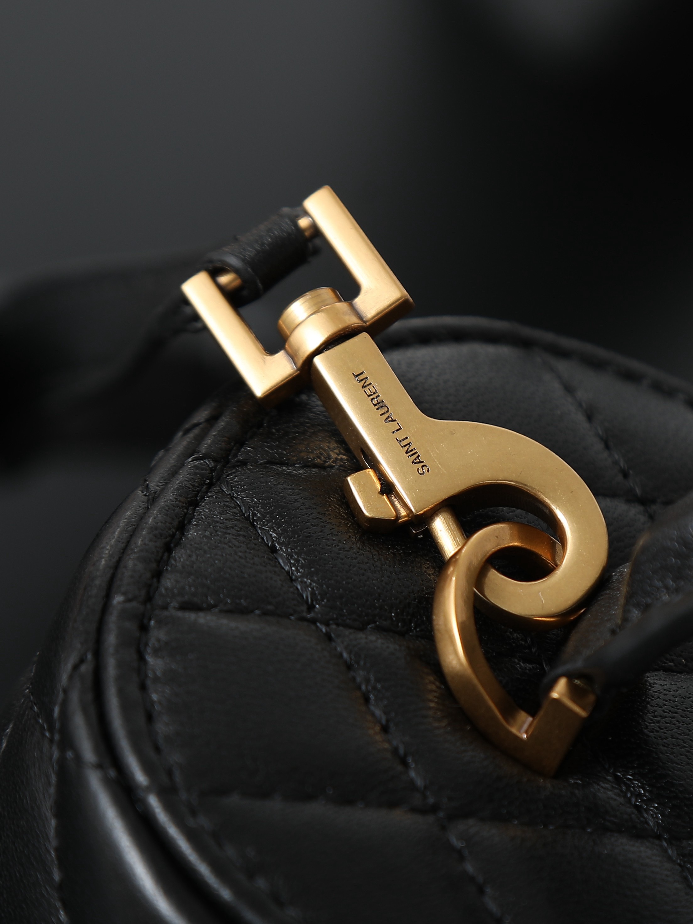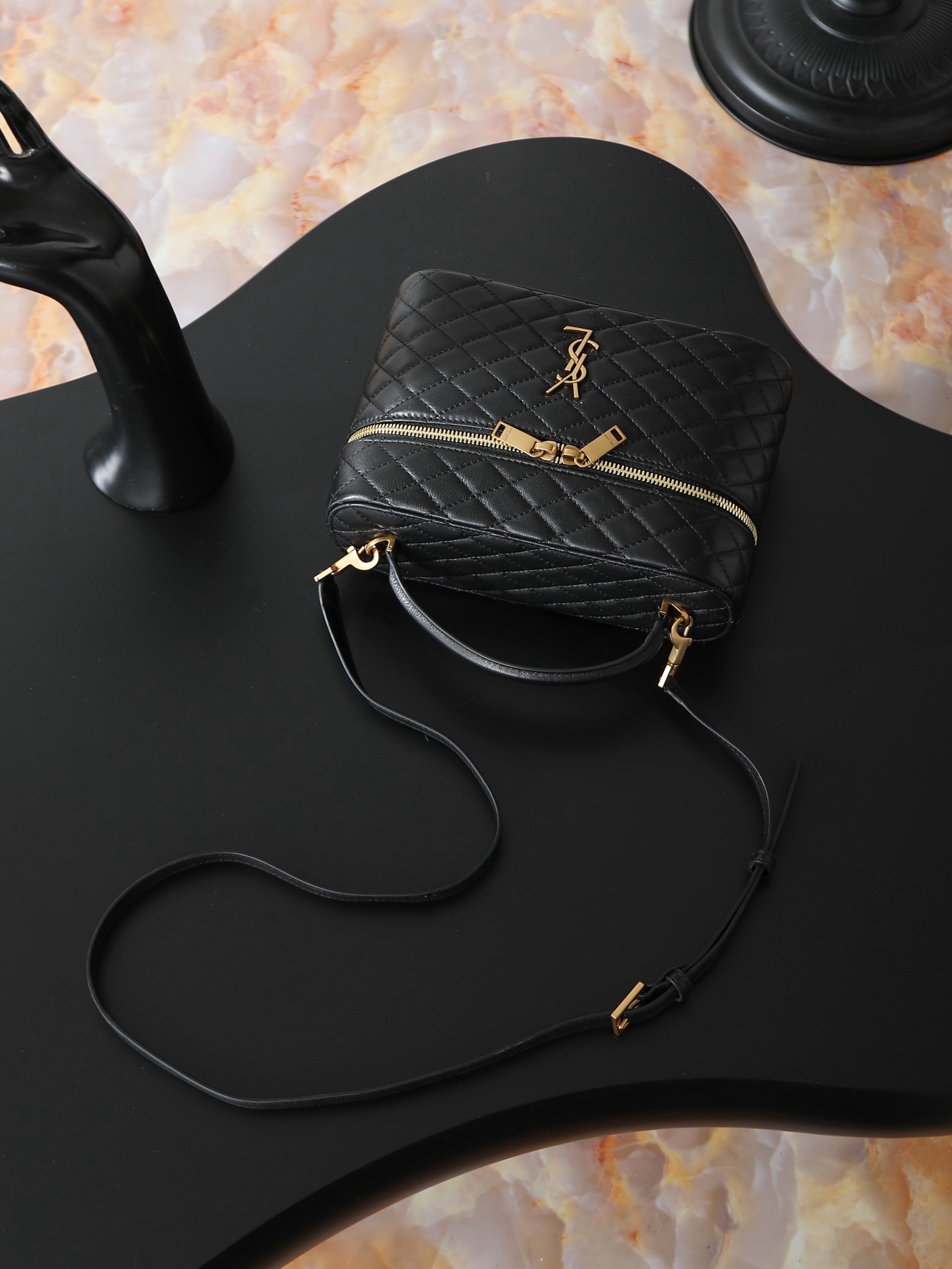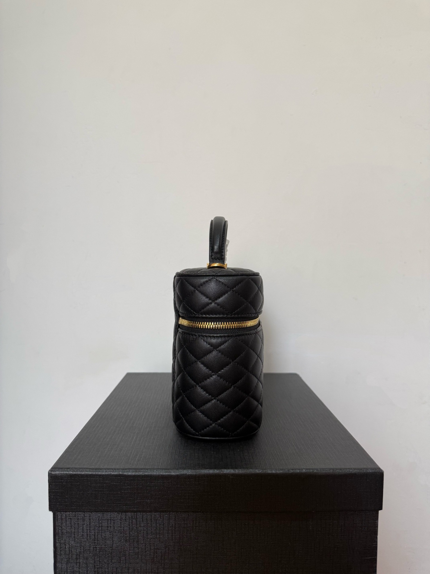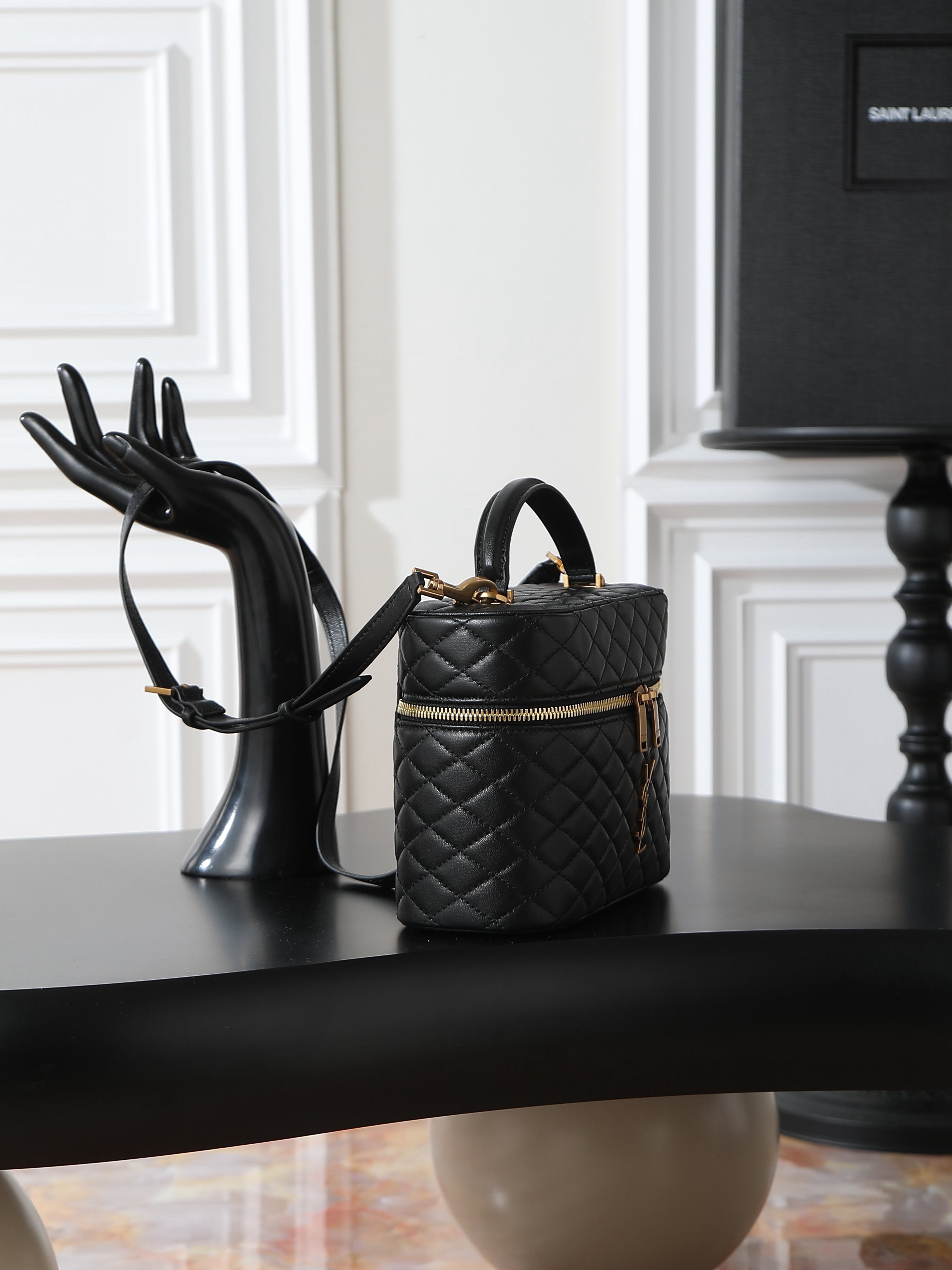 SAINT LAURENT GABY gold hardware brand logo sheepskin cosmetic bag, large black
