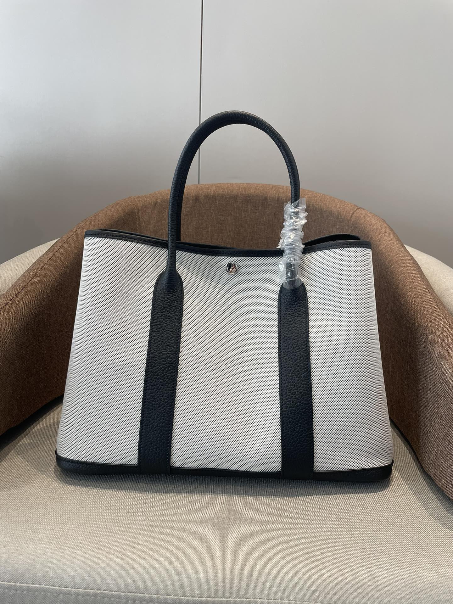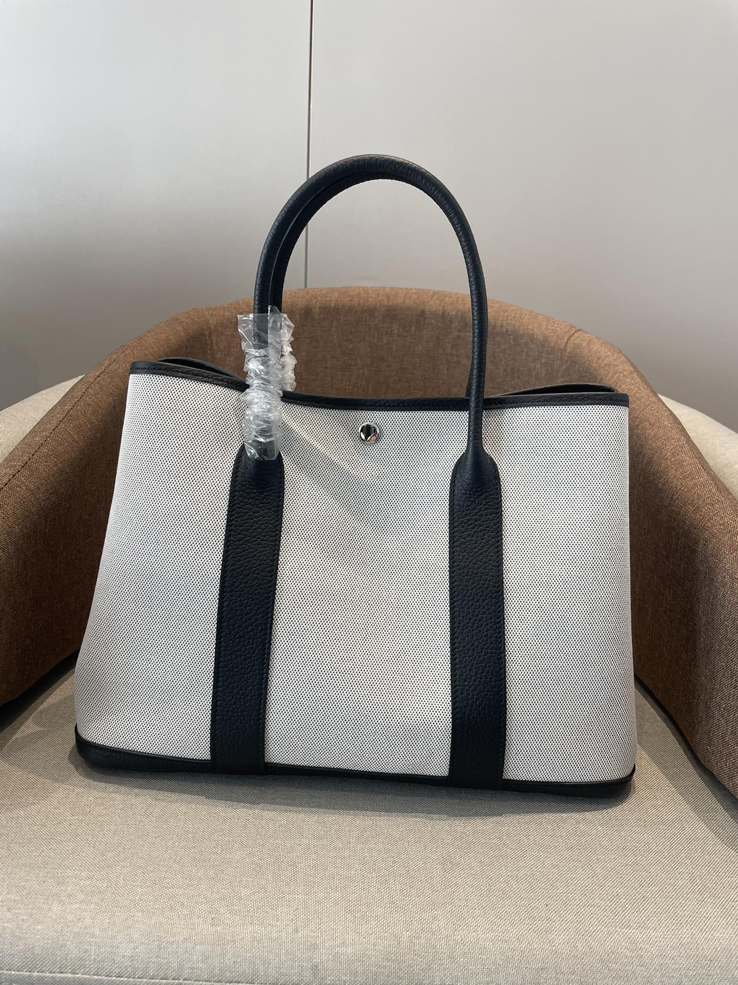 HERMES Garden Party 30 Silver clasp handbag 30 Women\'s Windbreaker/Black