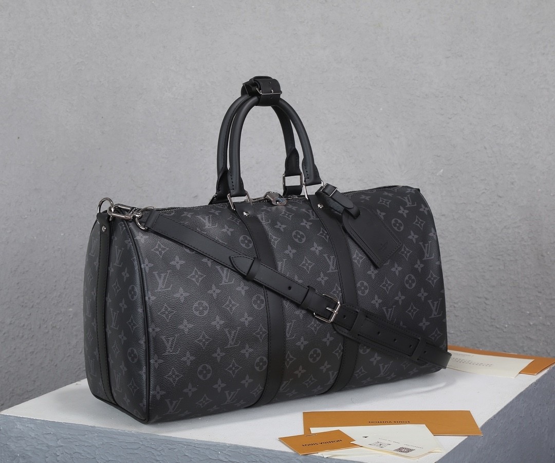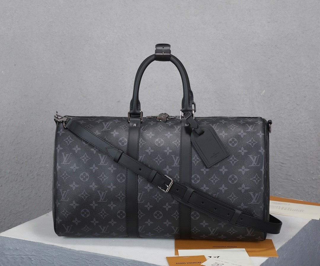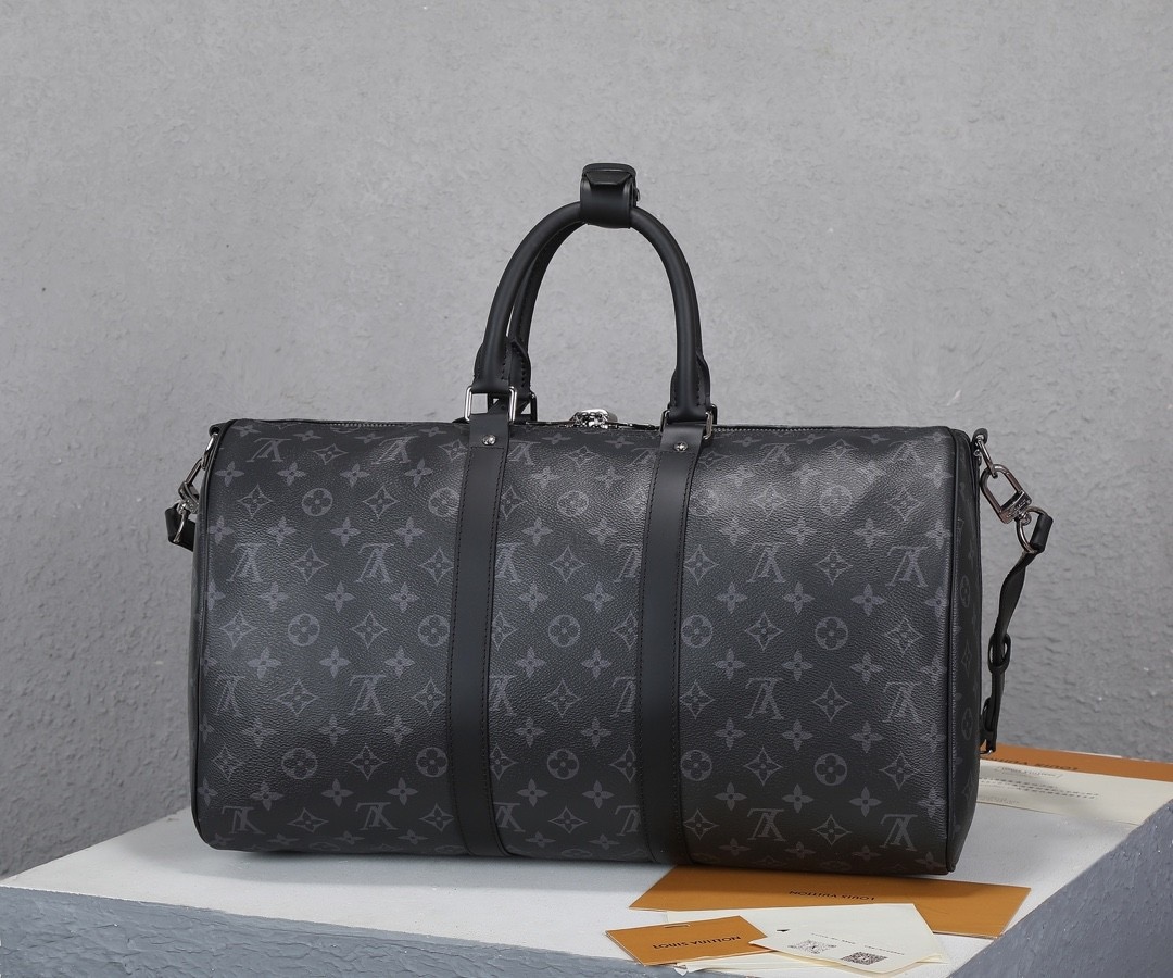LOUIS VUITTON keepall Bandouliere 50 Monogram full-print adjustable detachable shoulder strap single-shoulder crossbody hand-held travel bag, black