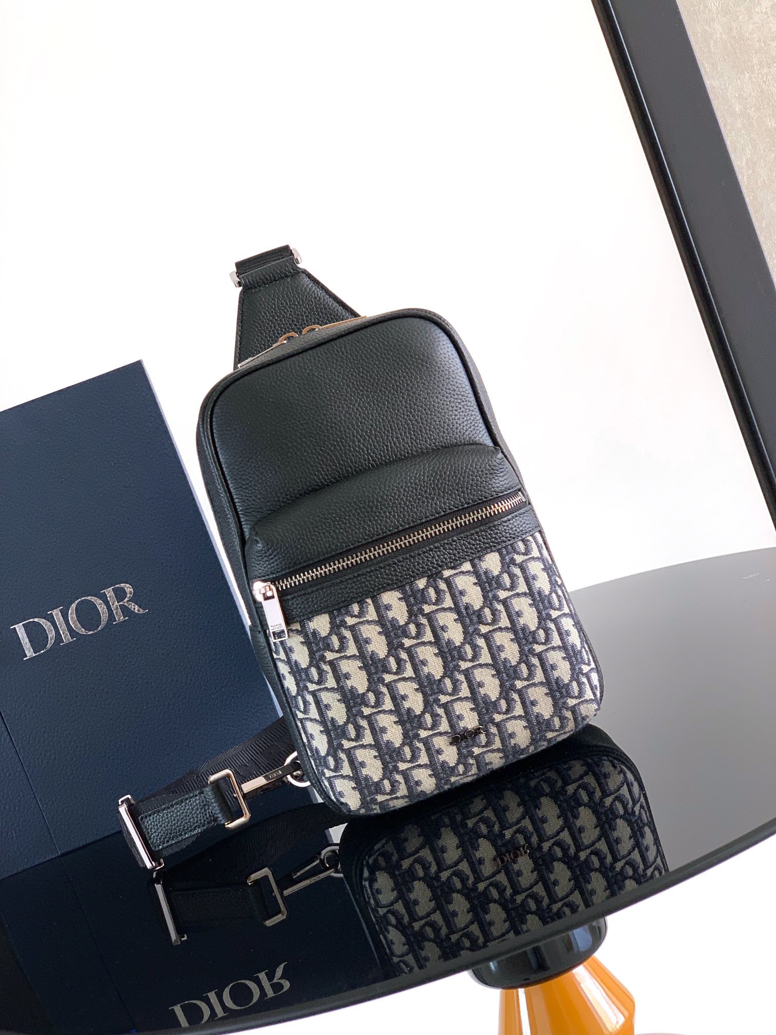 DIOR Rider 2.0 brand logo zipper opening crossbody single-shoulder bag for men, black