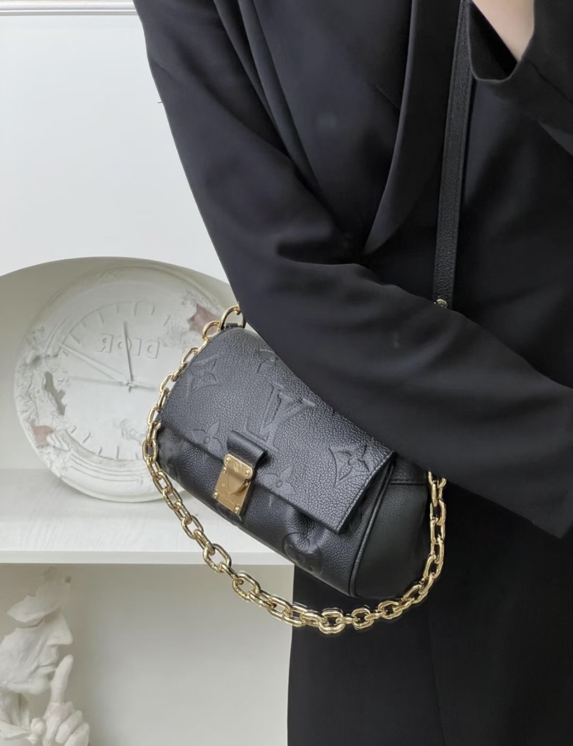 LOUIS VUITTON Favorite Classic monogram embossed chain dumpling bag, underarm bag, shoulder bag, regular women\'s style, black