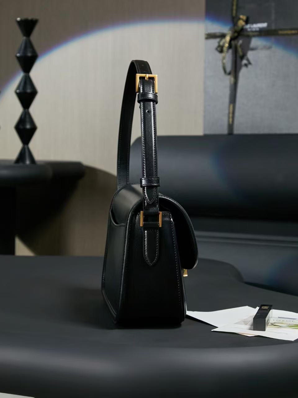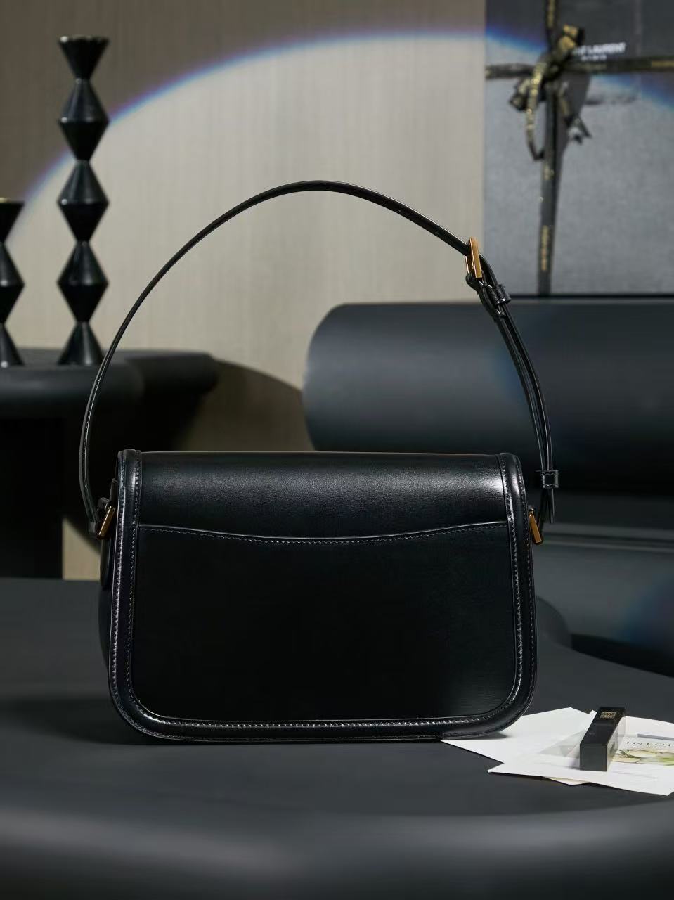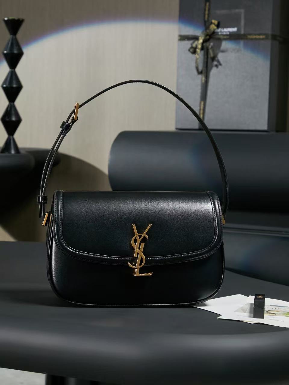 SAINT LAURENT YSL SOLFERINO letter LOgo lock opening and closing shoulder strap adjustable underarm bag, single shoulder bag, medium size, black