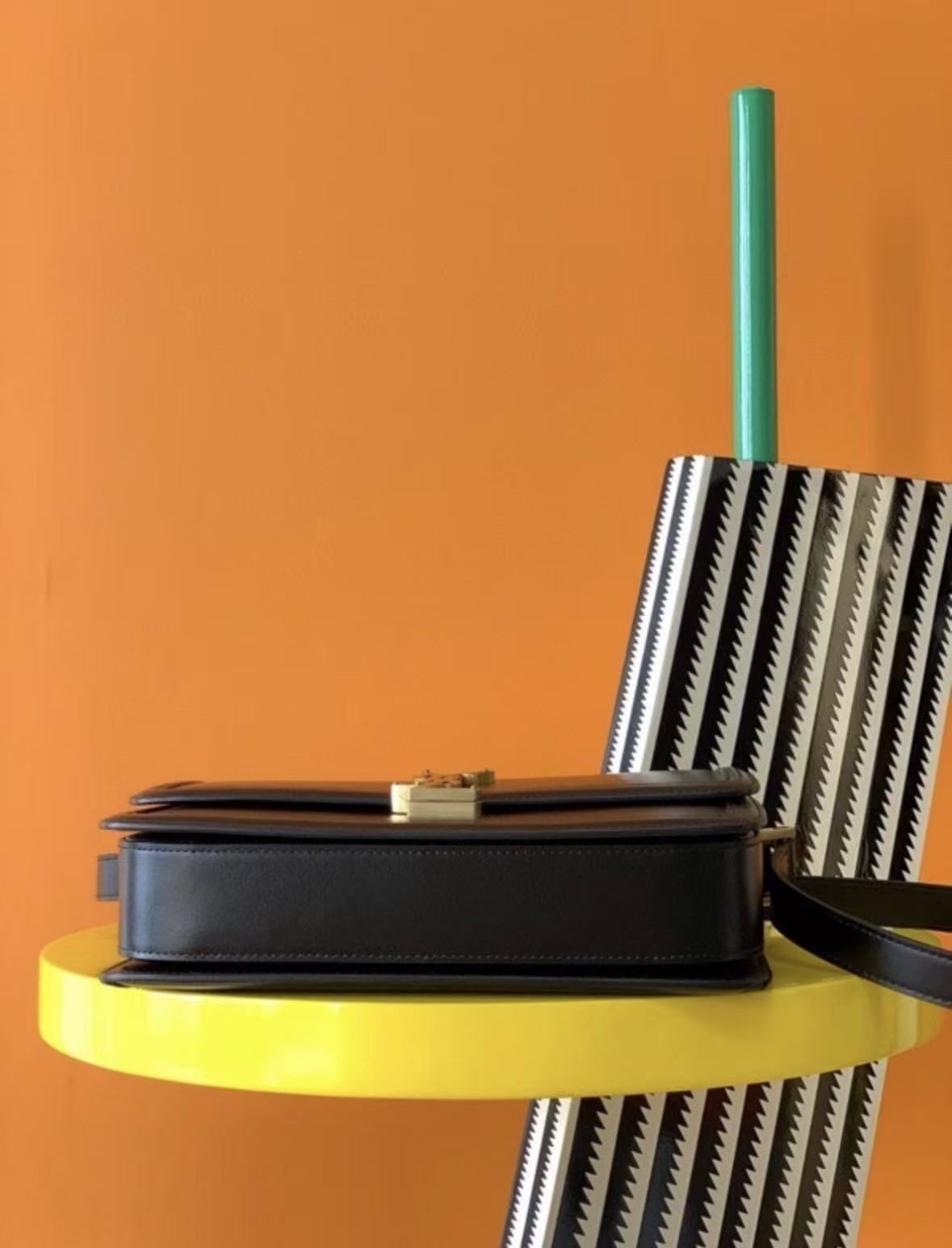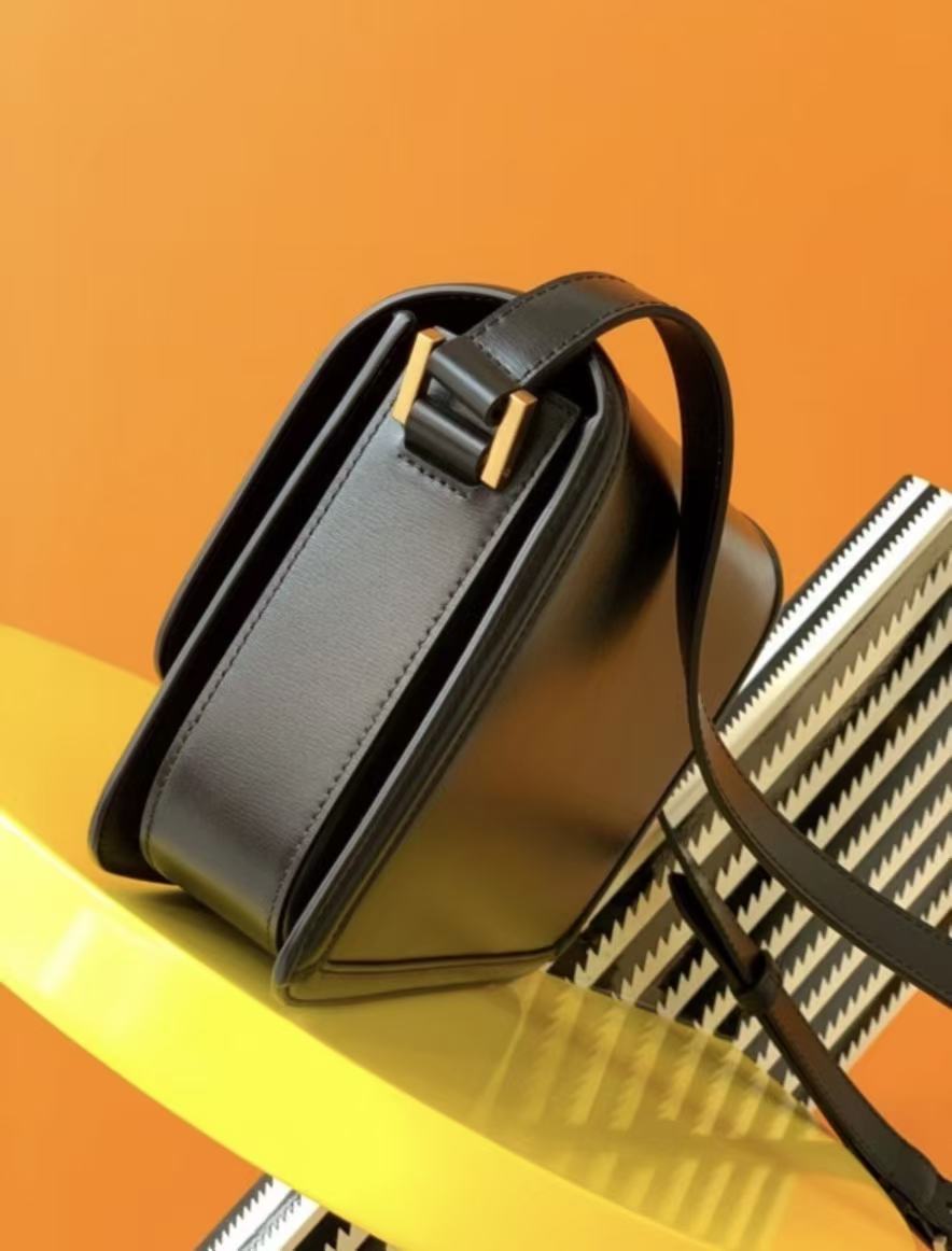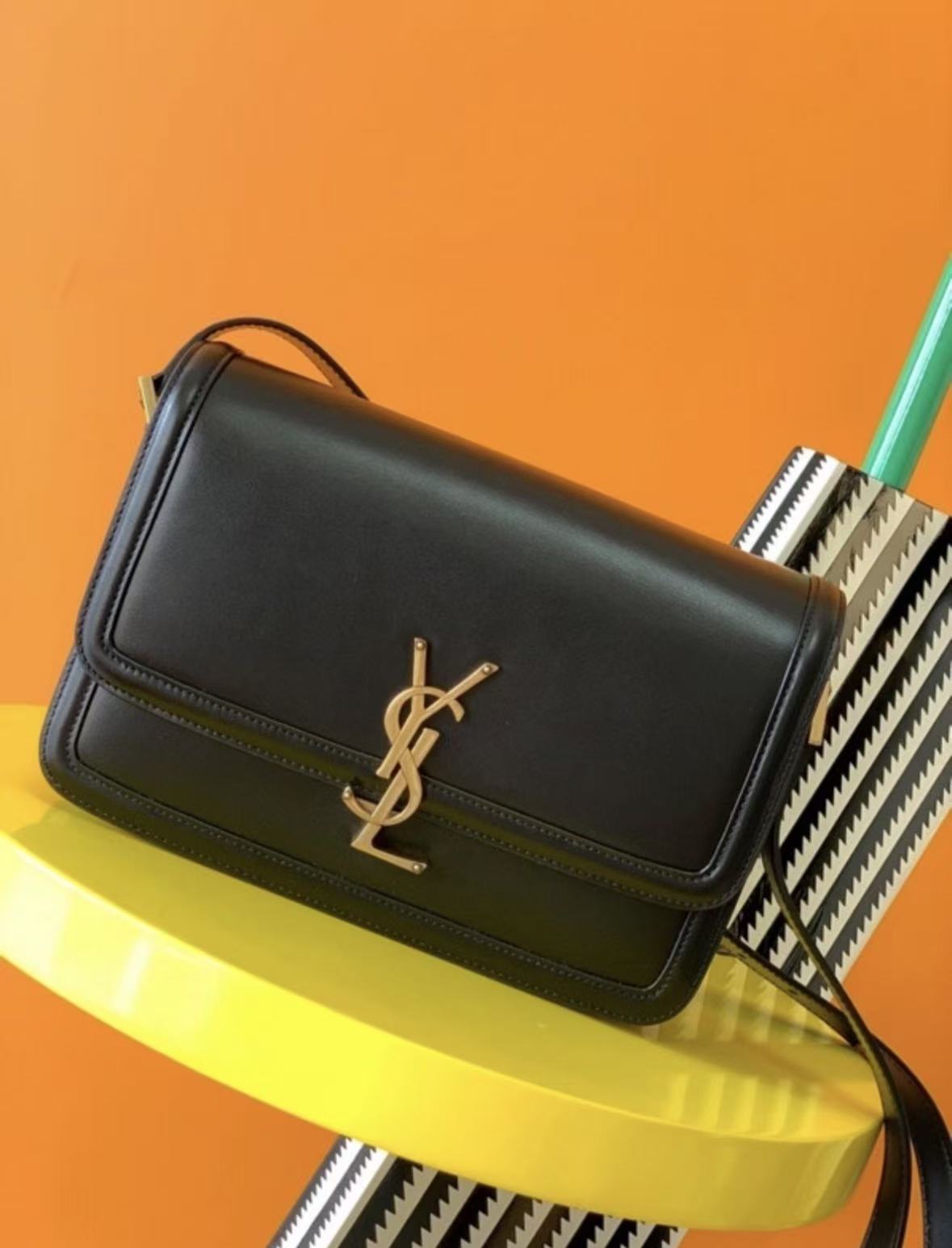 SAINT LAURENT YSL SOLFERINO Gold Logo single-shoulder crossbody bag, medium size for women, black