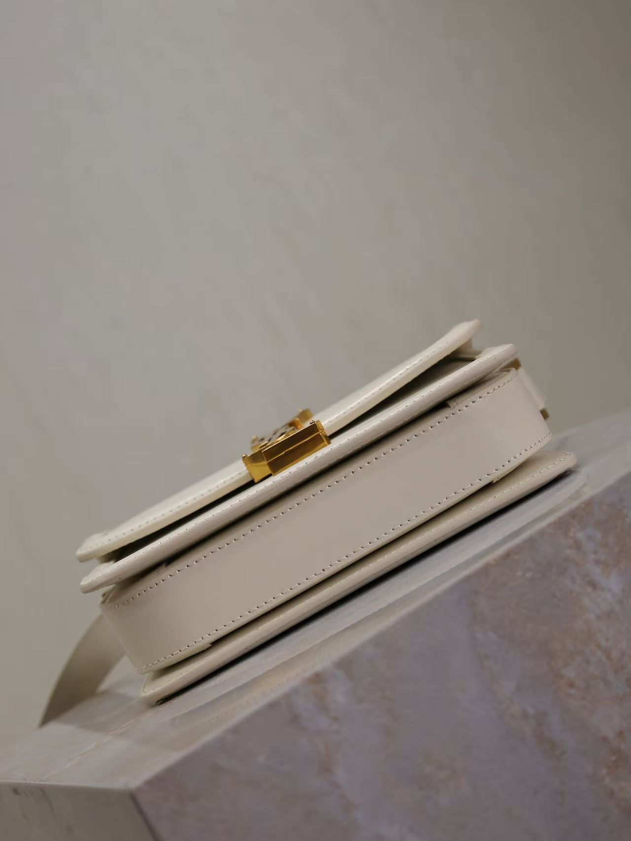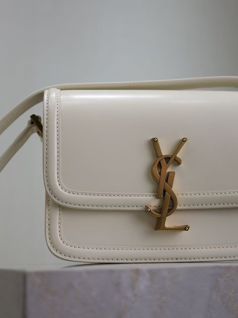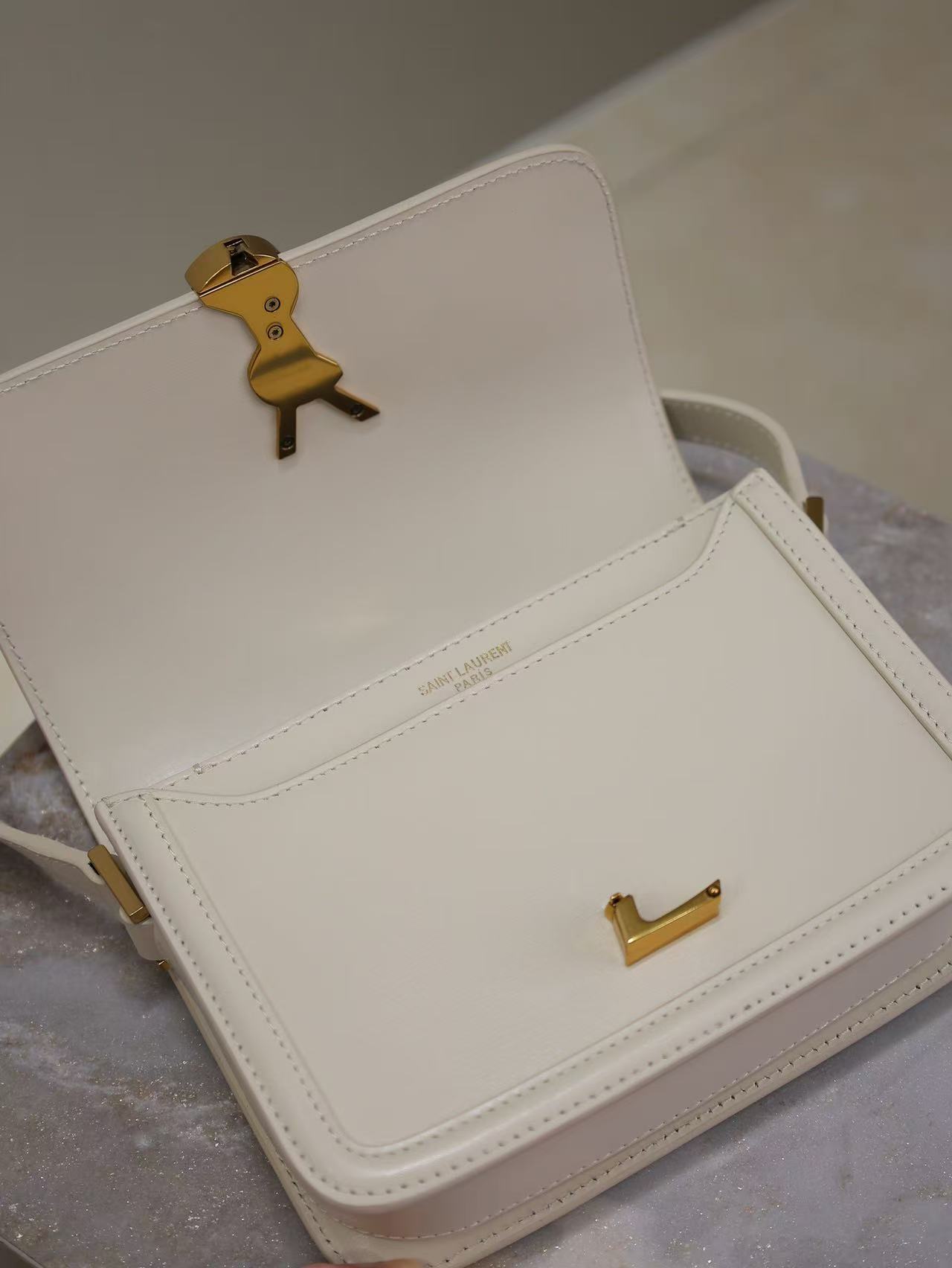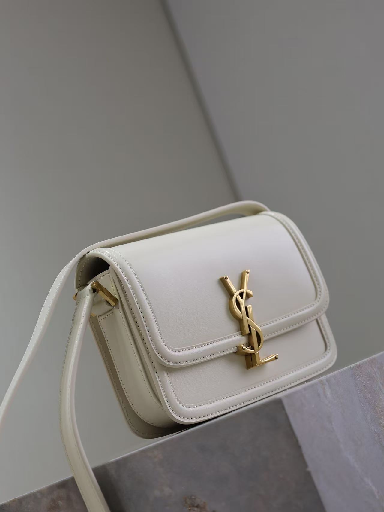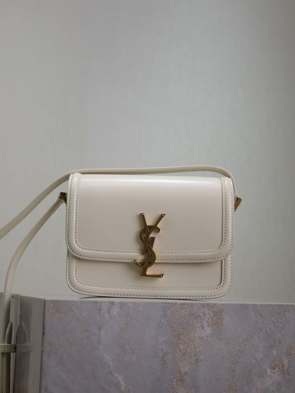 SAINT LAURENT YSL SOLFERINO Gold Logo Tofu Bag, single-shoulder bag, small size, white for women
