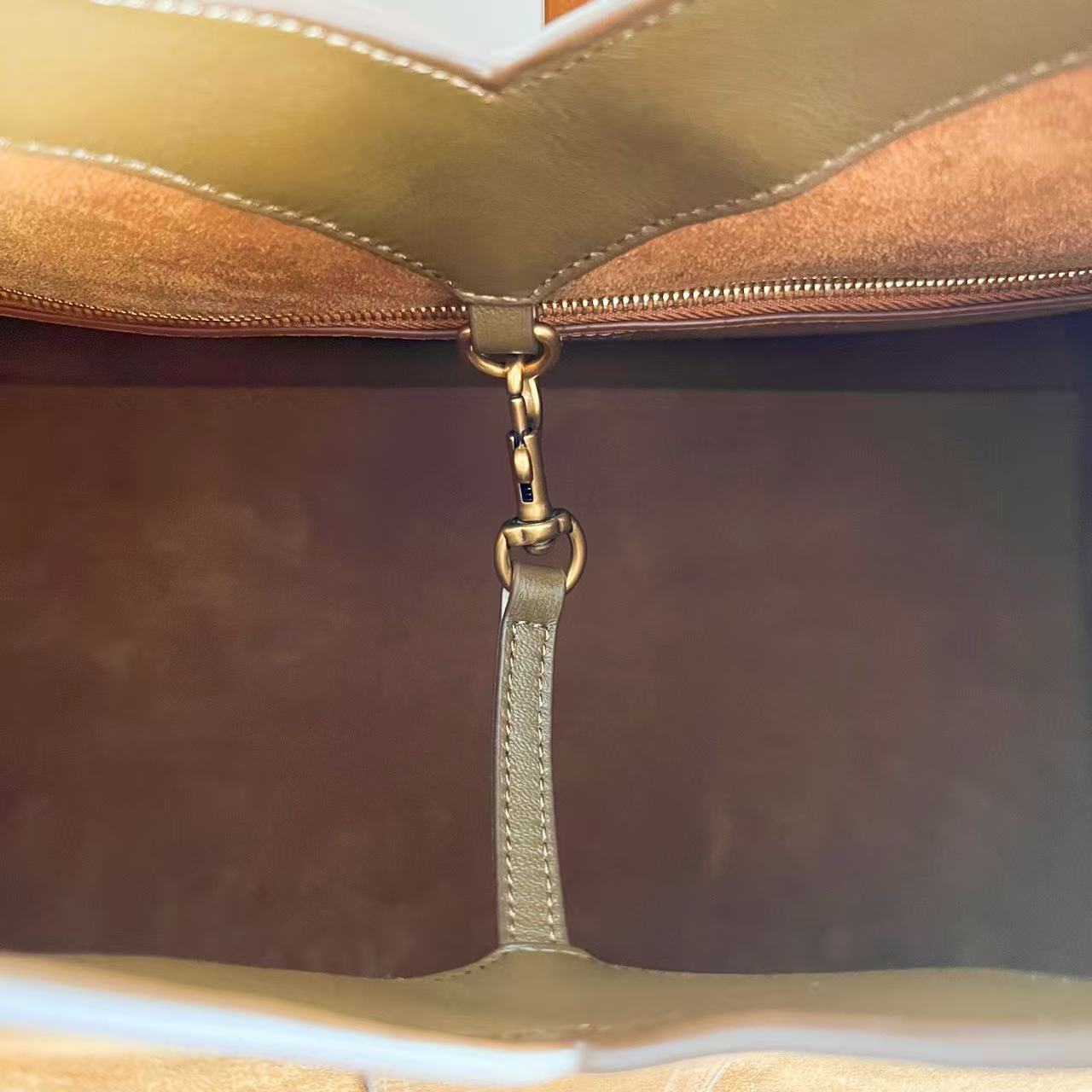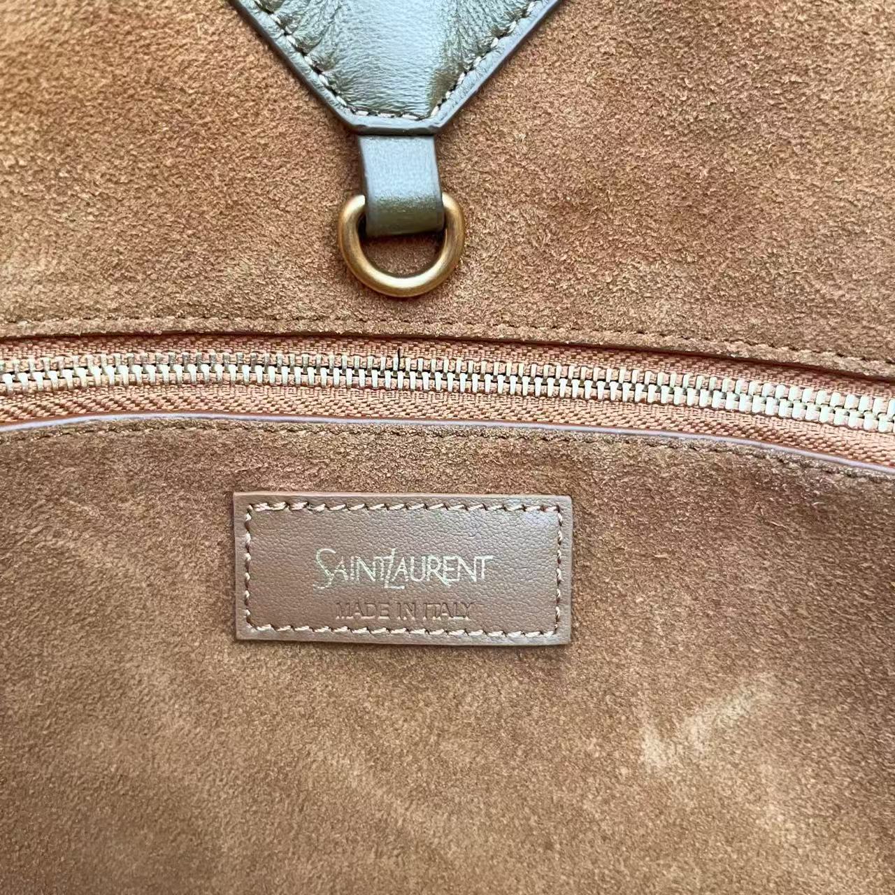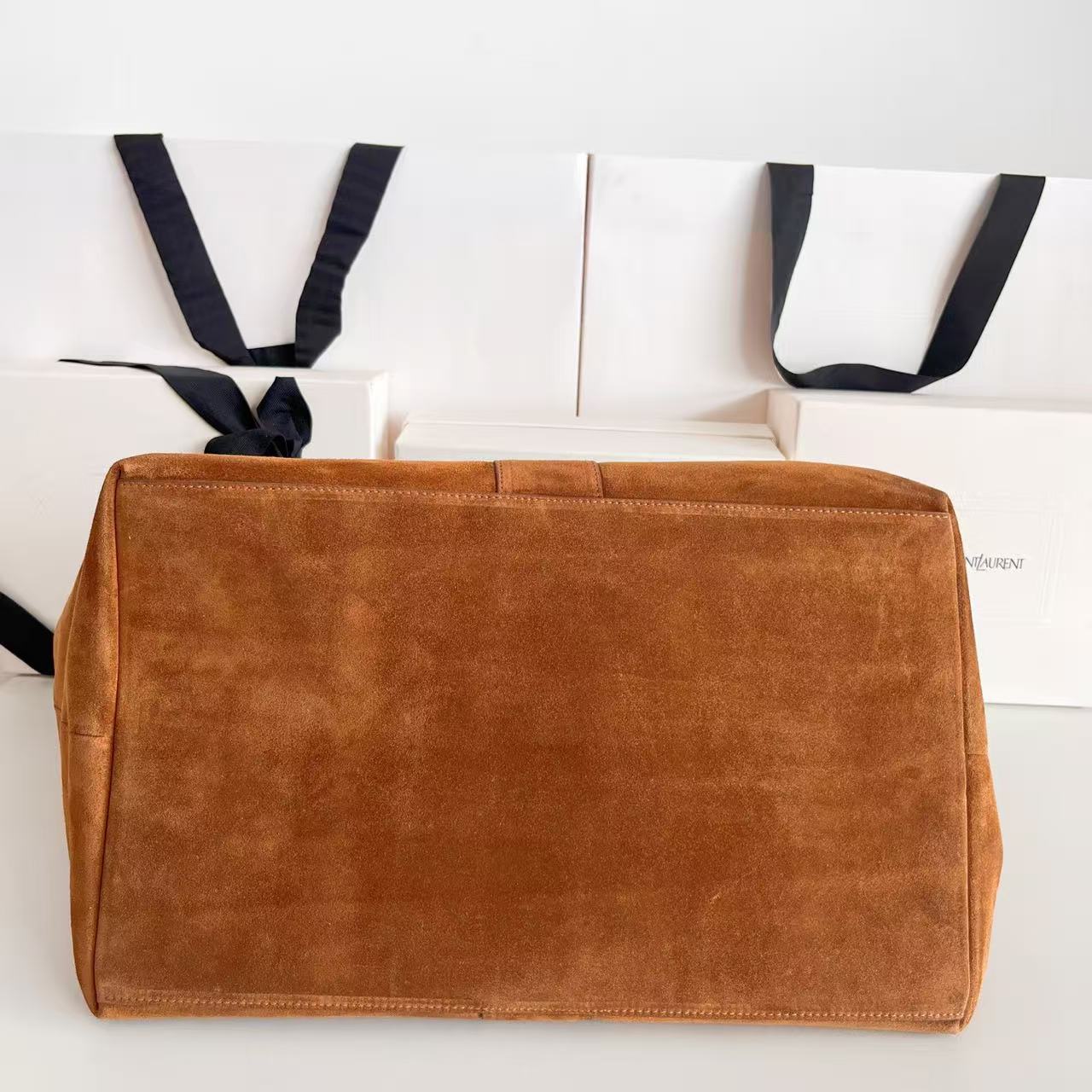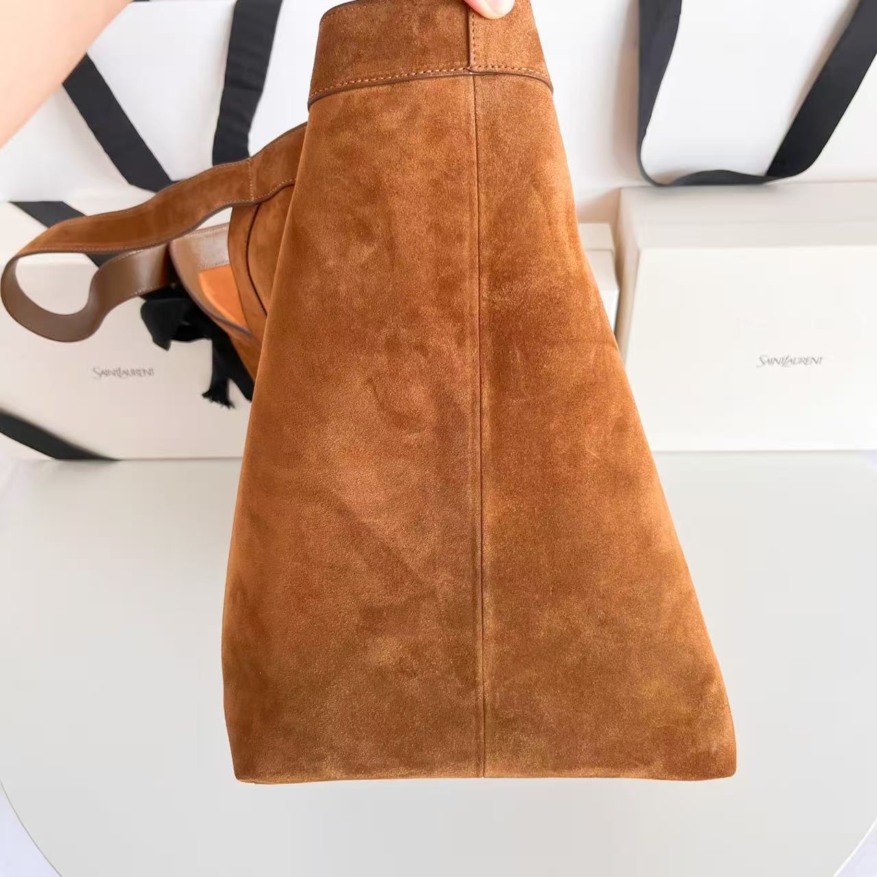 SAINT LAURENT solid color suede, Y logo stitching, bronze trim, Tote bag, shopping bag, handbag, large size for women, deep caramel cognac color
