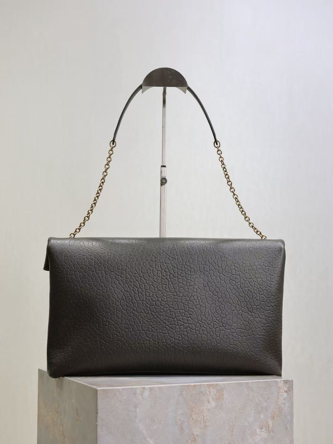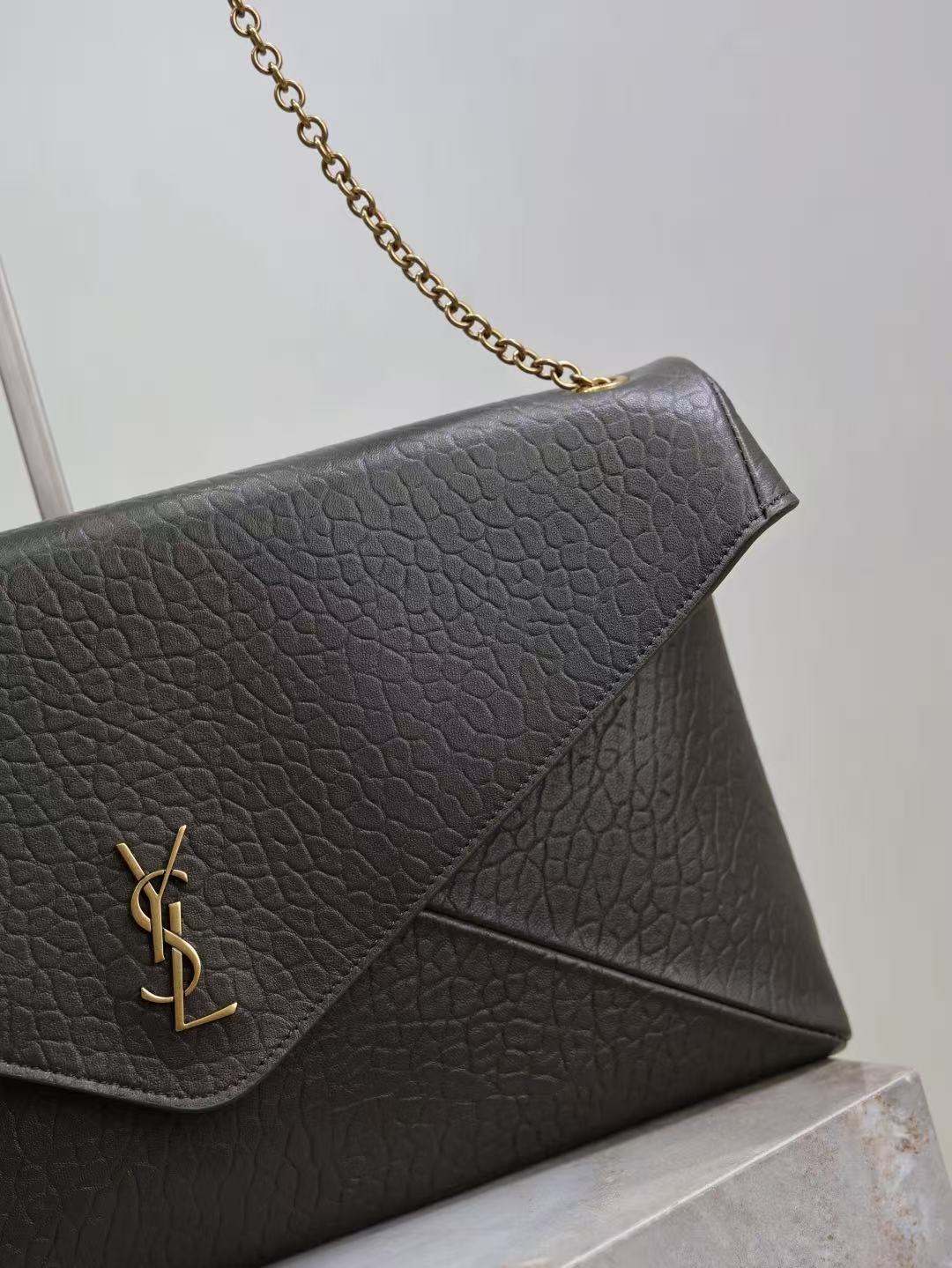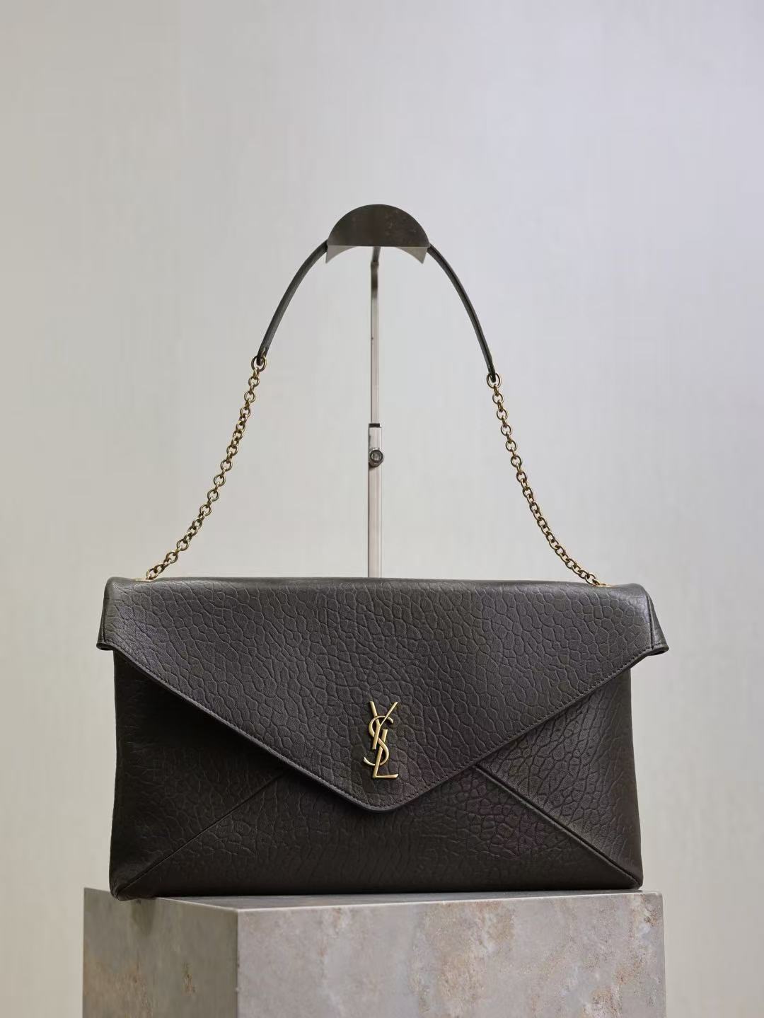 SAINT LAURENT YSL ENVELOPE, a gold metal accessory patchwork design envelope bag, crossbody single-shoulder bag, large size for women, black