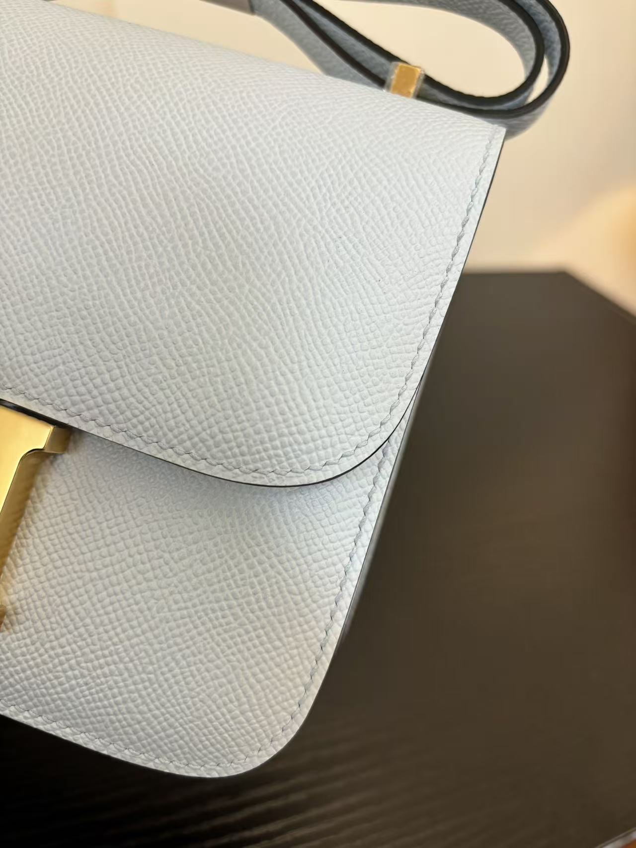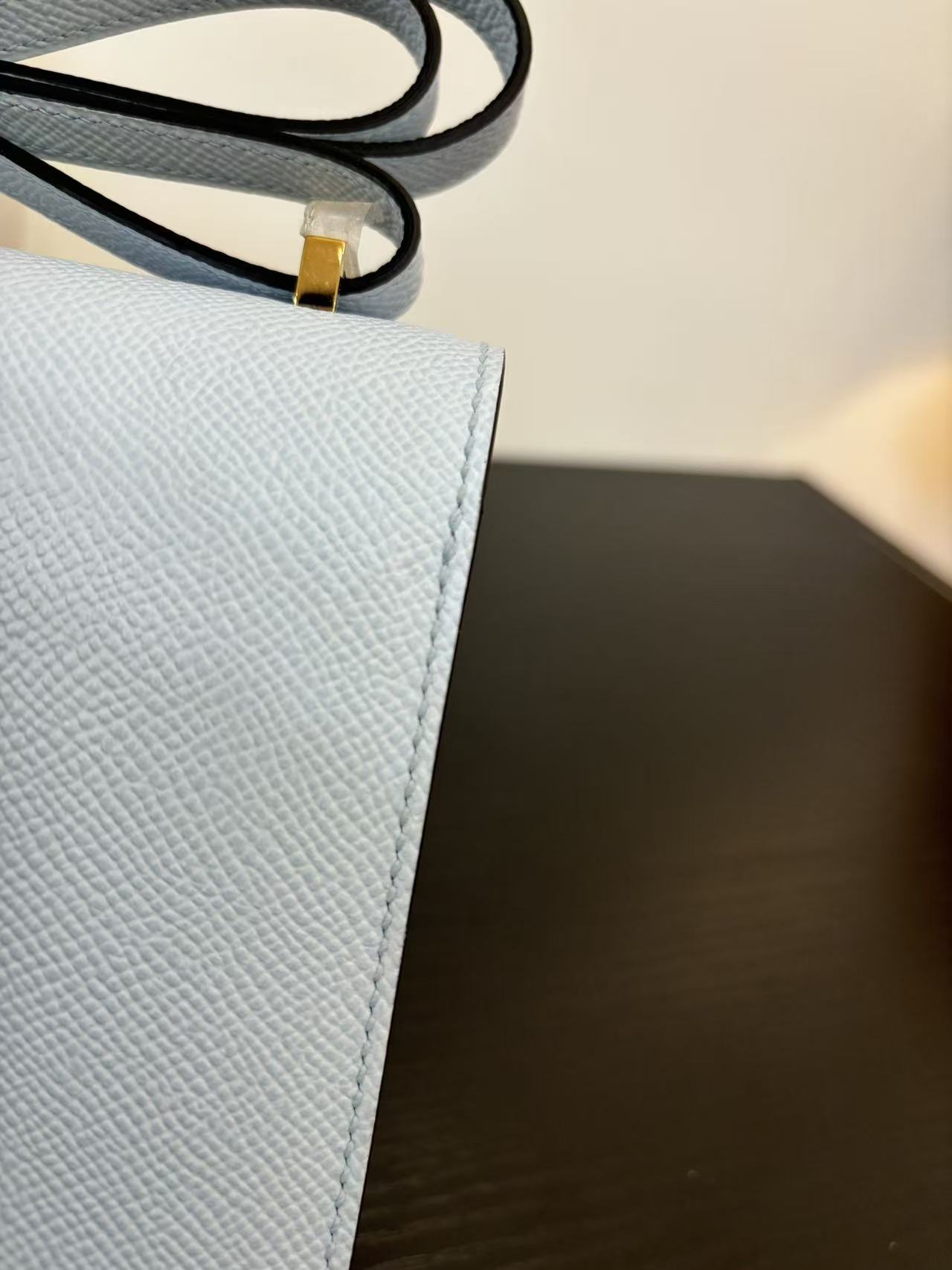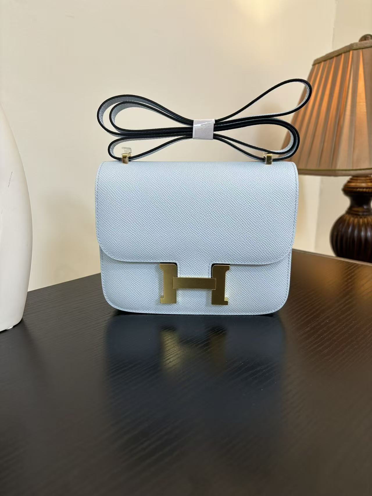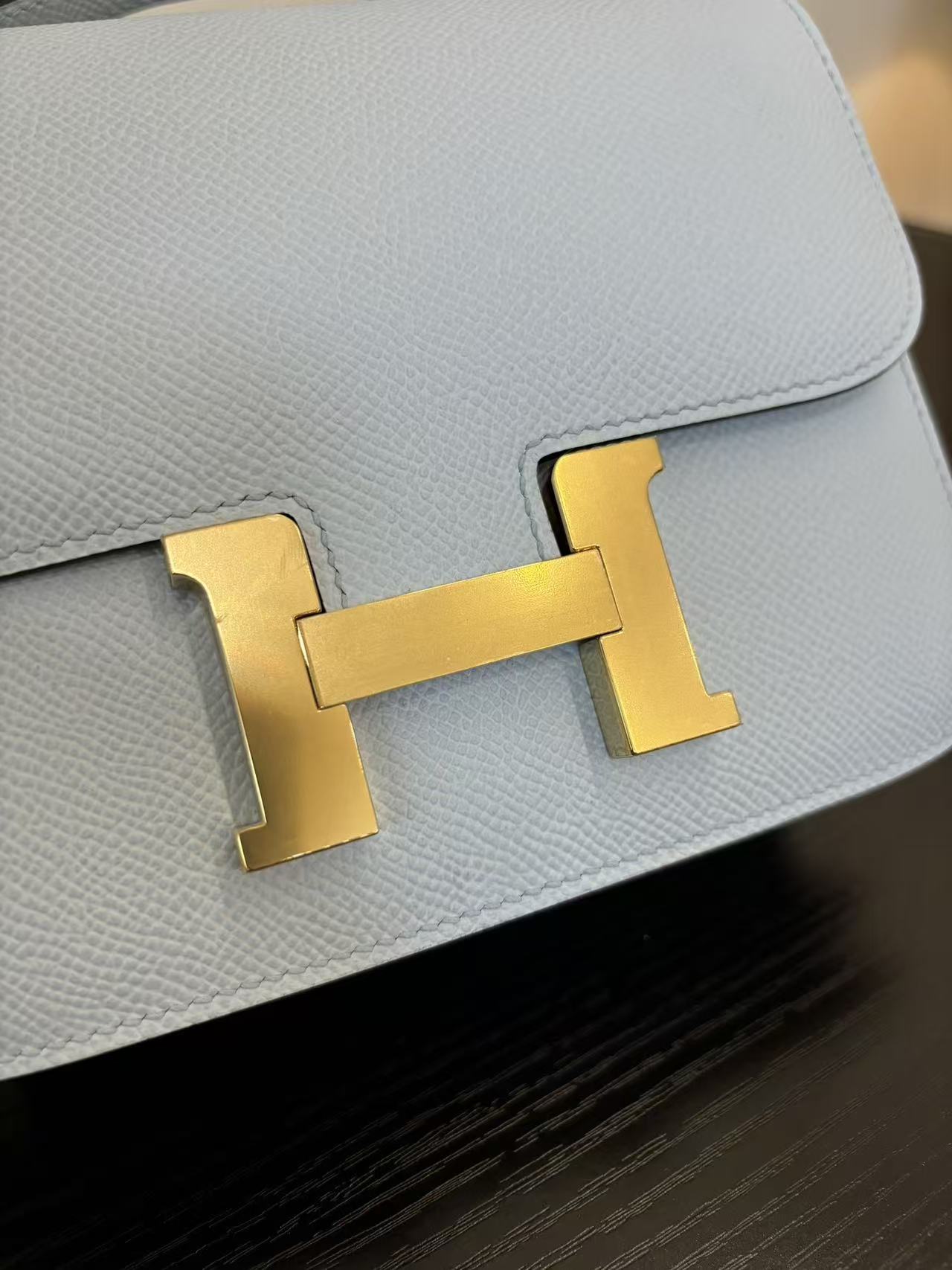 HERMES Constance 19 silver buckle crossbody single-shoulder bag in Haze blue