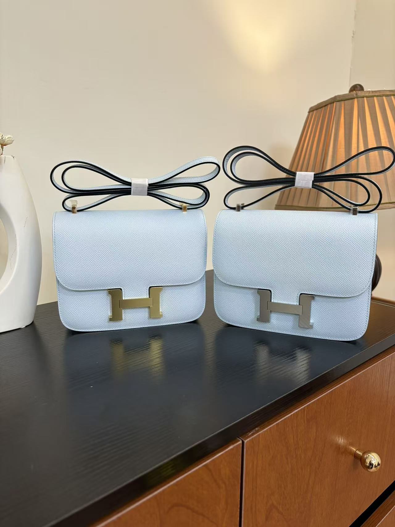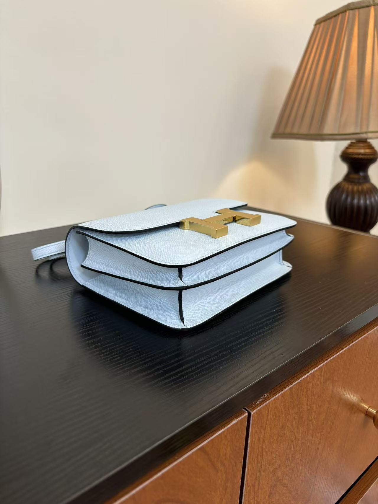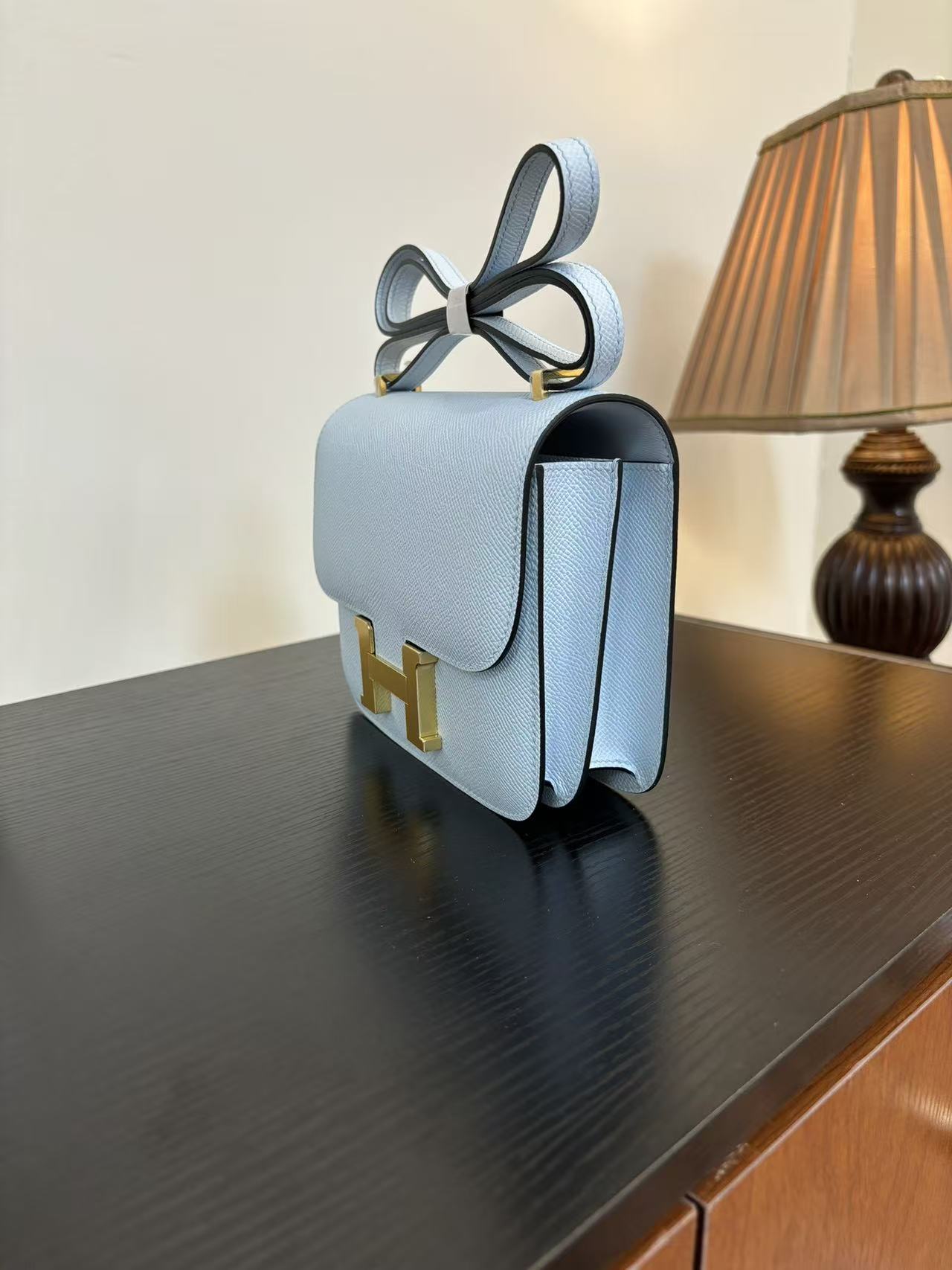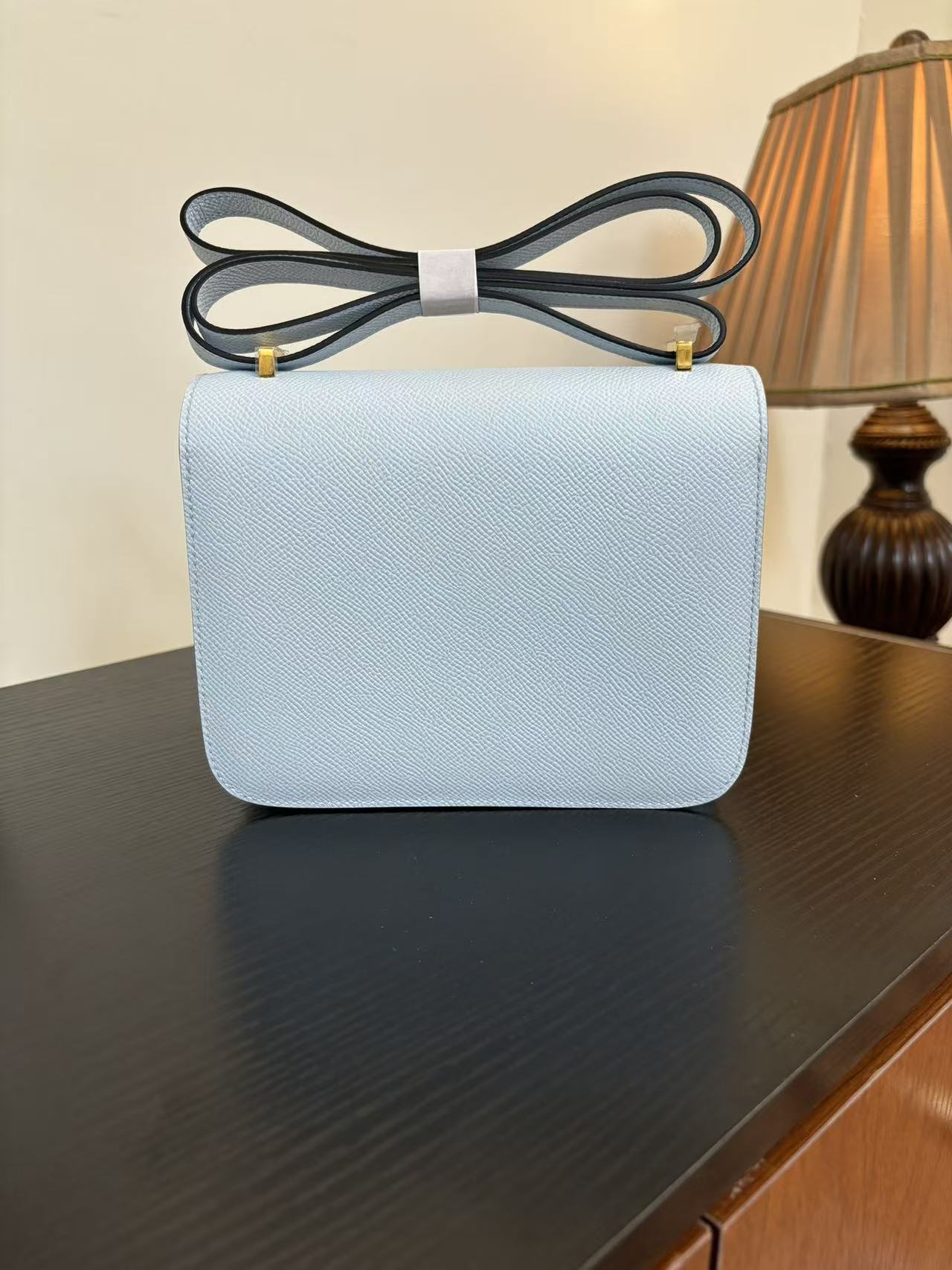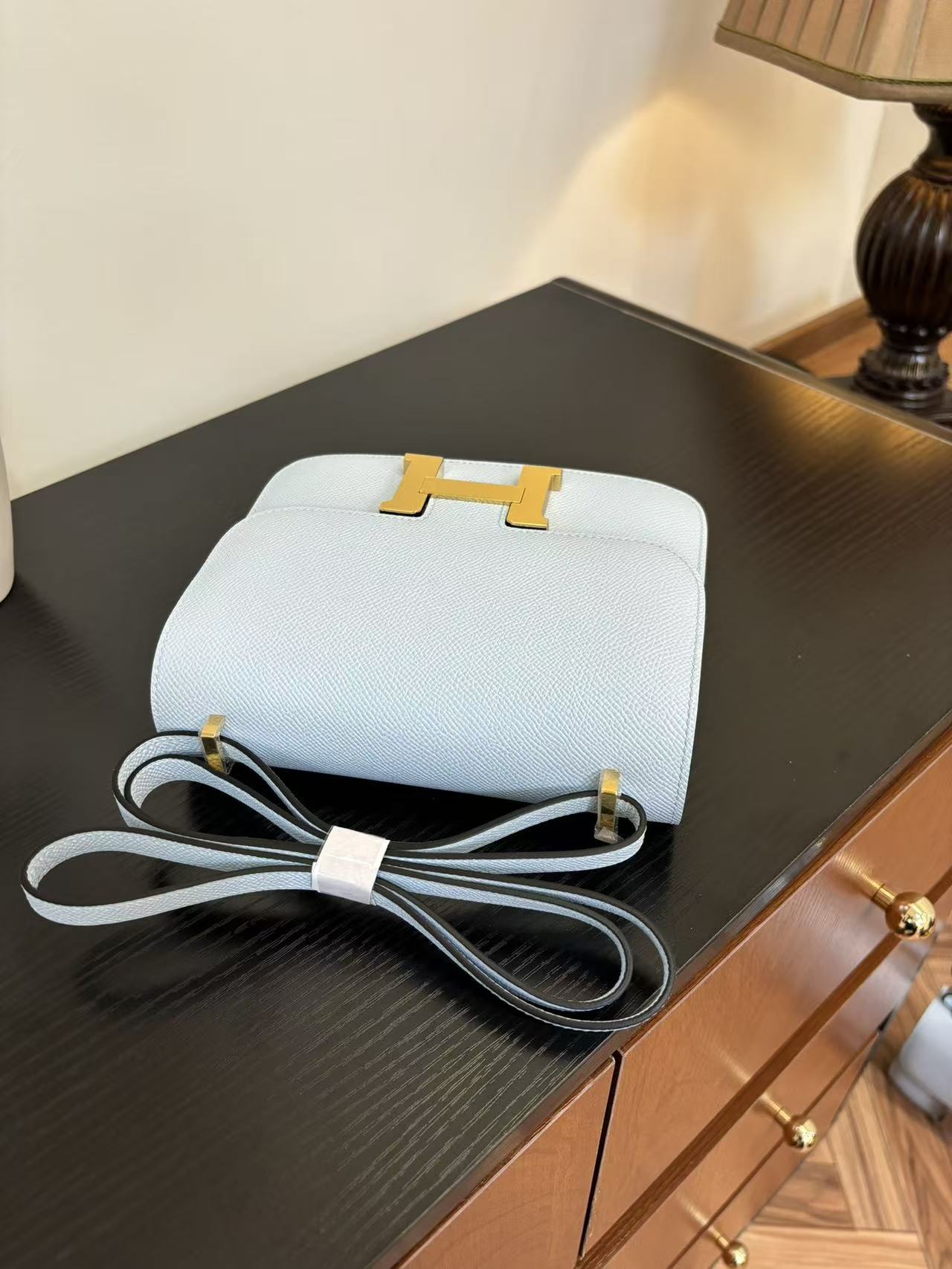 HERMES Constance 19 silver buckle crossbody single-shoulder bag in Haze blue