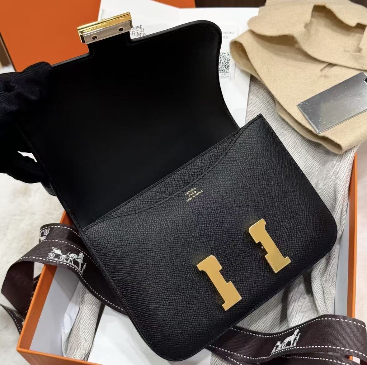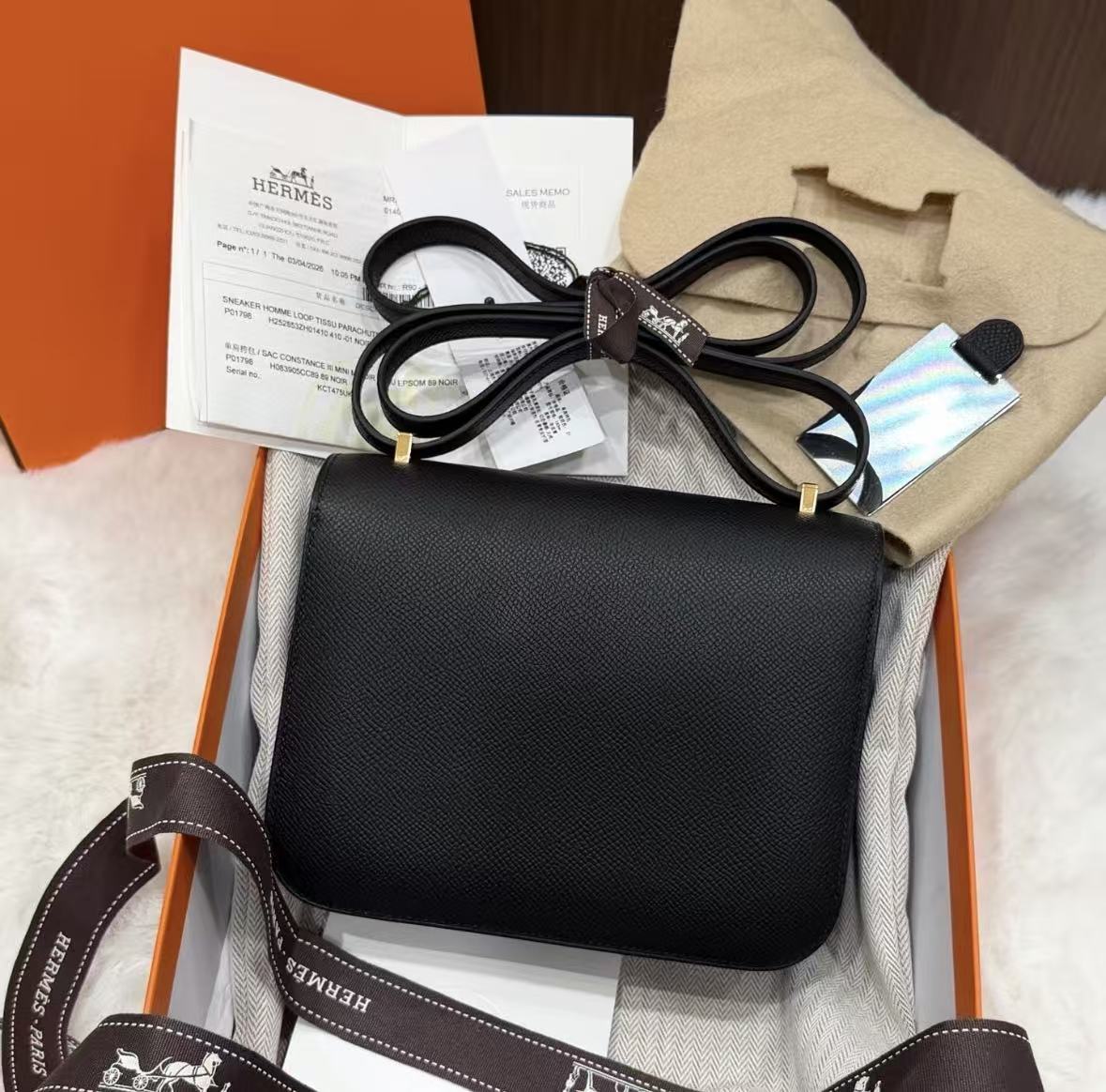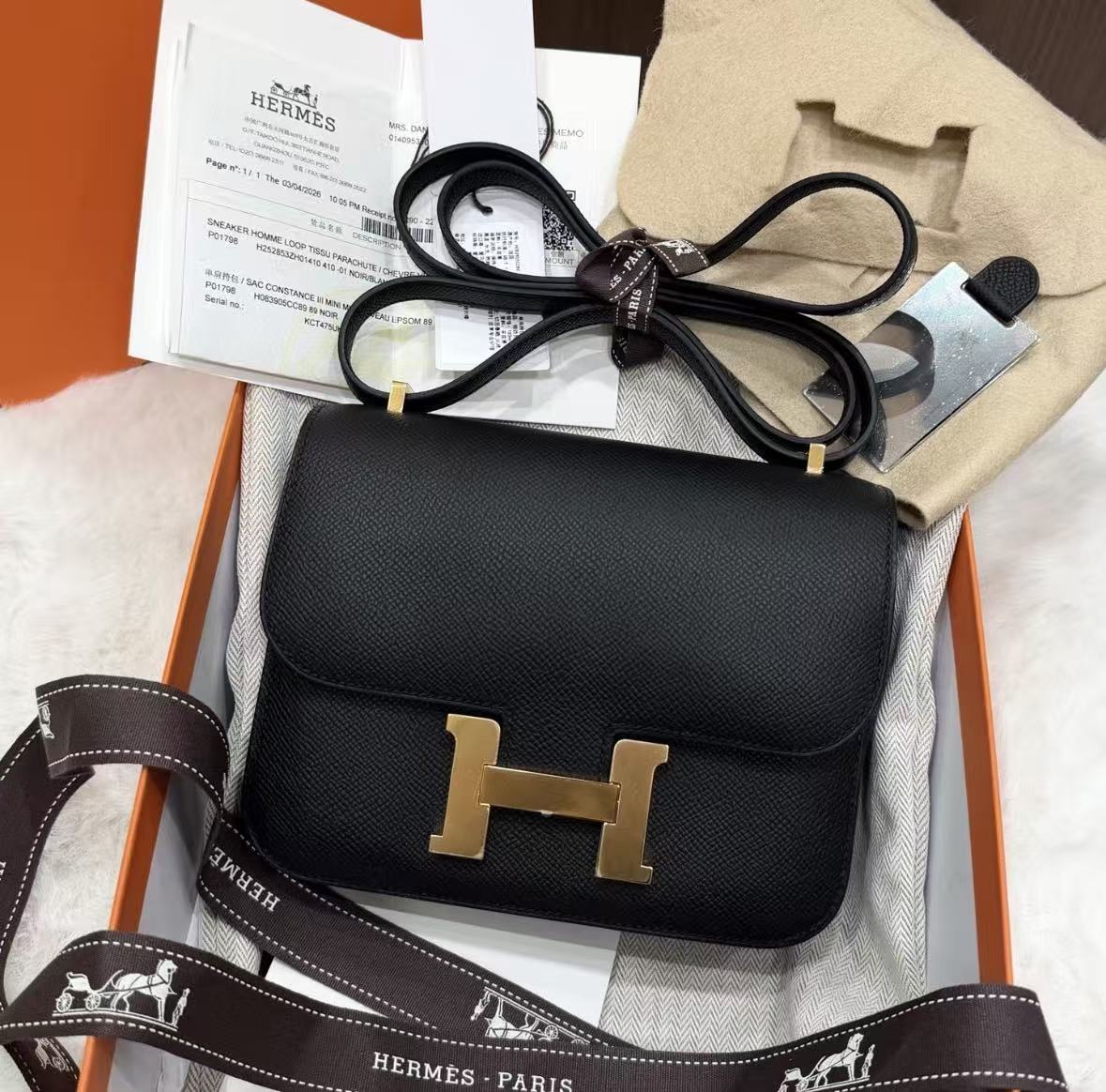 HERMES Constance Mini 19 Gold Buckle Women\'s Edition 89 Noir Black