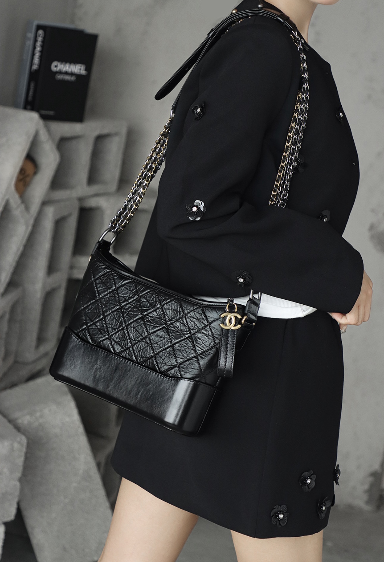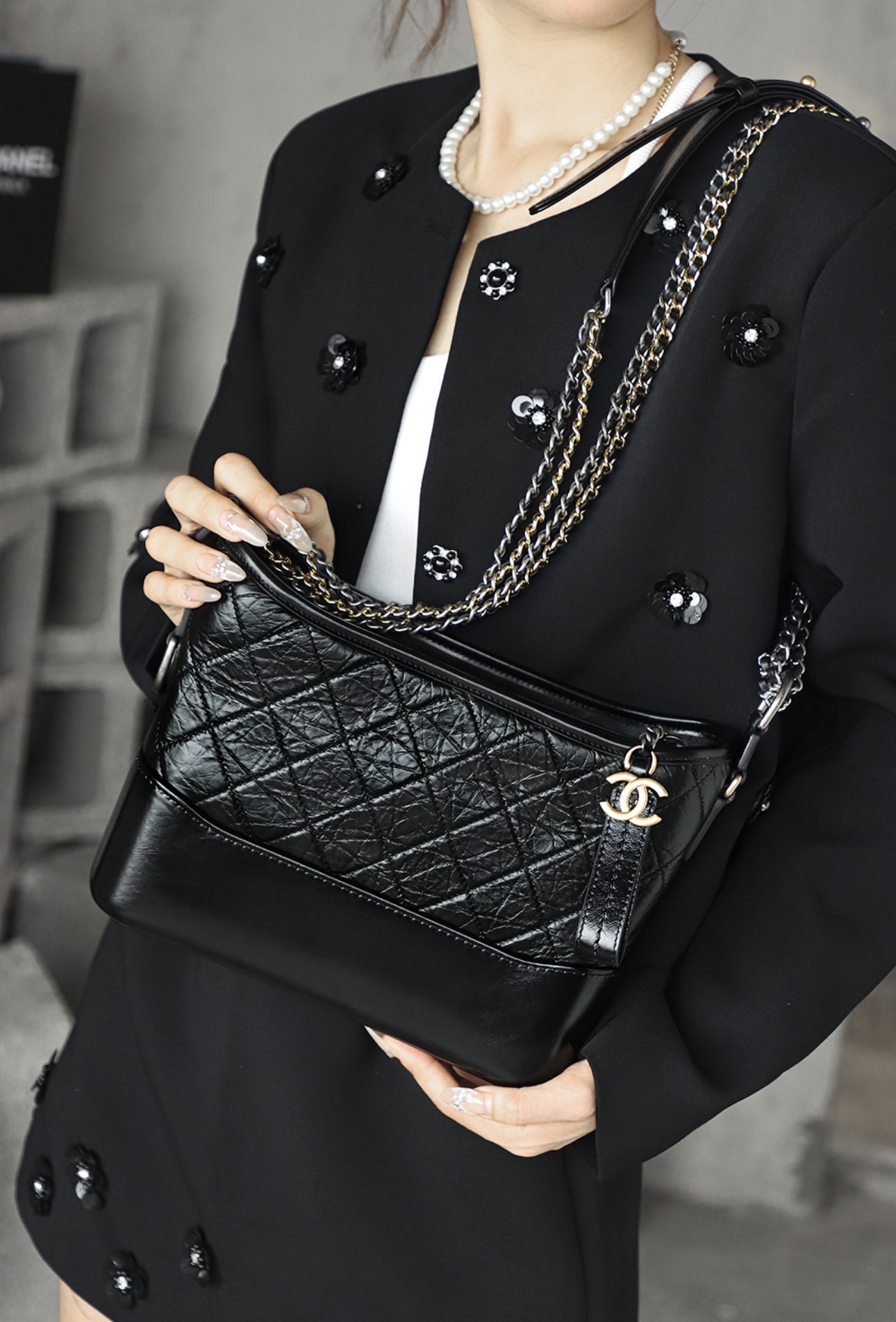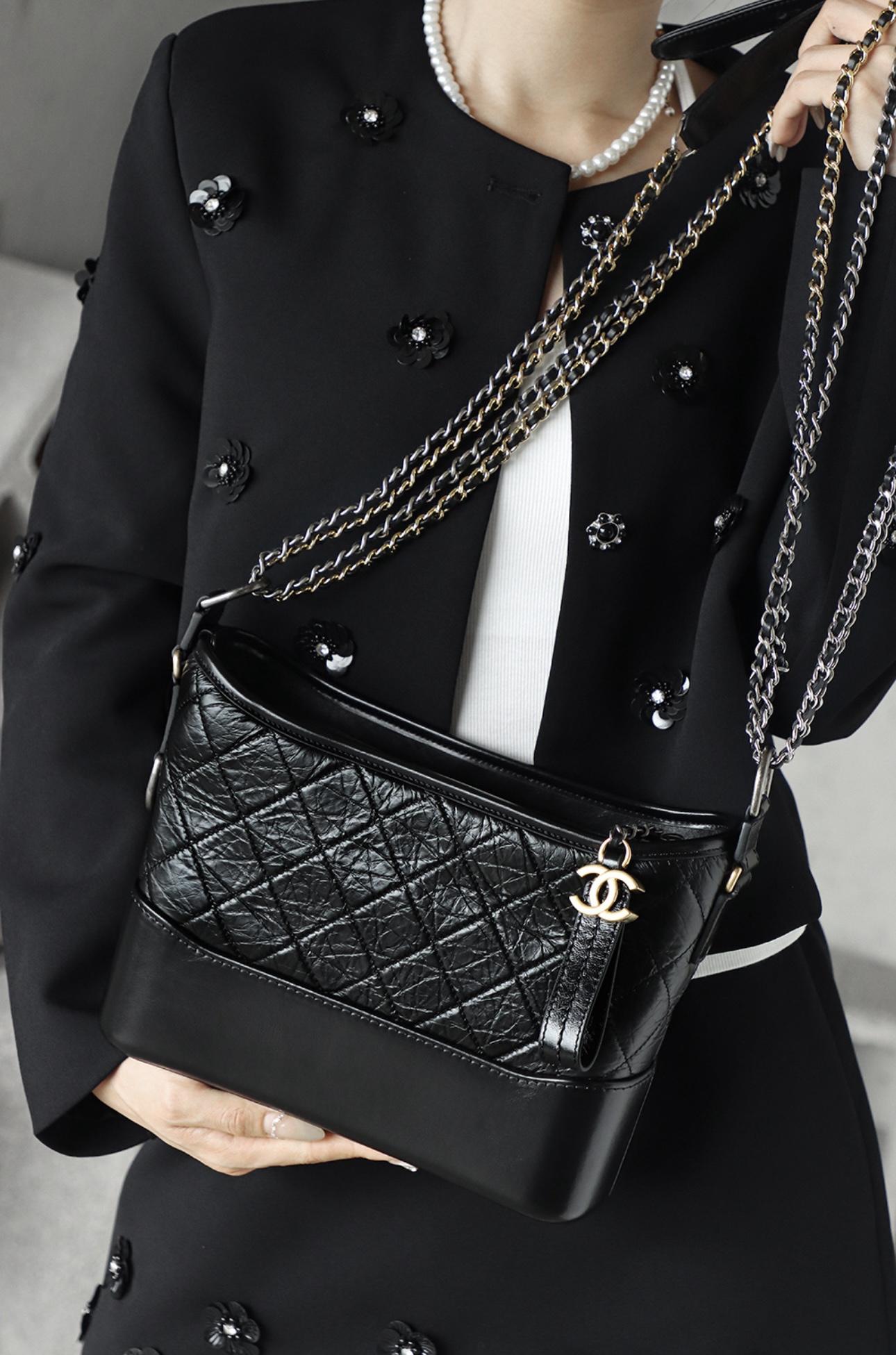 CHANEL Gabrielle 20P vintage quilted leather chain single-shoulder crossbody bag, medium size black