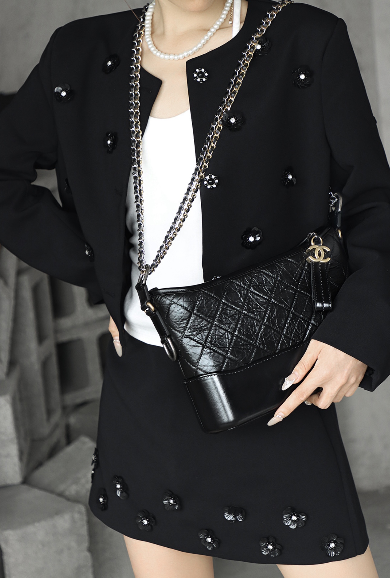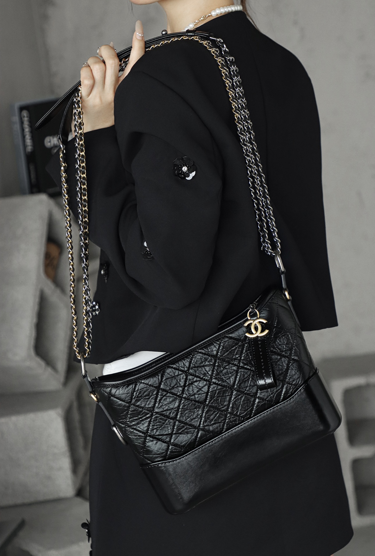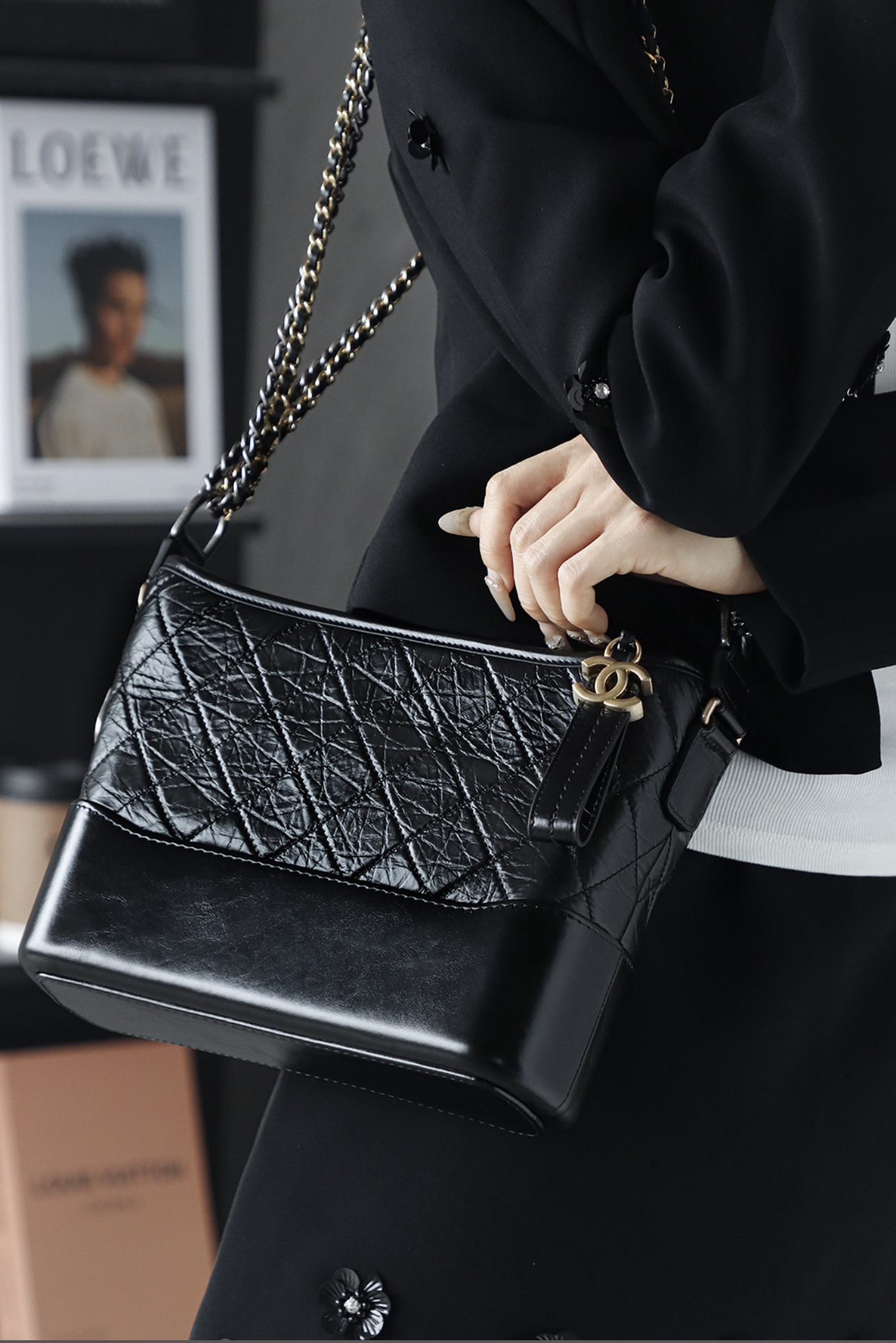 CHANEL Gabrielle 20P vintage quilted leather chain single-shoulder crossbody bag, medium size black