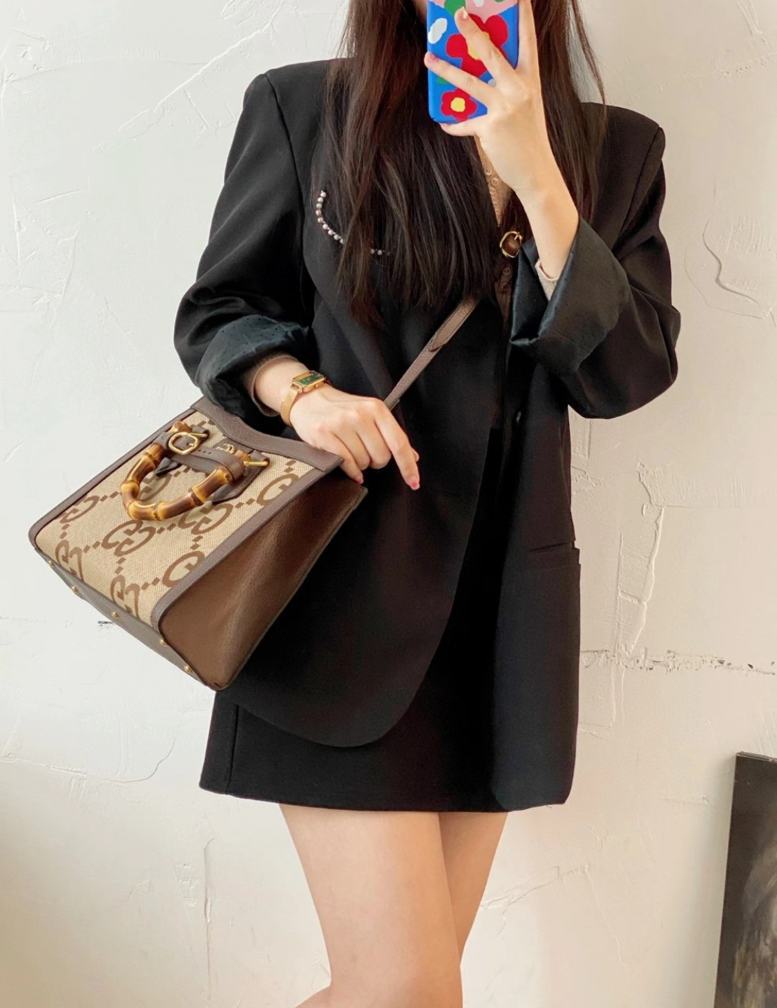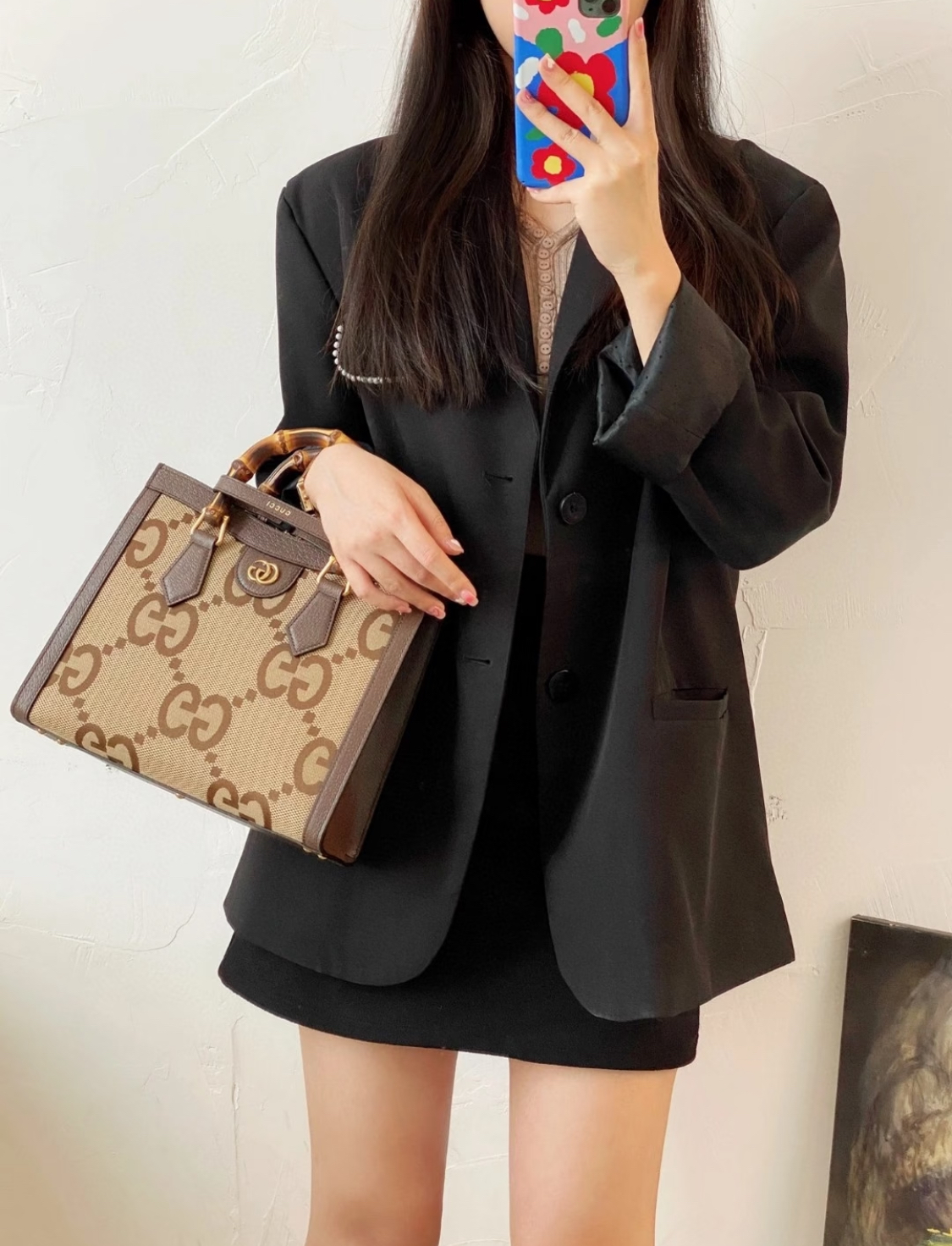 GUCCI Diana shopping bag, single-shoulder crossbody handbag, small size, unisex couple style, brown and beige