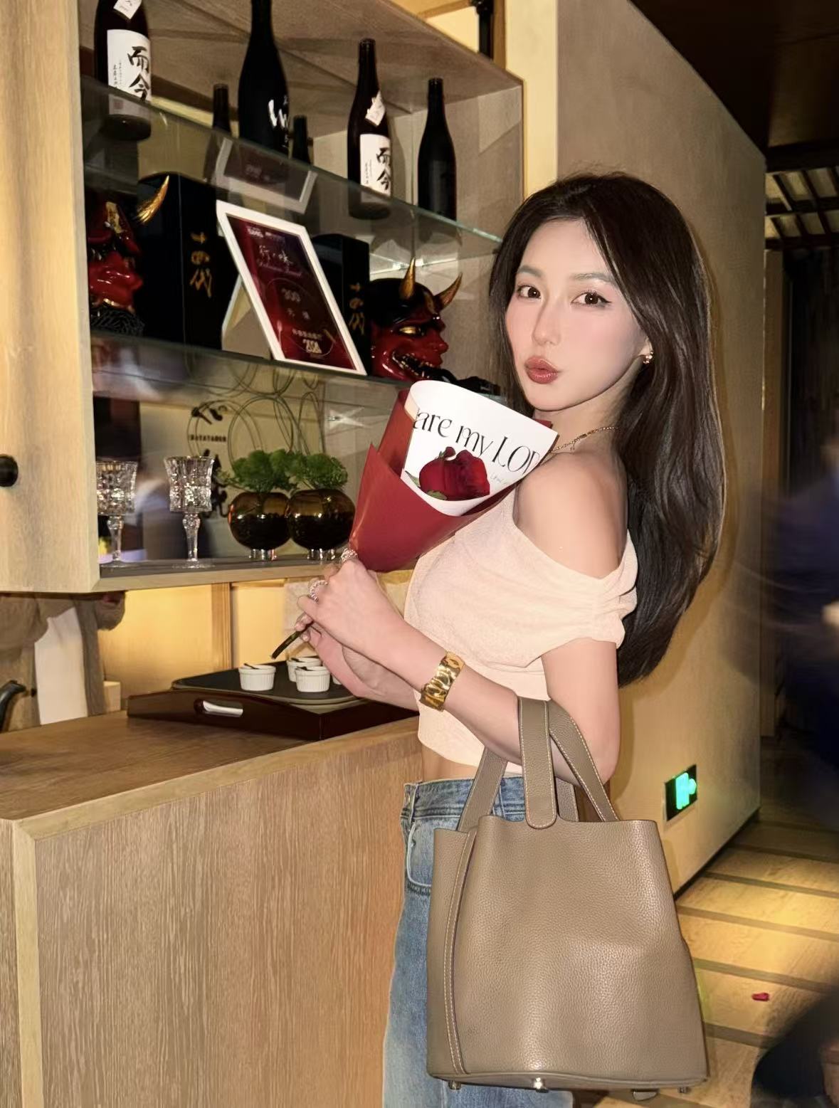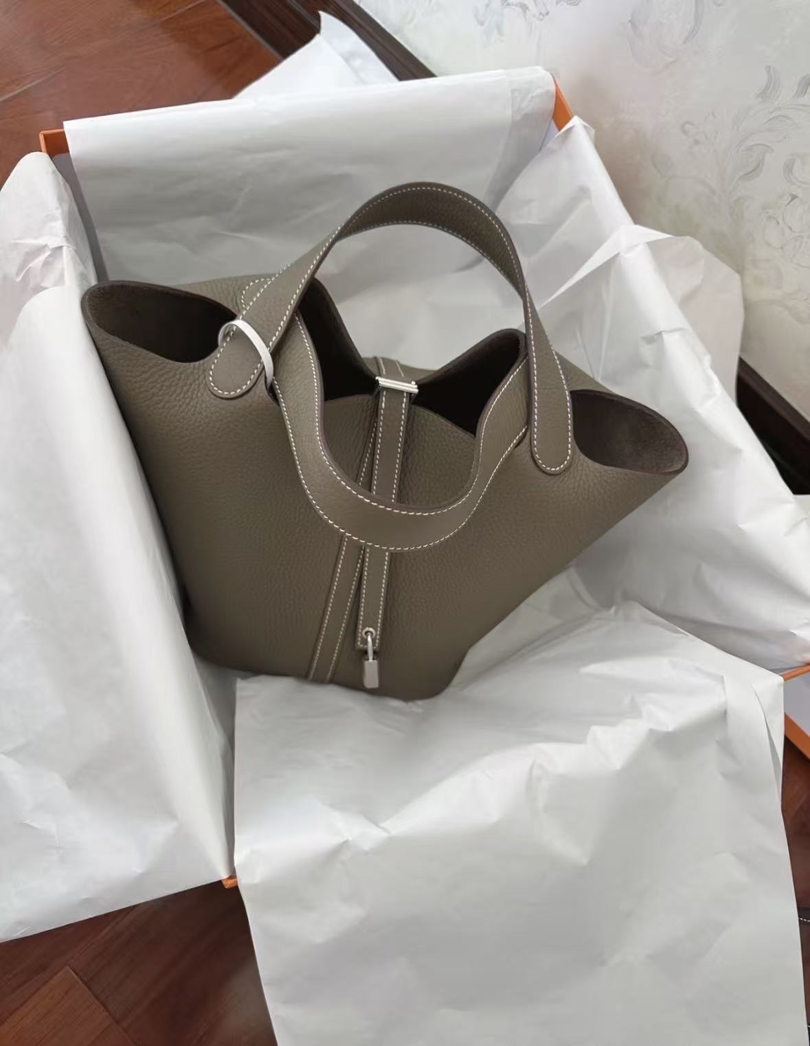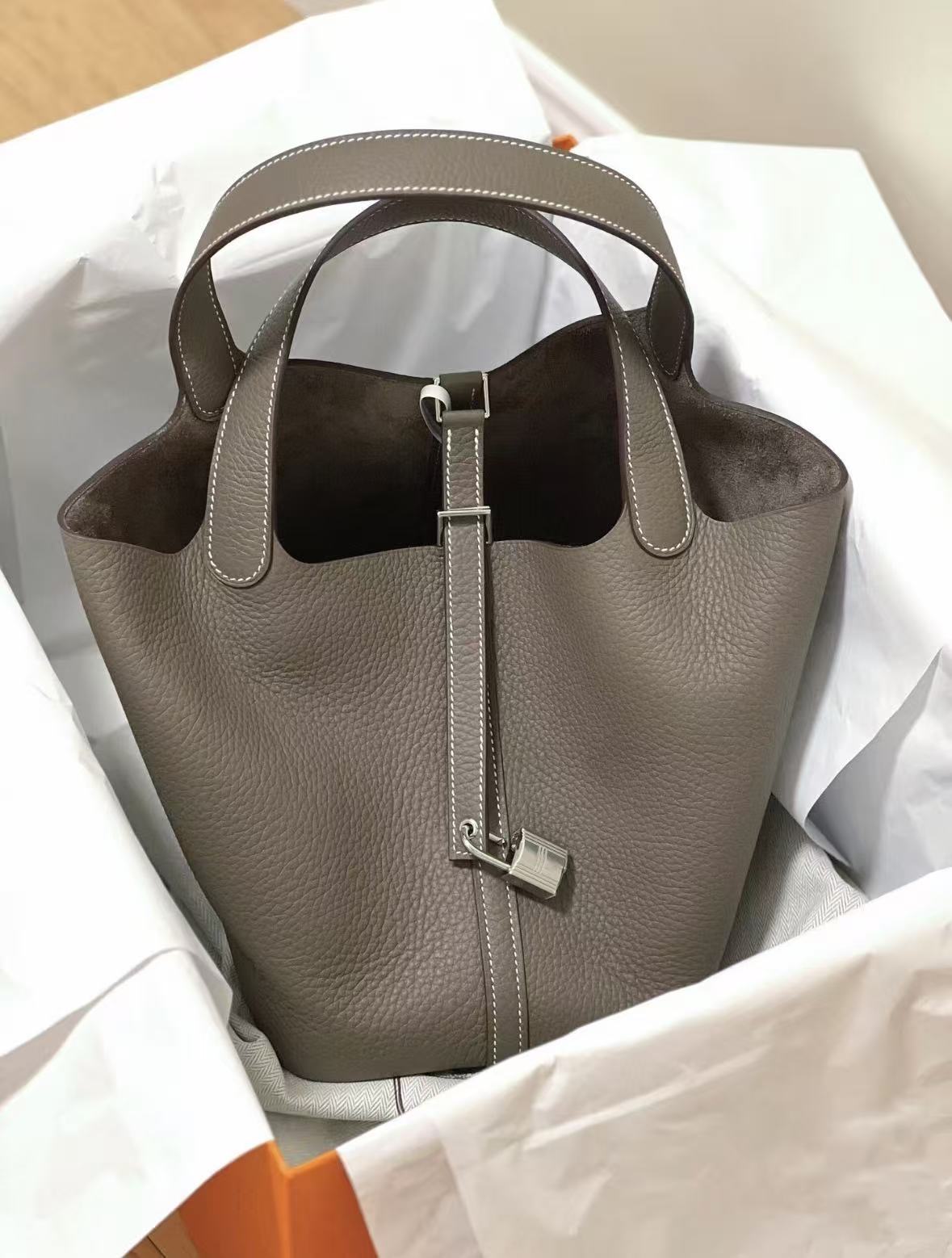 HERMES Picotin Lock 22 silver buckle basket bucket bag handbag for women, 18 Etoupe Elephant grey