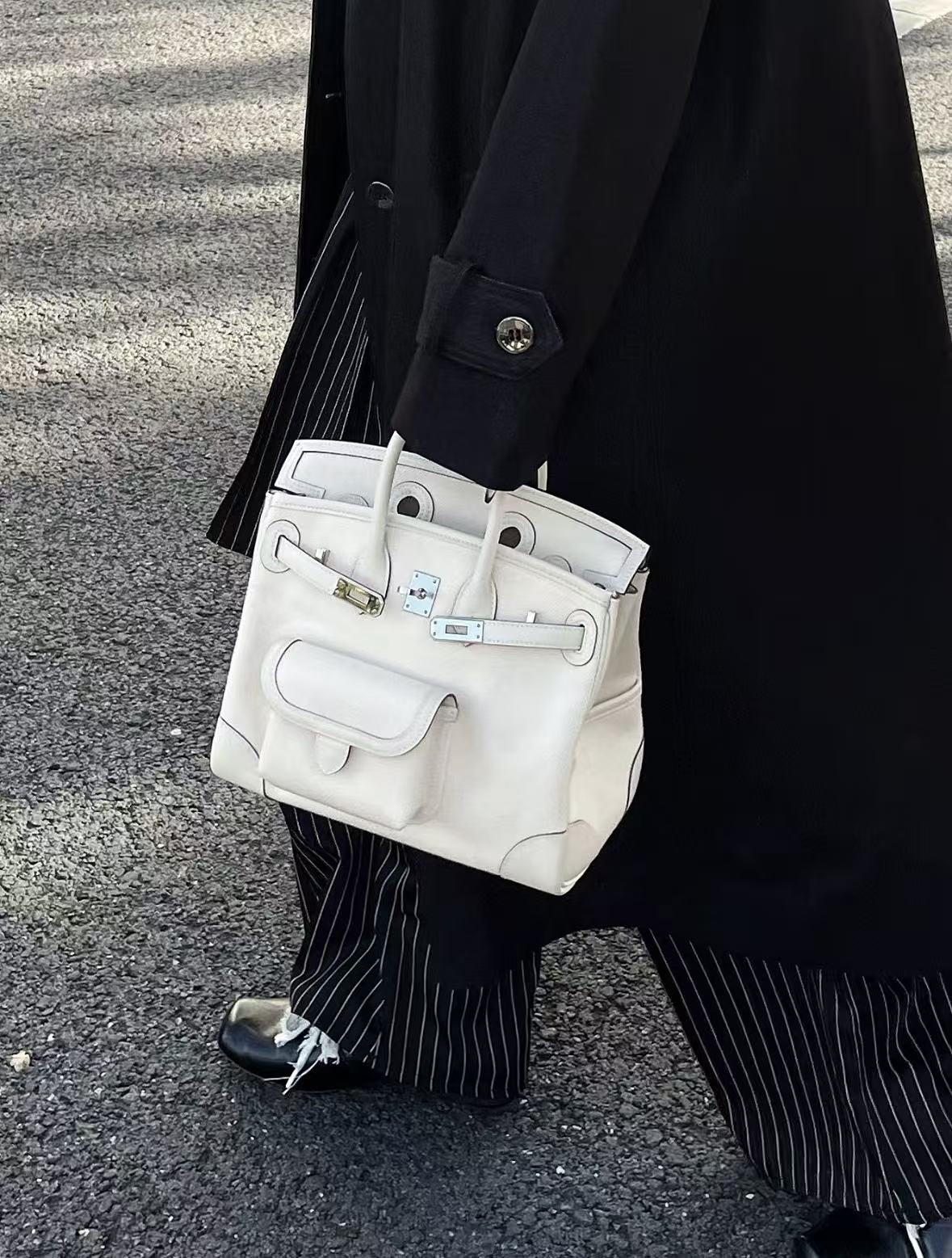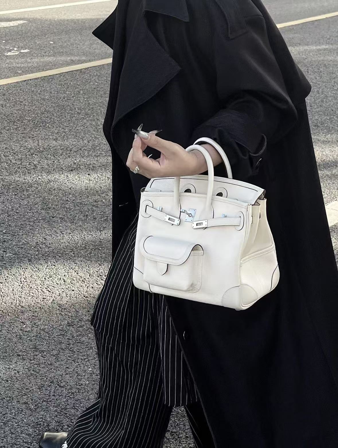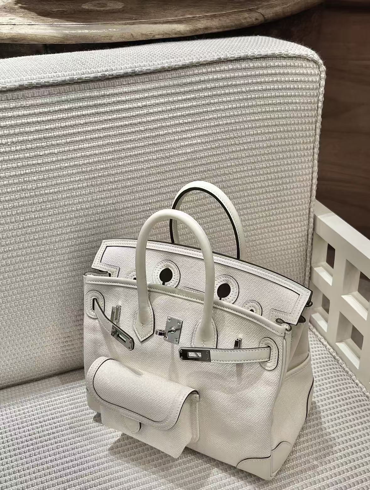 HERMES Birkin 25 Silver clasp platinum handbag 25 Women\'s I2 Nata Cream White