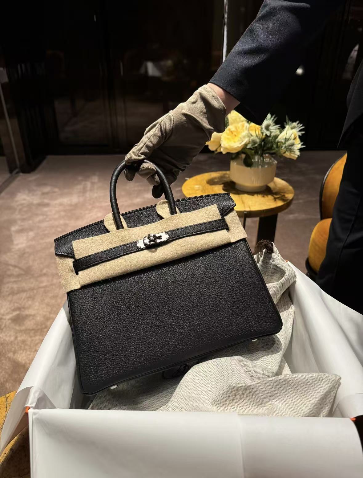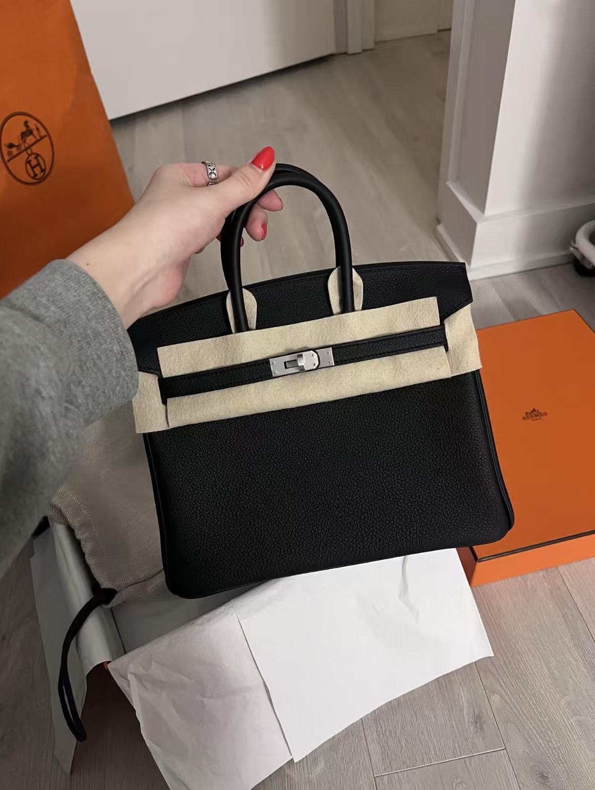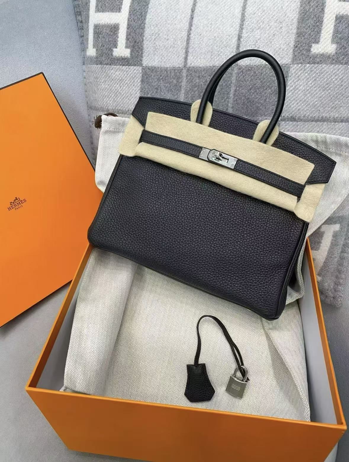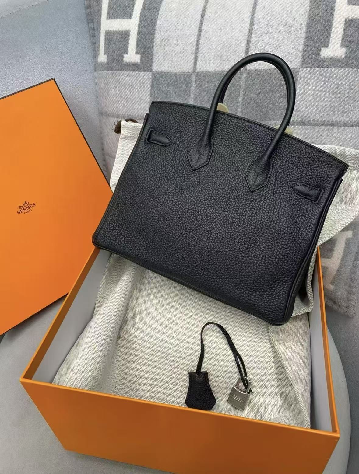 HERMES Birkin 25 Silver clasp platinum handbag 25 Women\'s Edition 89 Nior black