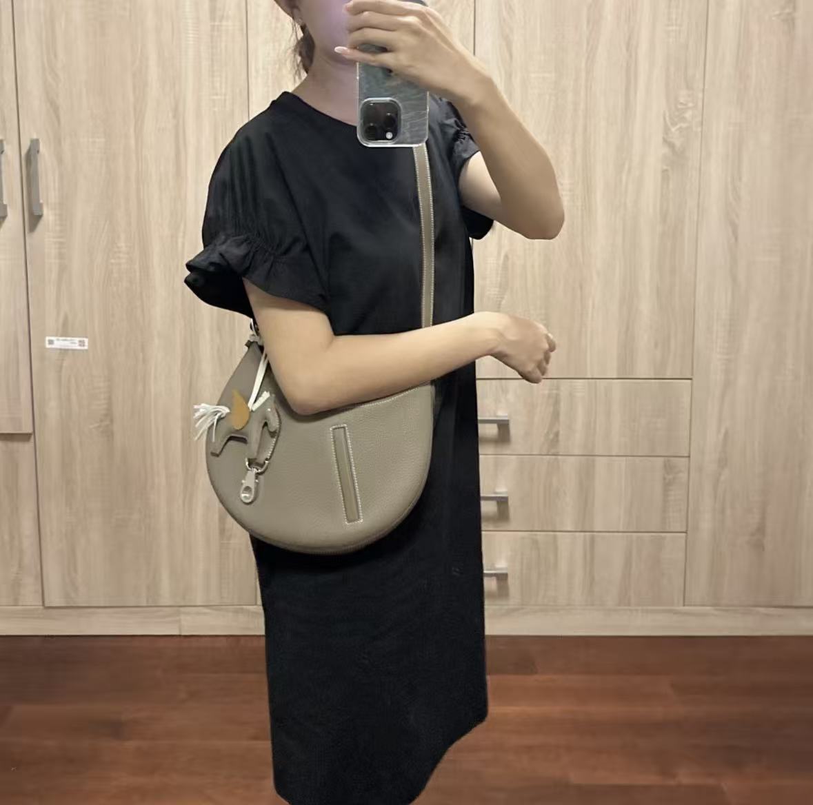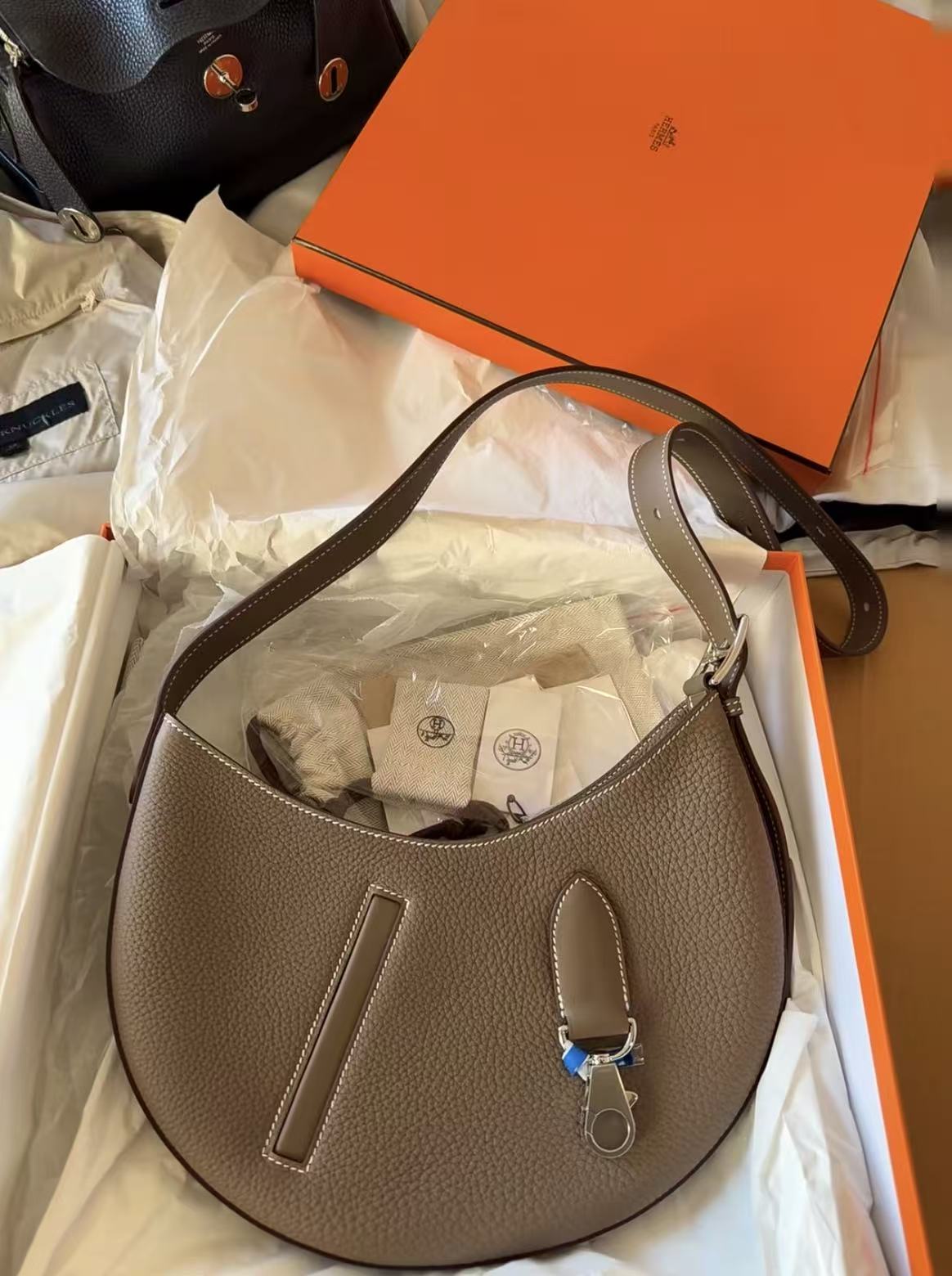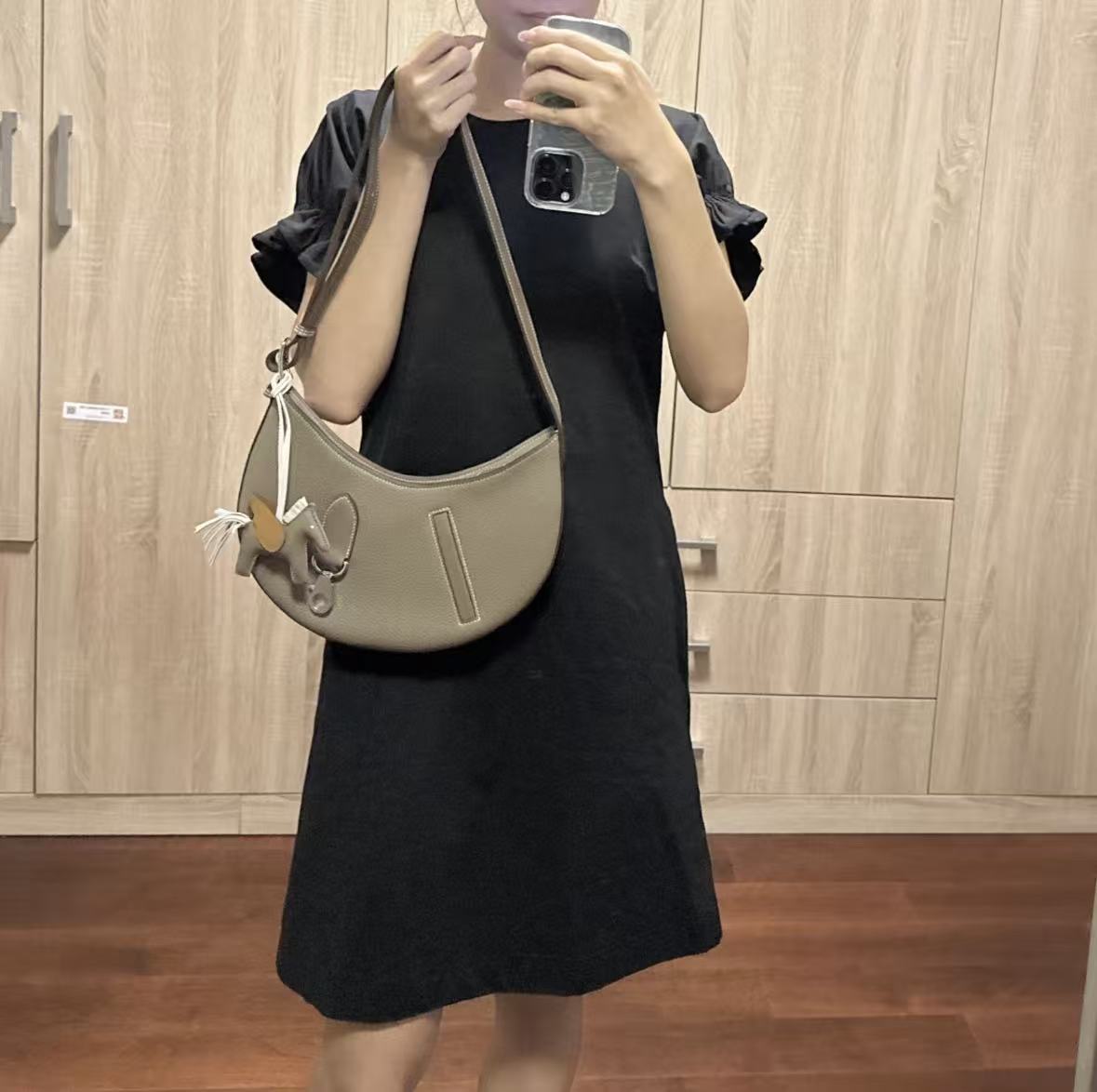HERMES Arcon silver metal hardware moon bag, hand and shoulder bag for women, 18 Etoupe, elephant grey
