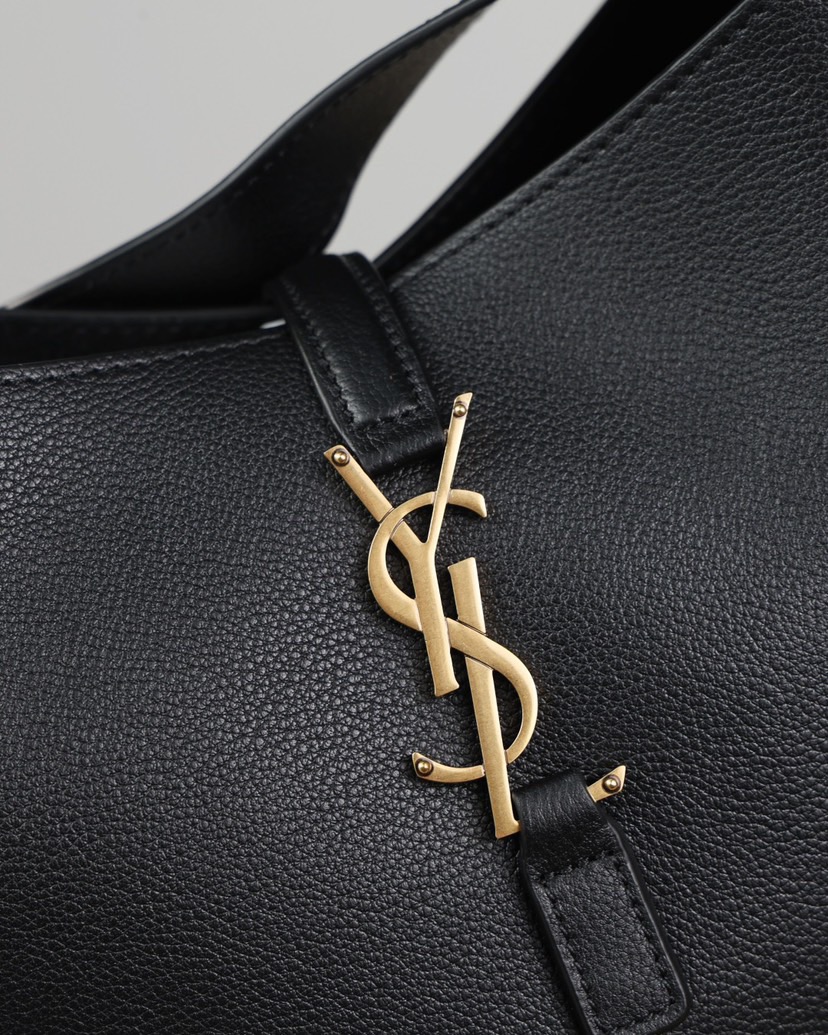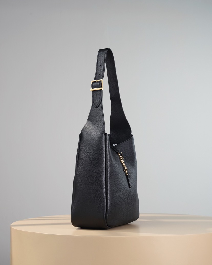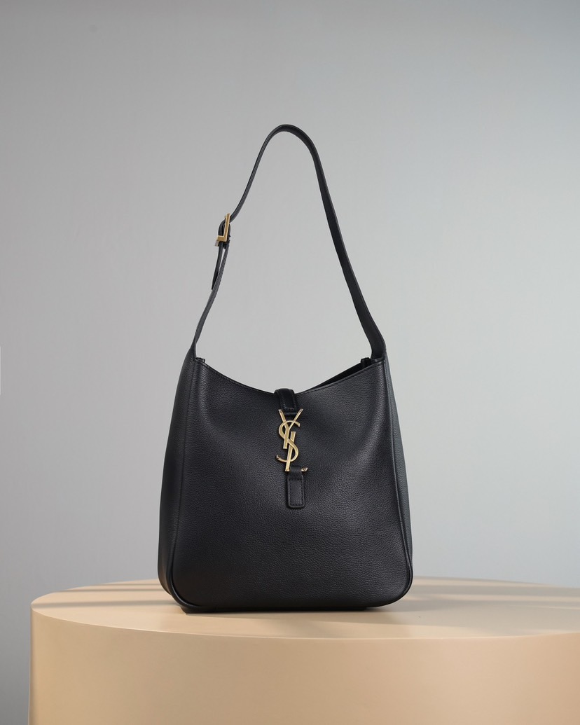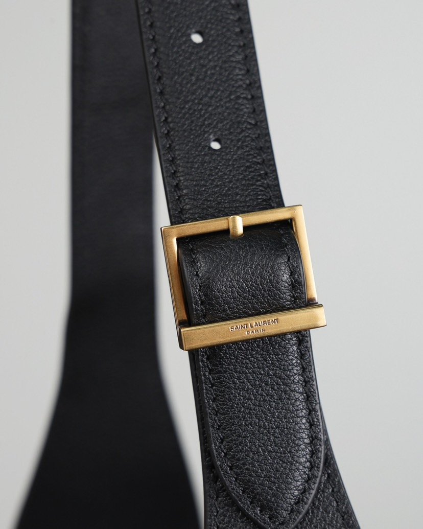 SAINT LAURENT YSL Le 5 A 7 Golden Logo hook buckle opening and closing Soft grain cowhide Hobo shoulder bag Small black