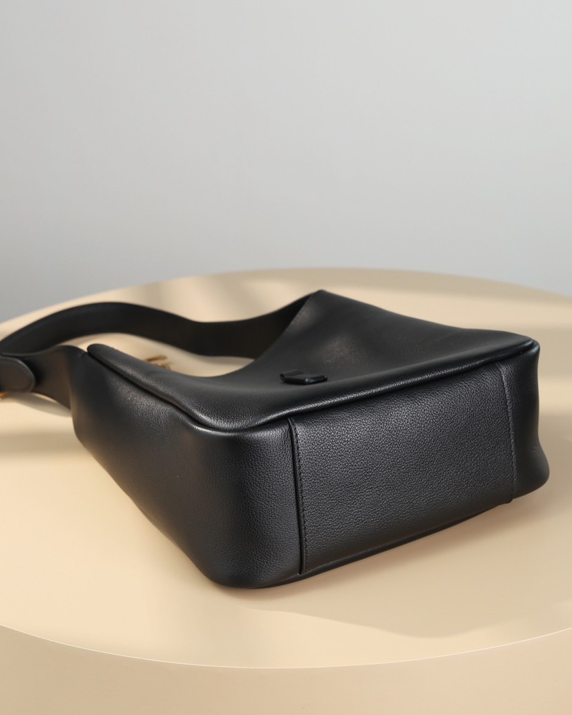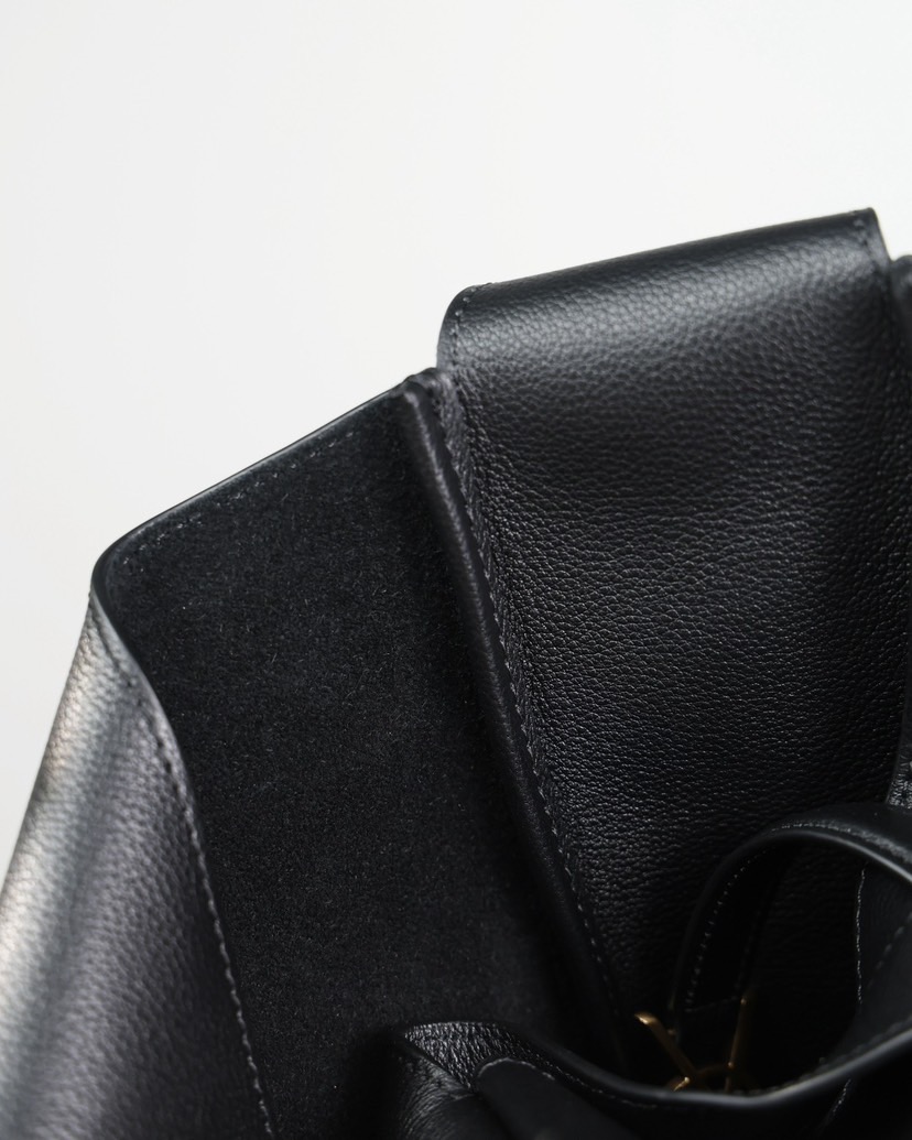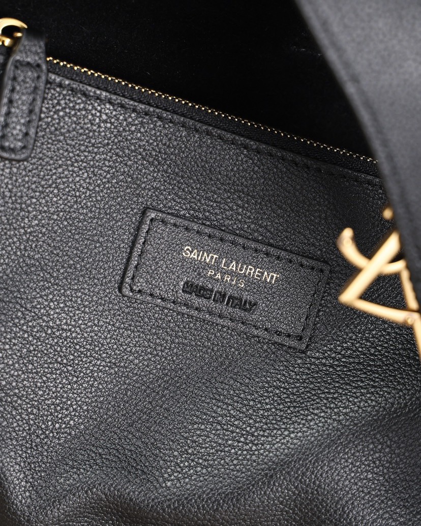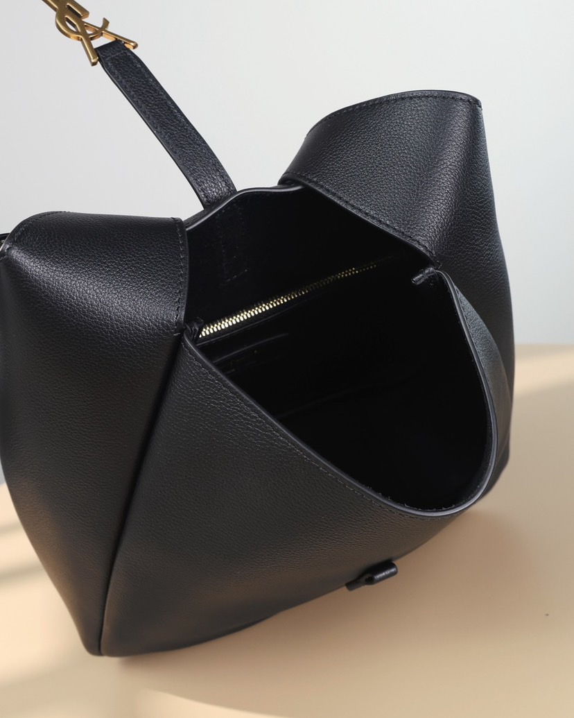 SAINT LAURENT YSL Le 5 A 7 Golden Logo hook buckle opening and closing Soft grain cowhide Hobo shoulder bag Small black
