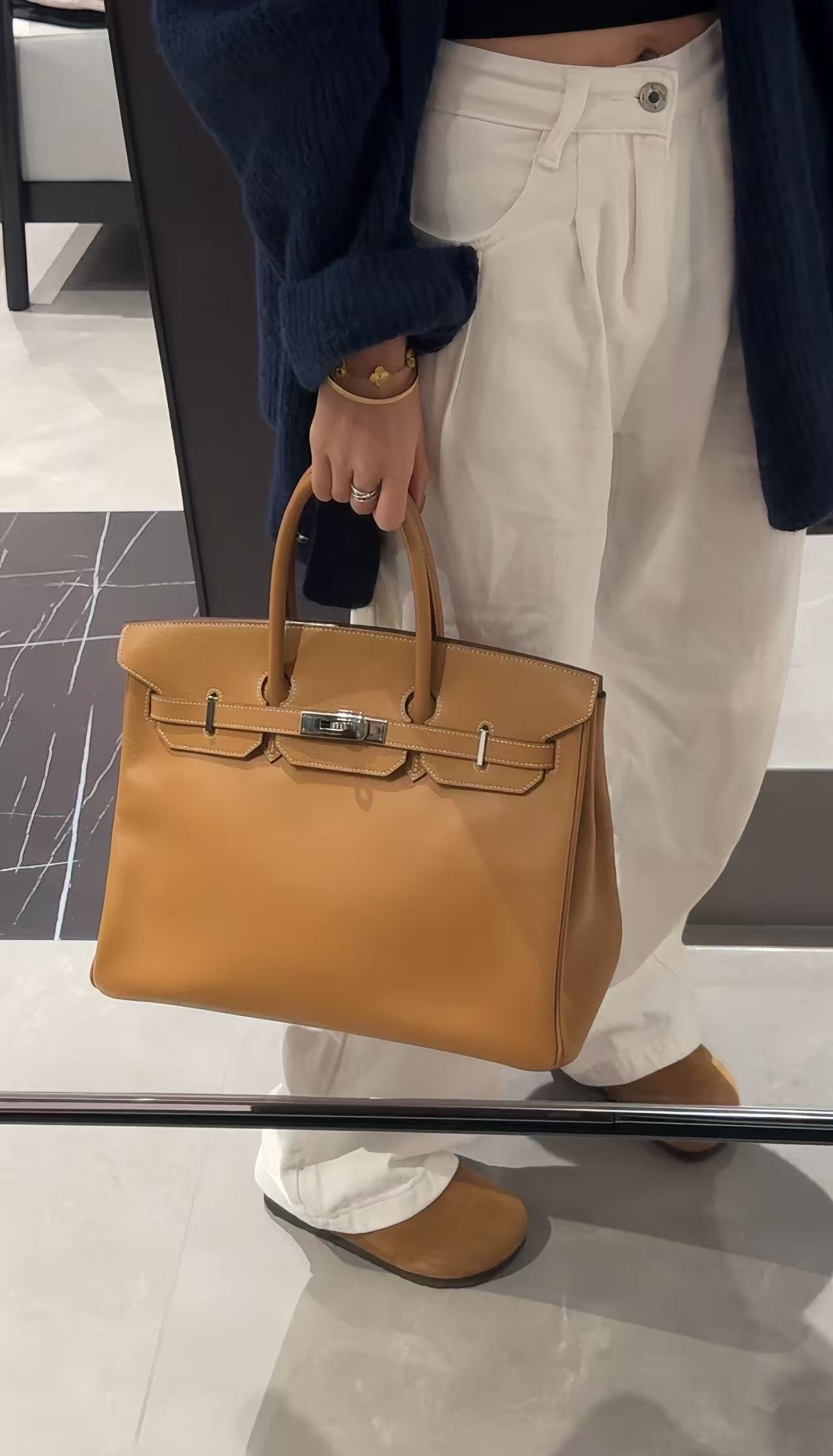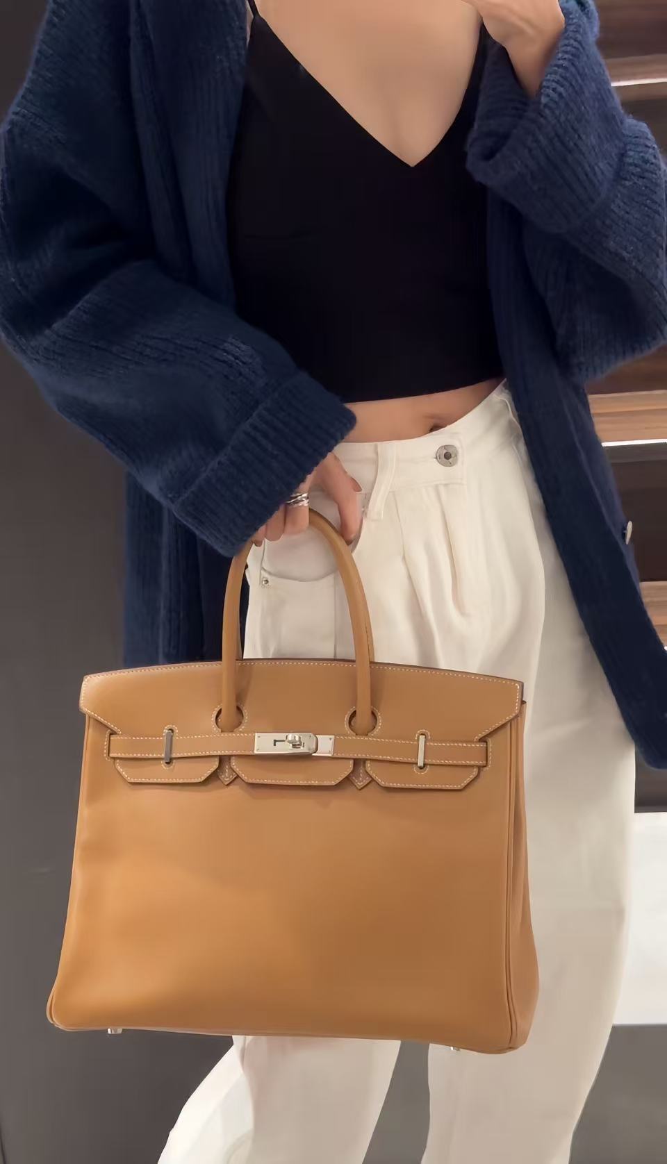 HERMES Birkin 25 Gold buckle Platinum handbag 25 Women\'s Edition 37 Gold Brown
