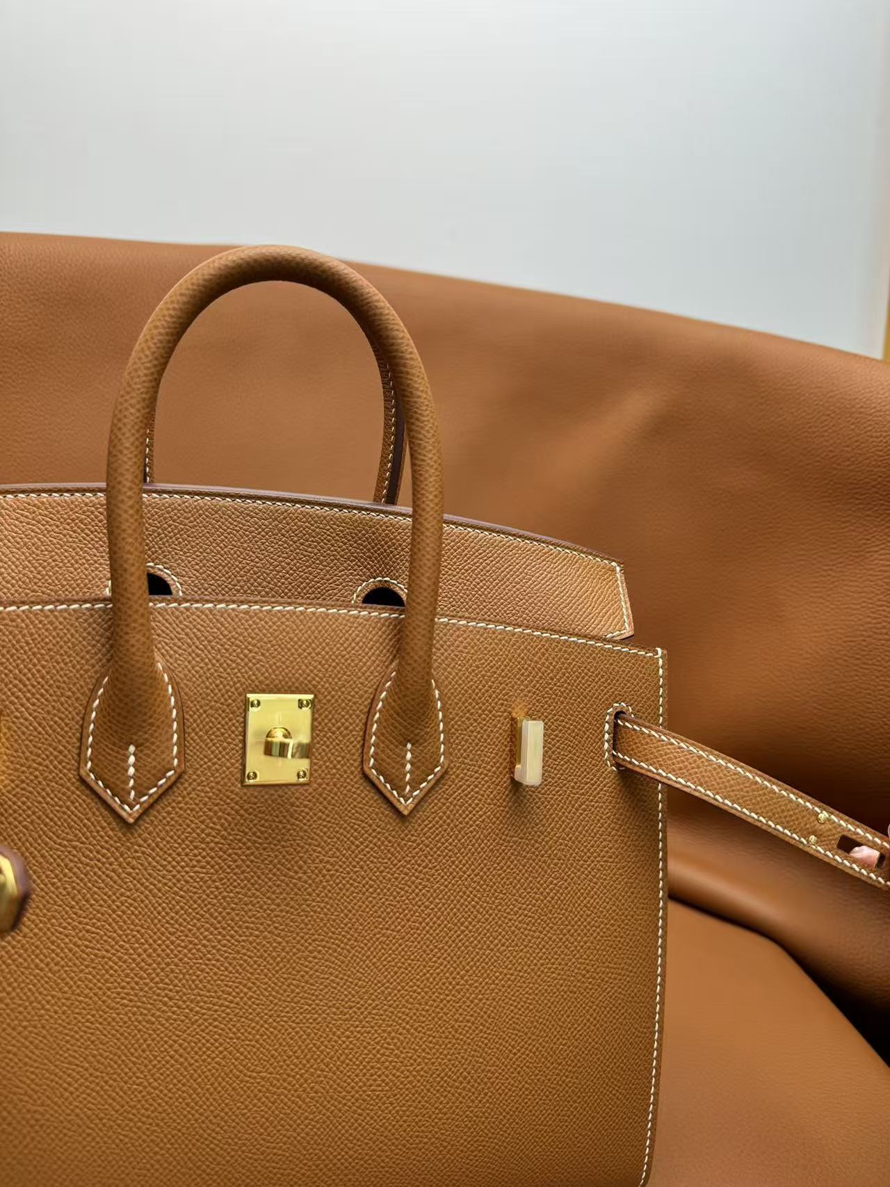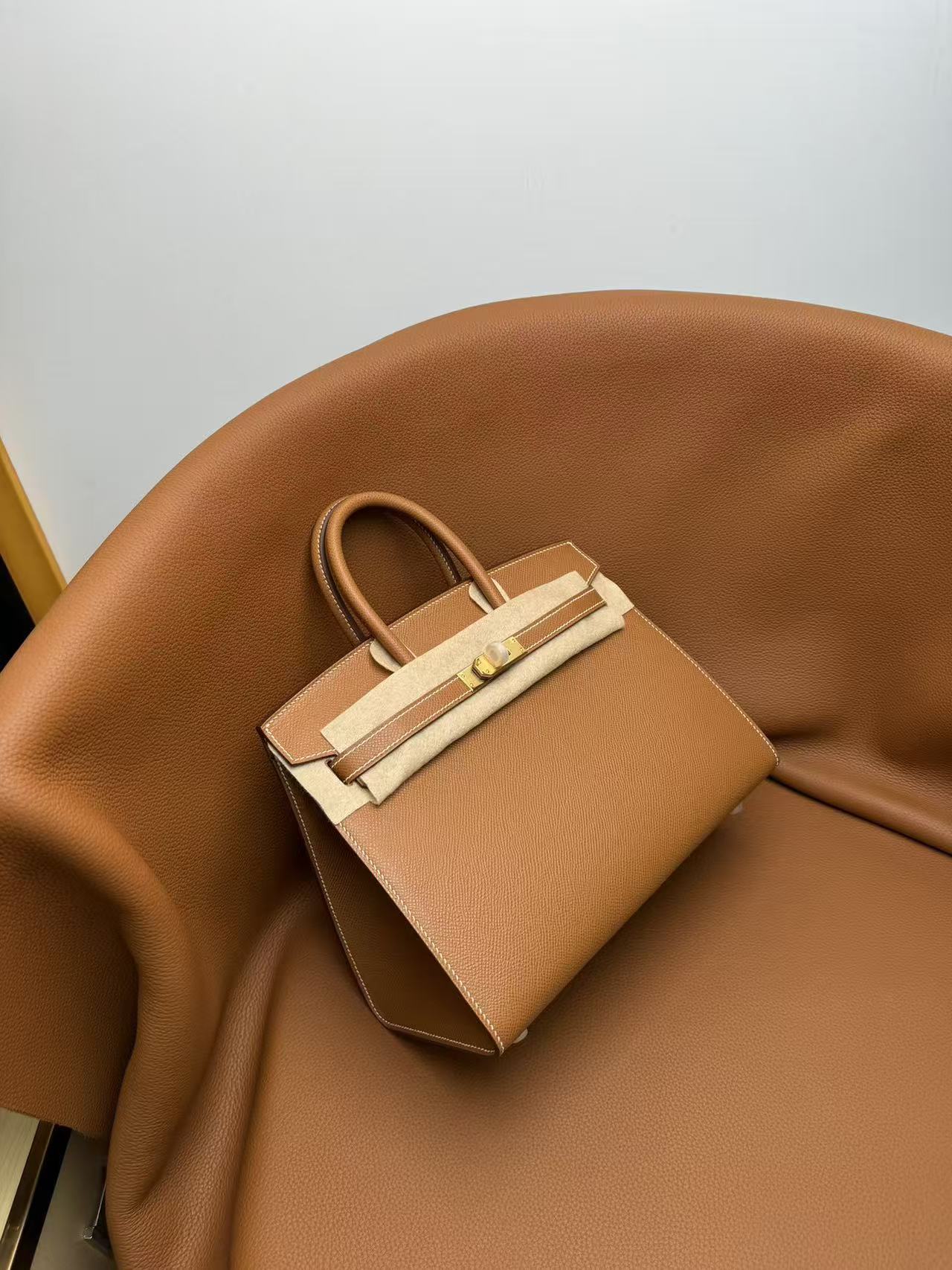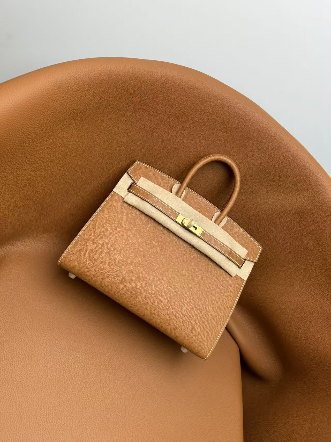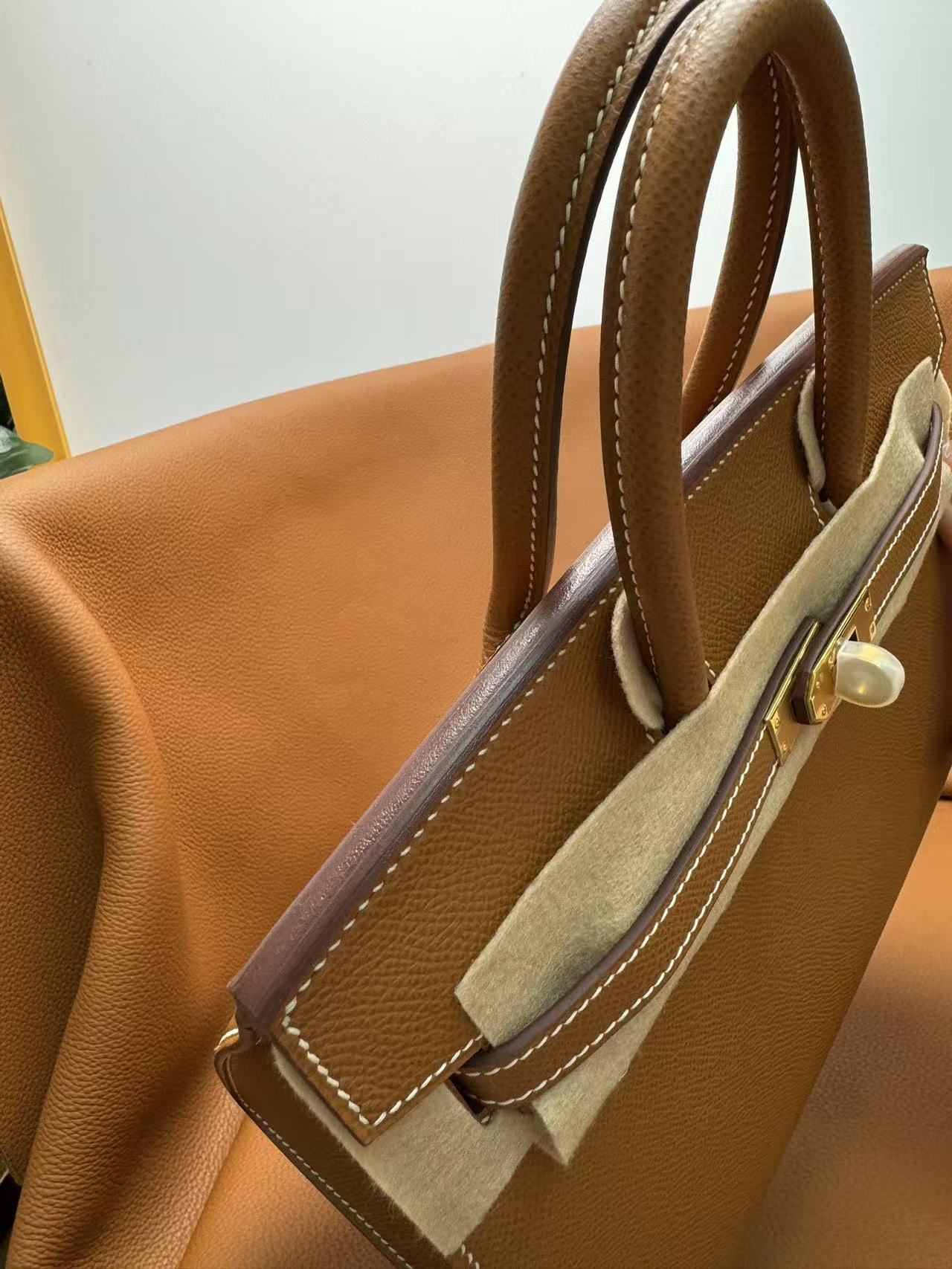 HERMES Birkin 25 Gold buckle platinum handbag 25 Women\'s Edition 1H Toffee in Taffee color