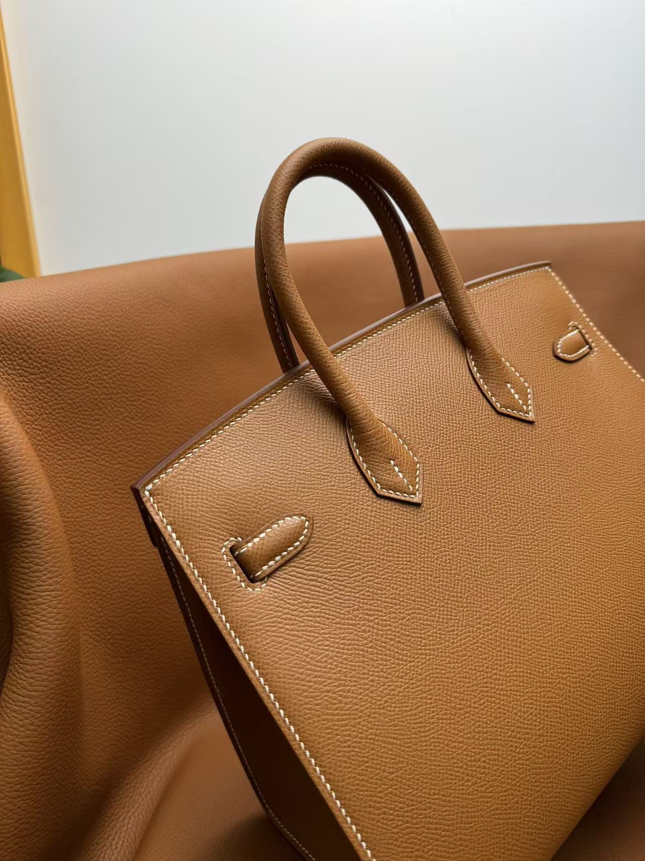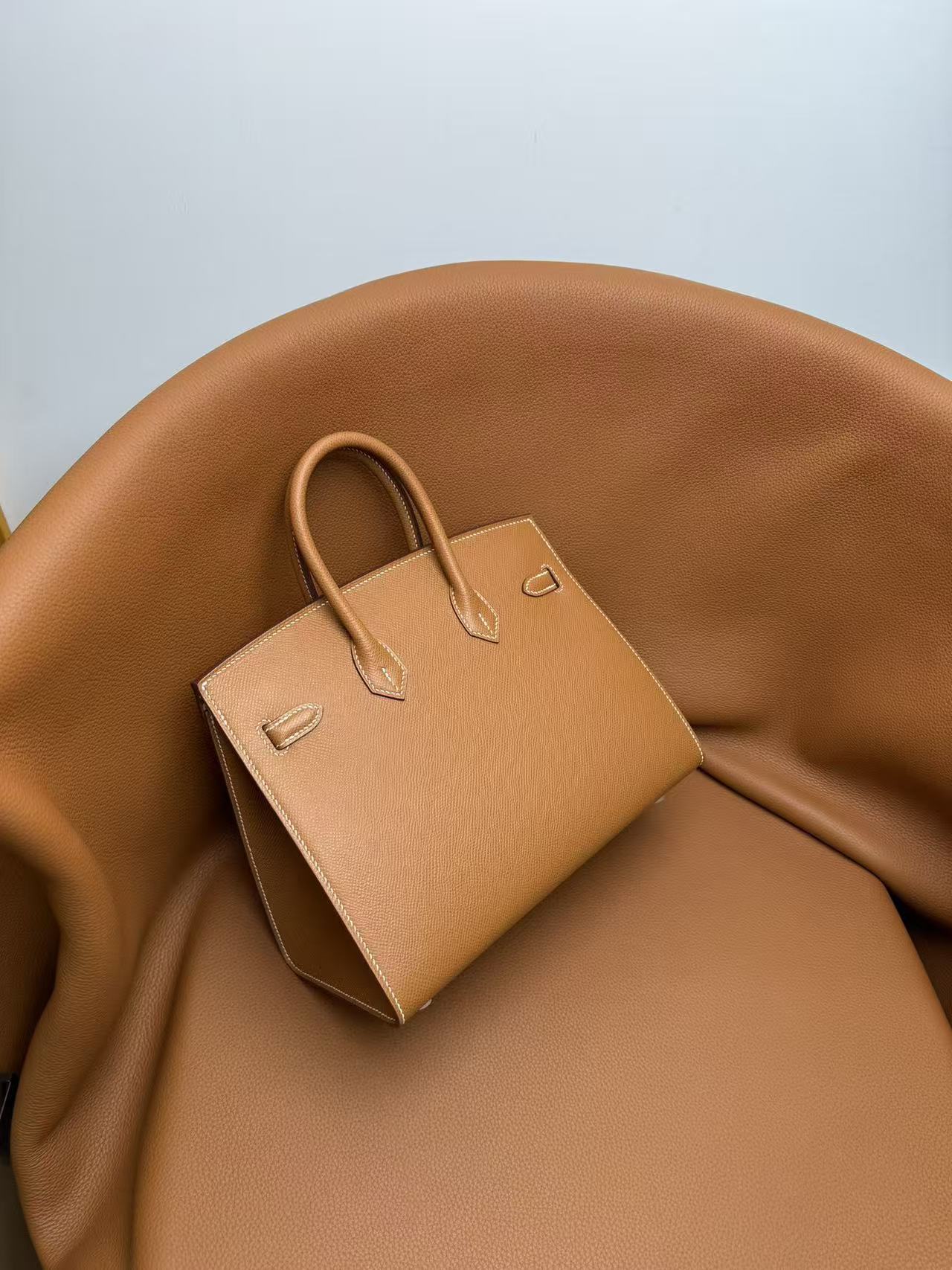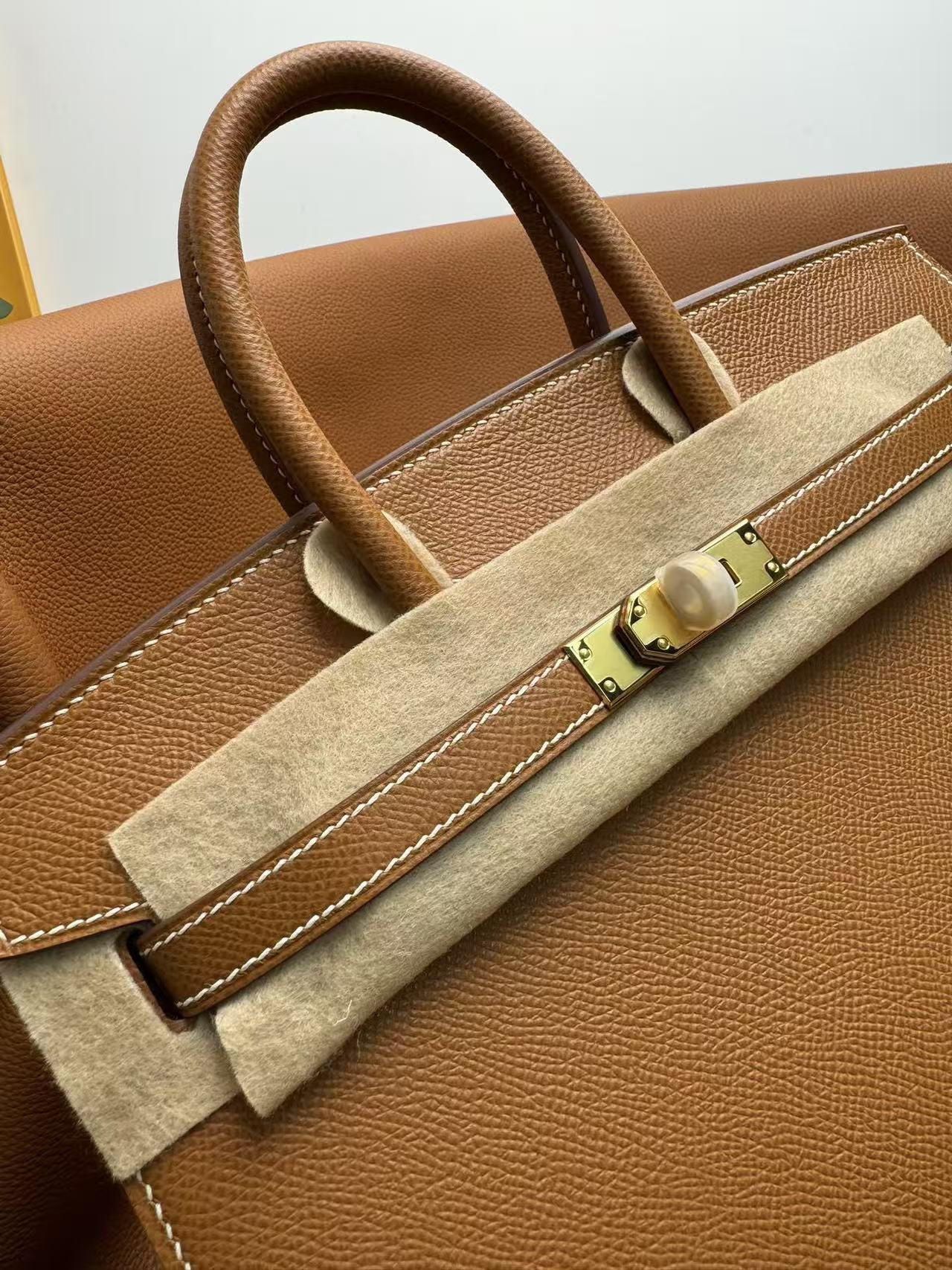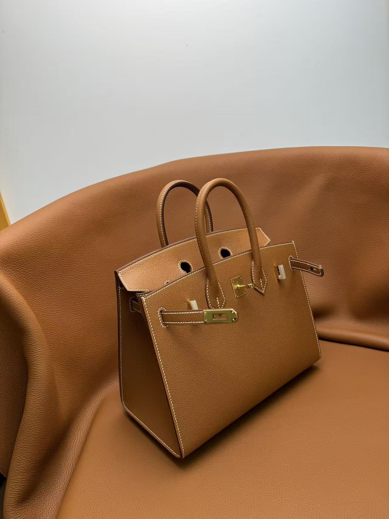 HERMES Birkin 25 Gold buckle platinum handbag 25 Women\'s Edition 1H Toffee in Taffee color