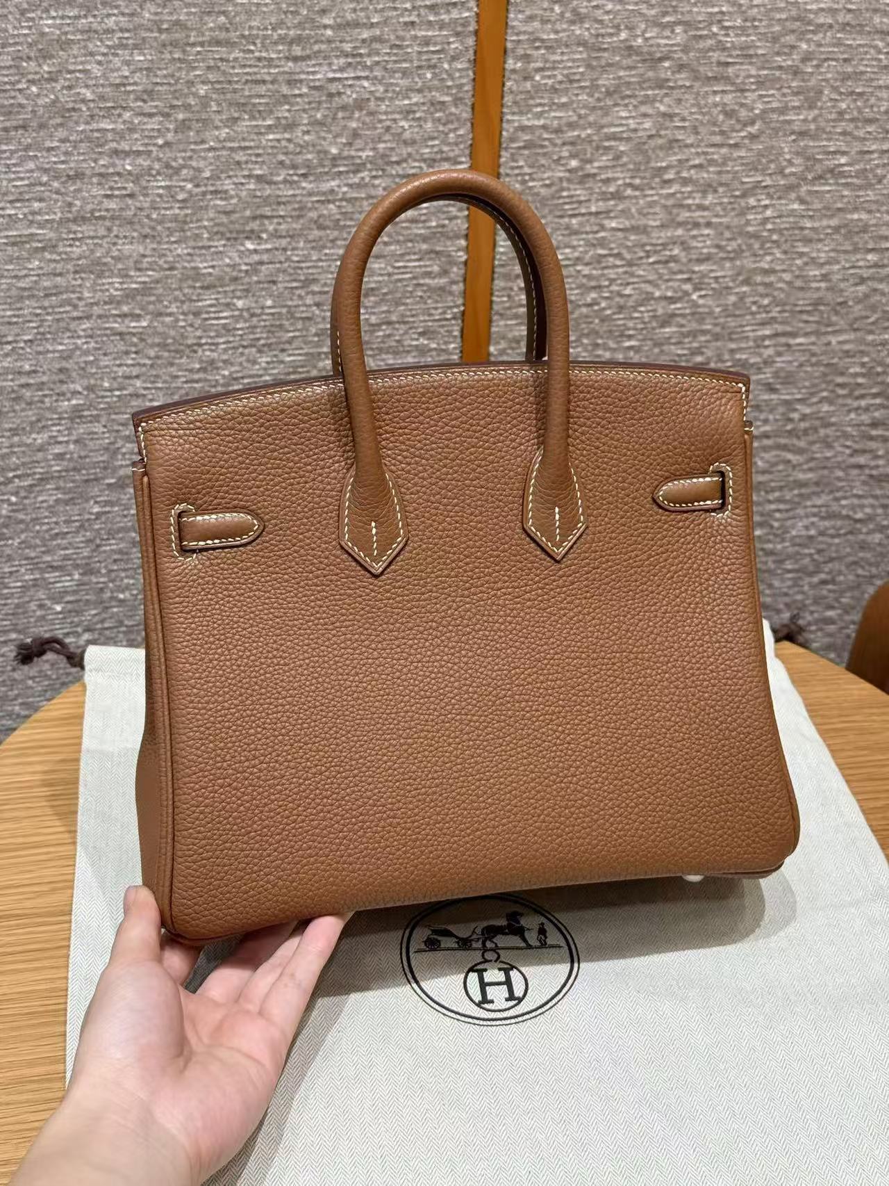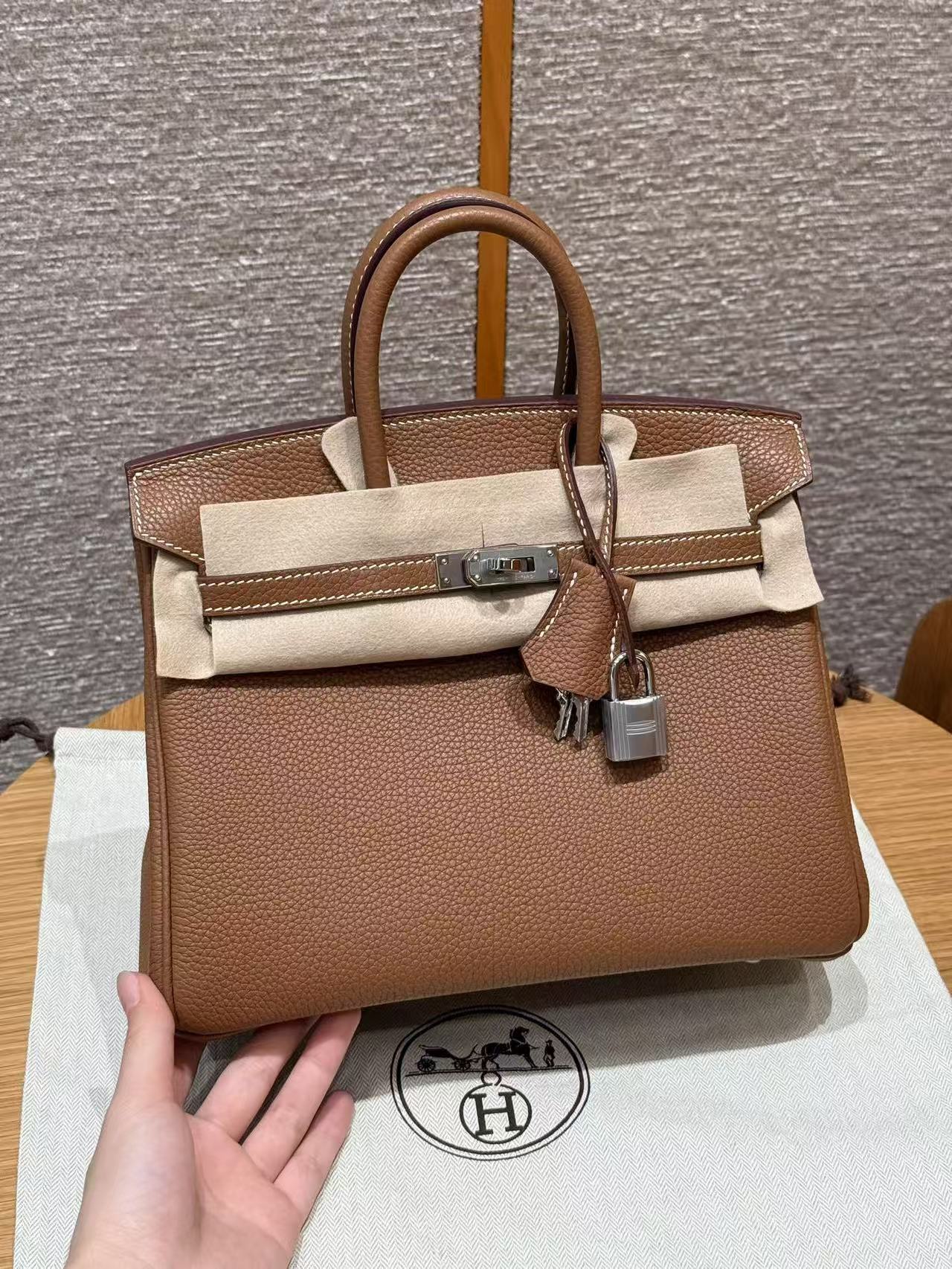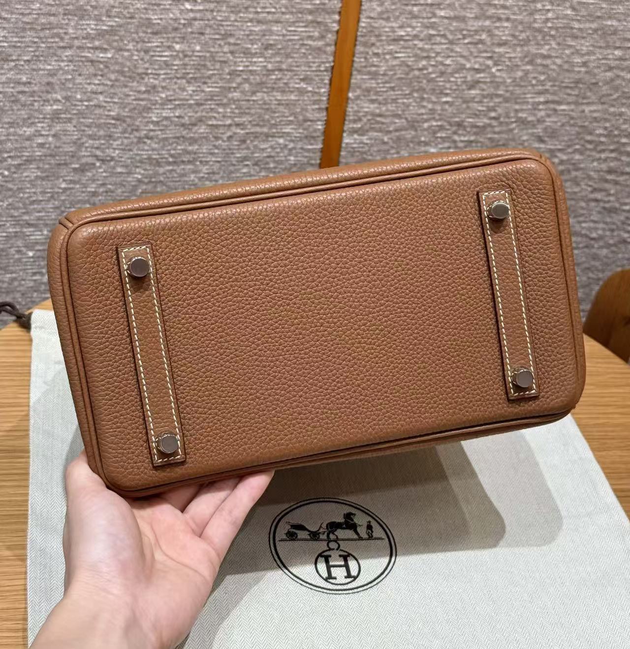 HERMES Birkin 25 Silver clasp platinum handbag 25 Women\'s Edition 37 Gold Brown