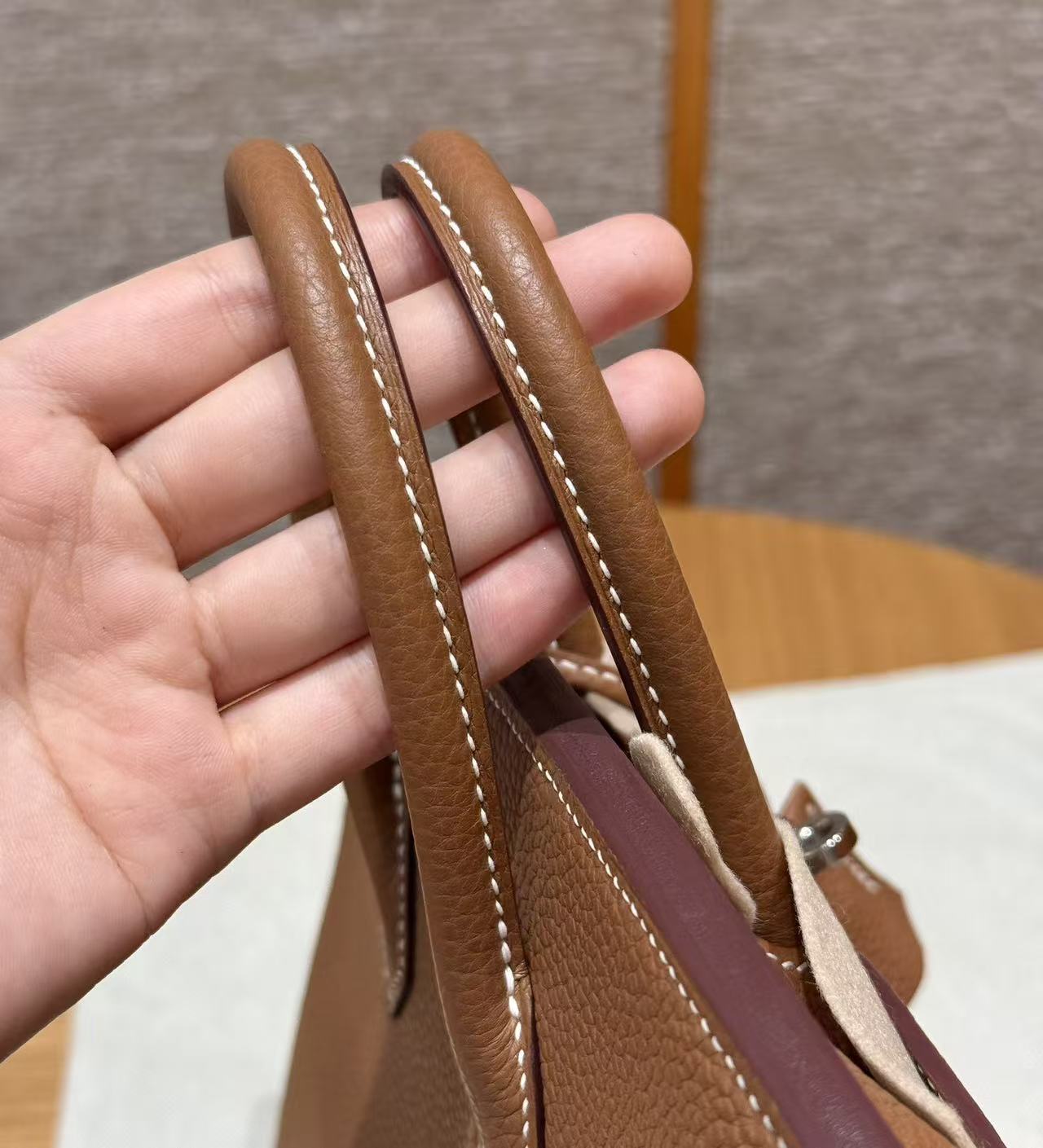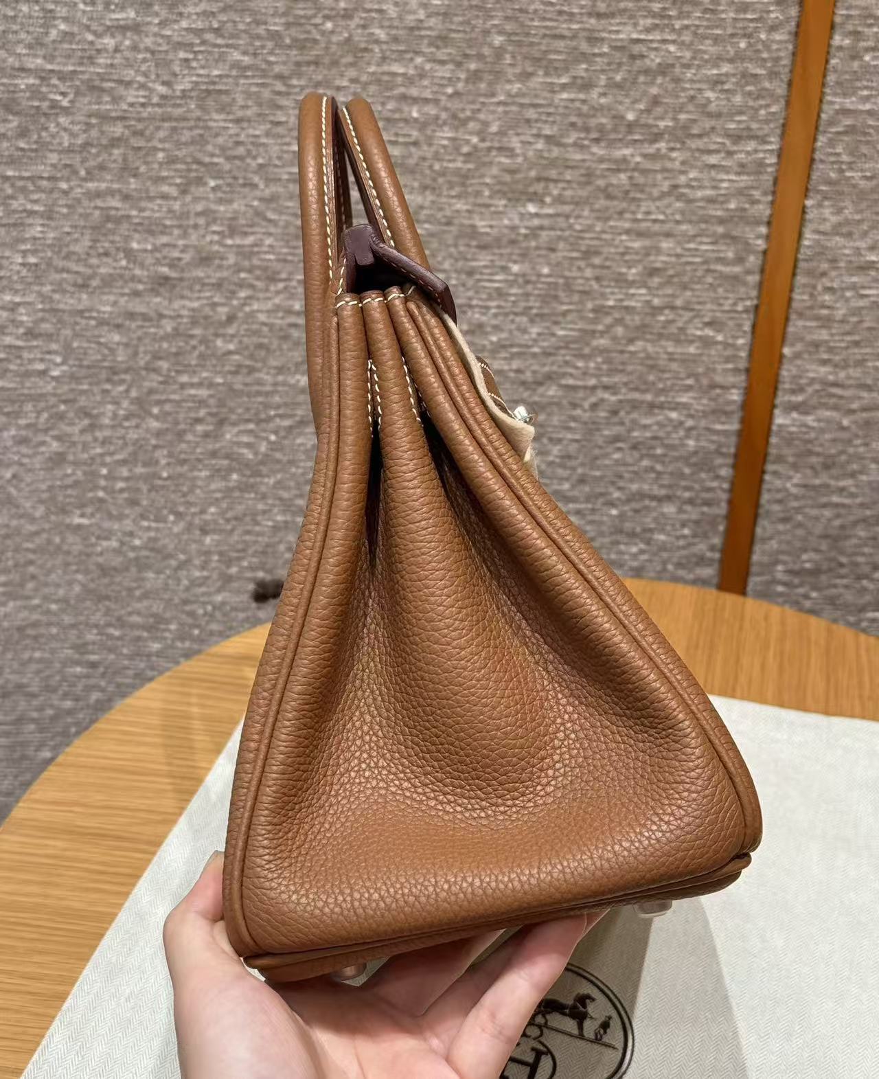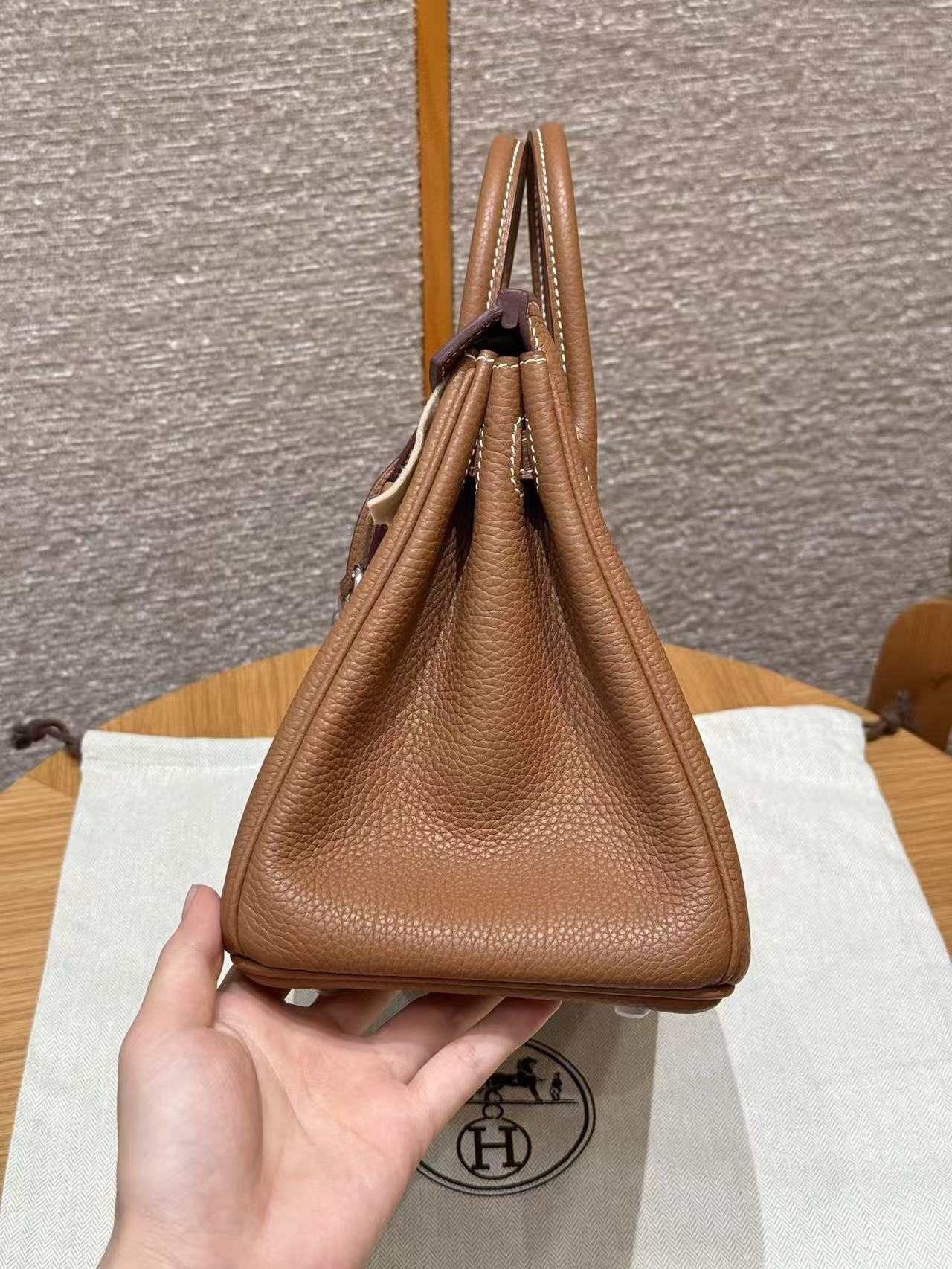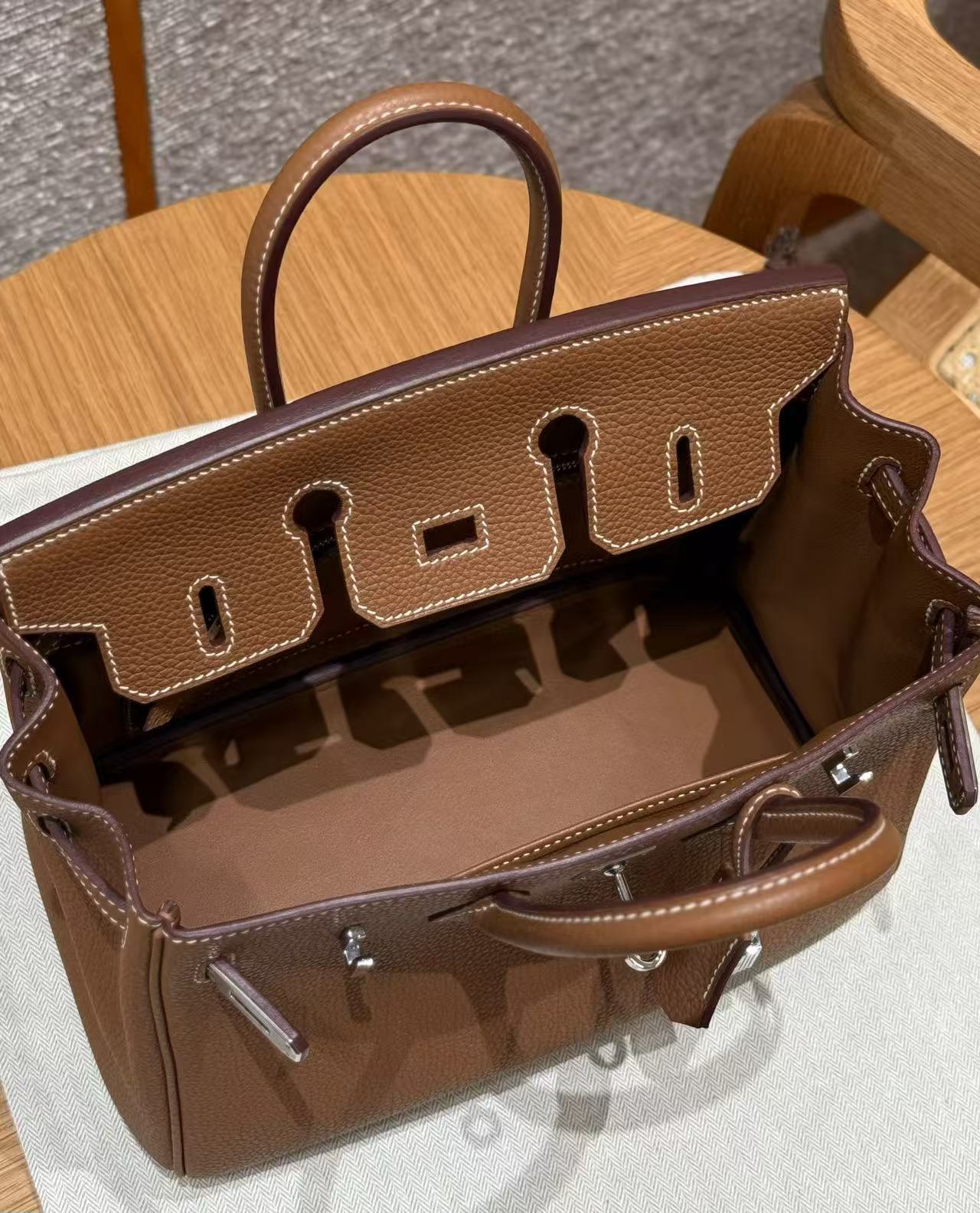 HERMES Birkin 25 Silver clasp platinum handbag 25 Women\'s Edition 37 Gold Brown