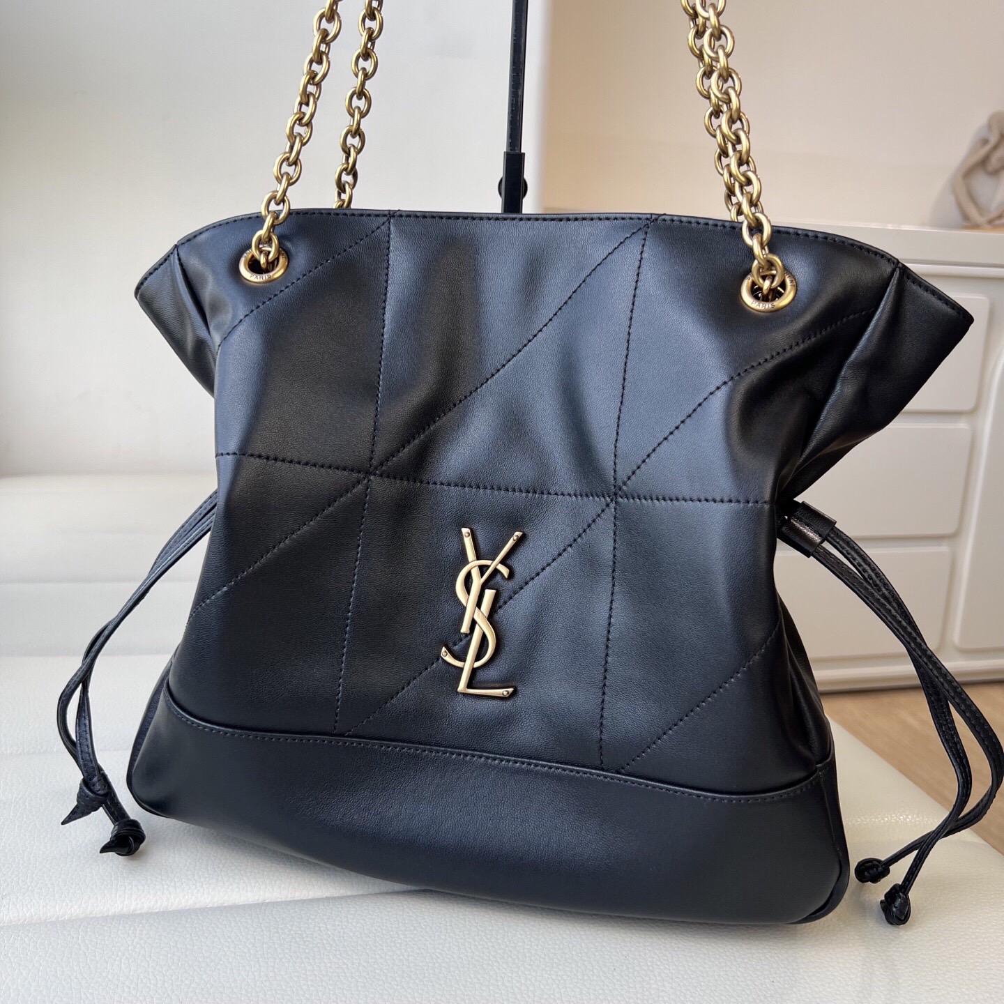 SAINT LAURENT YSL Jamie Small lucky bag, Metal logo chain shoulder strap, Tote bag, shopping bag, hand-held shoulder bag, small size, black