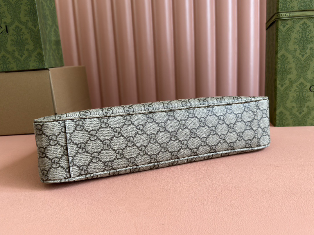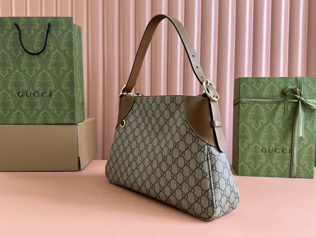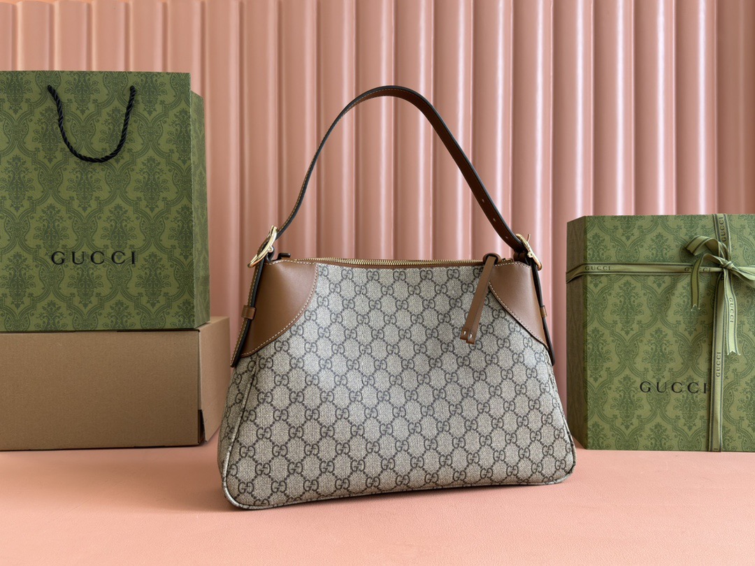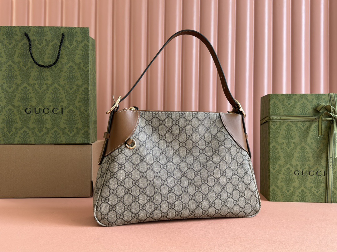 GUCCI Emblem adjustable shoulder strap with letter-patterned hand-held shoulder bag, medium size for women in beige and dark brown