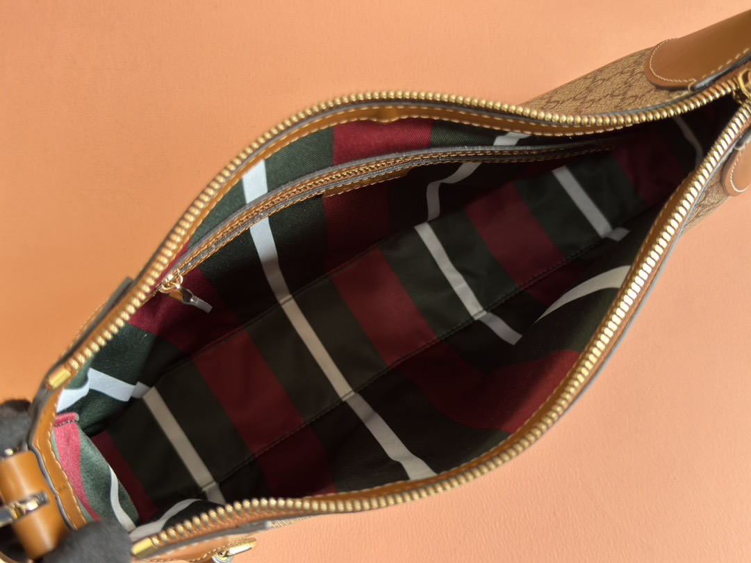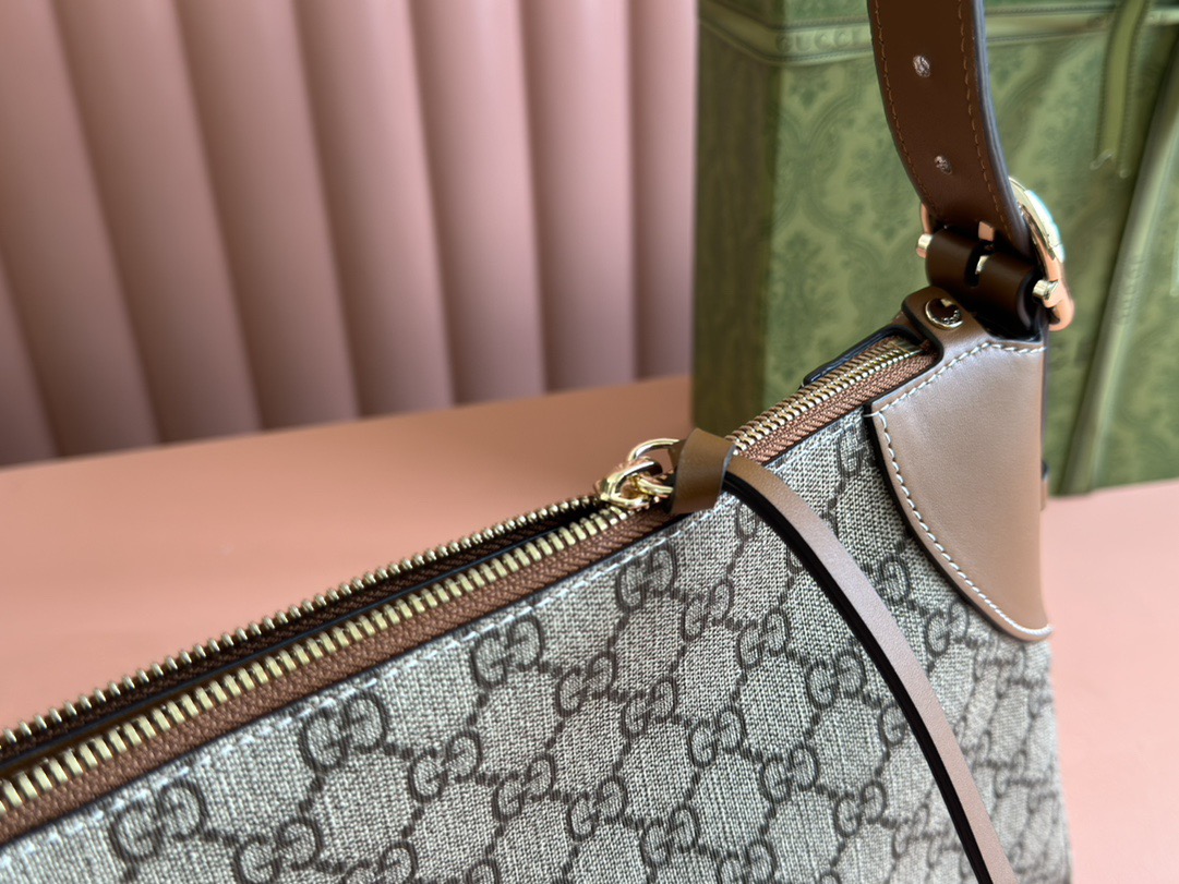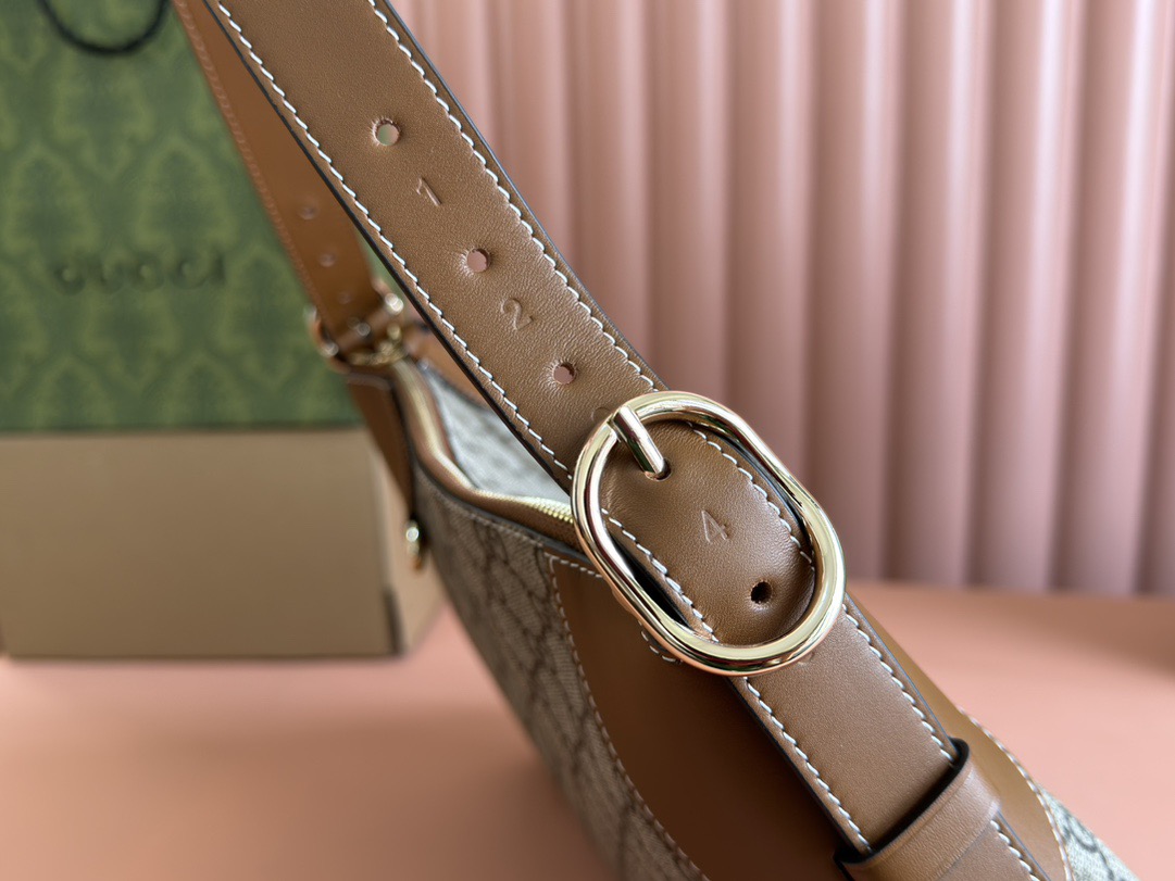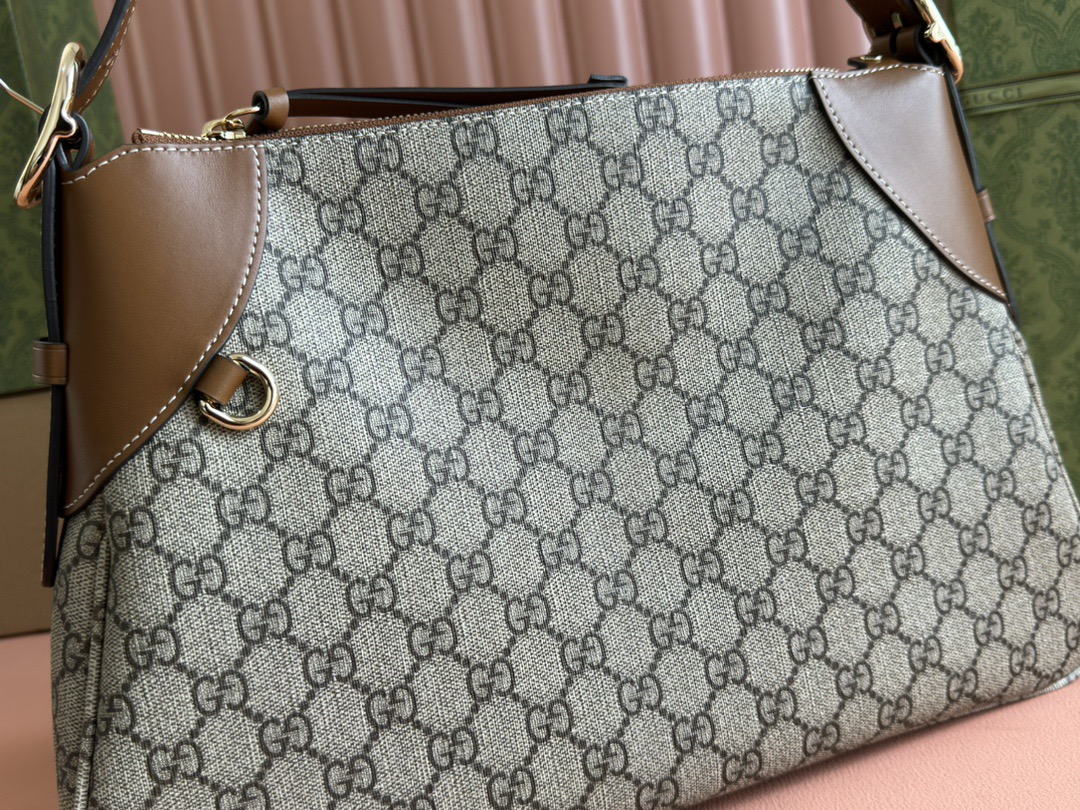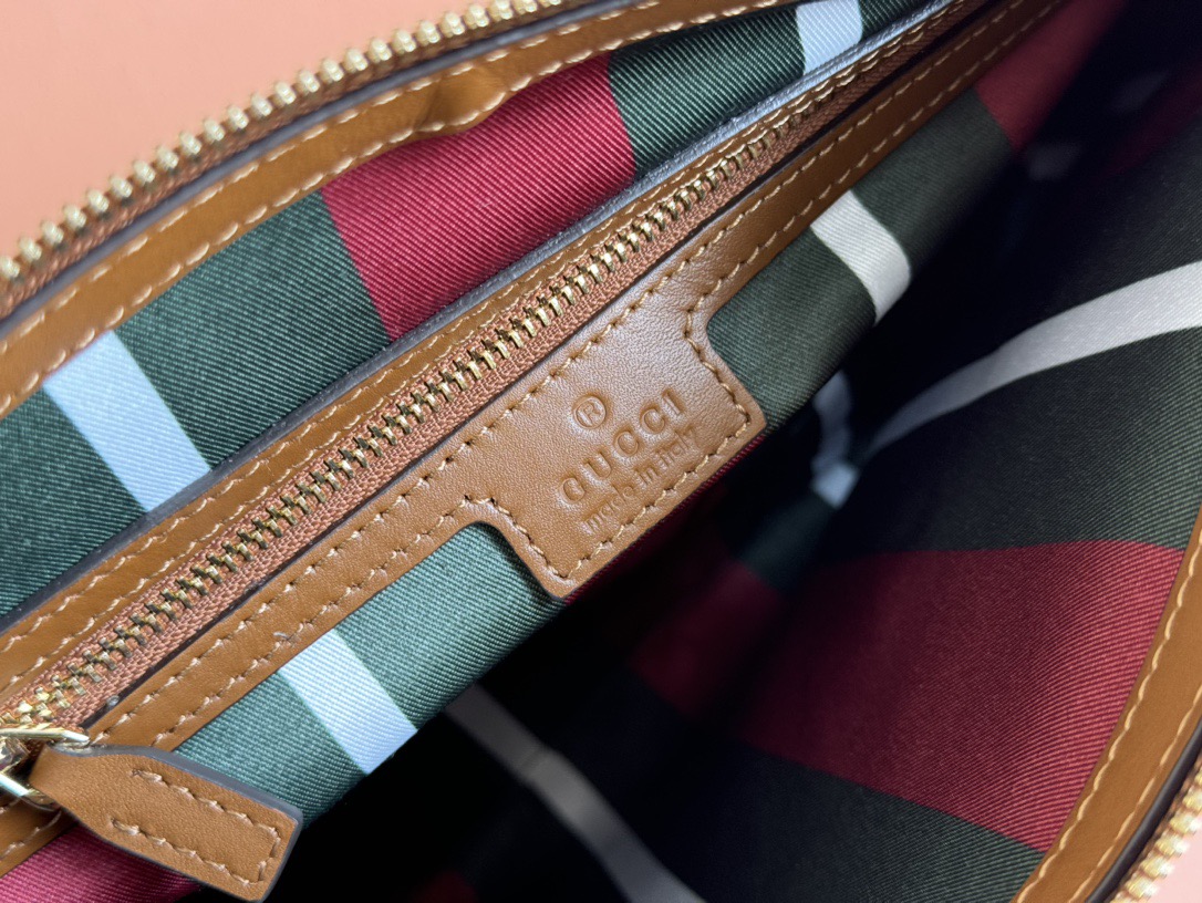 GUCCI Emblem adjustable shoulder strap with letter-patterned hand-held shoulder bag, medium size for women in beige and dark brown