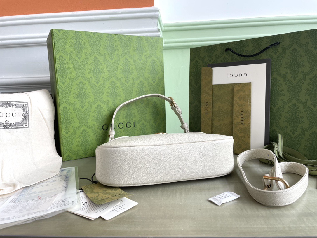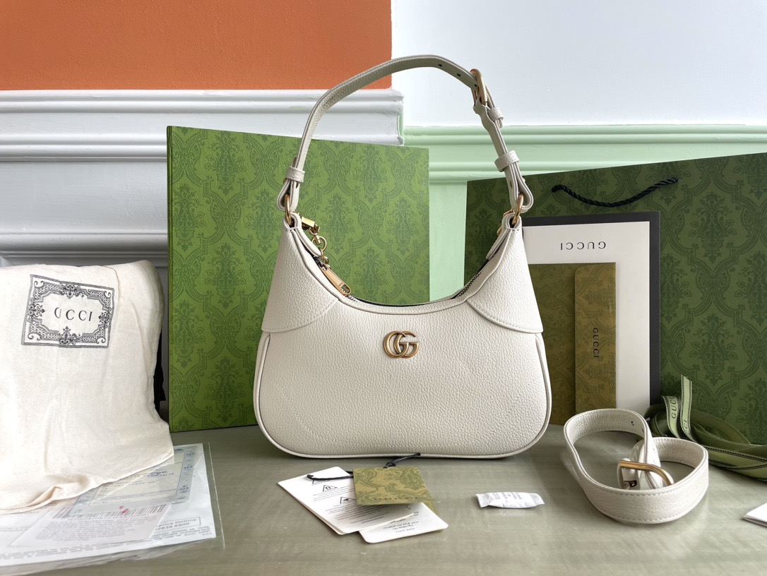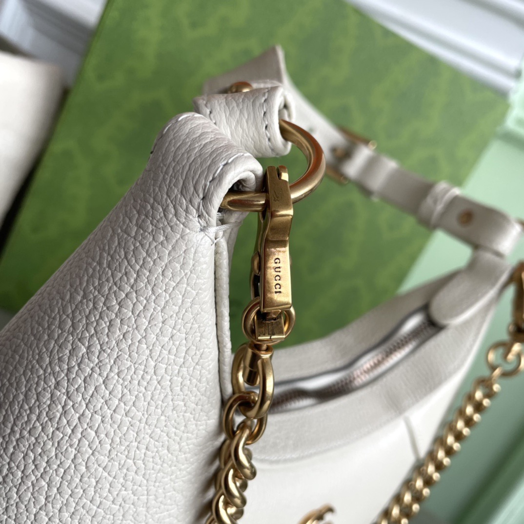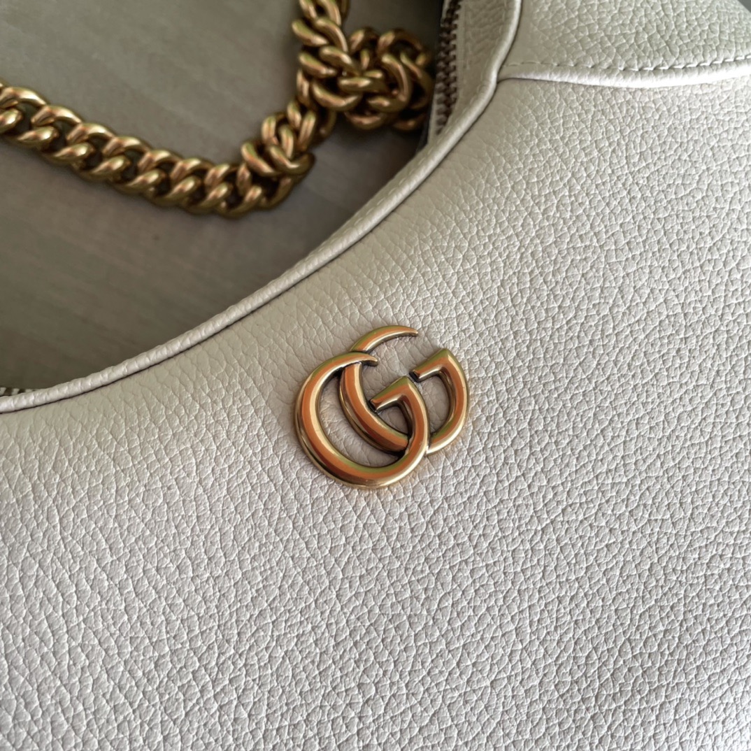 GUCCI Aphrodite gold logo crescent moon bag, hand-held shoulder bag, small size for women, white