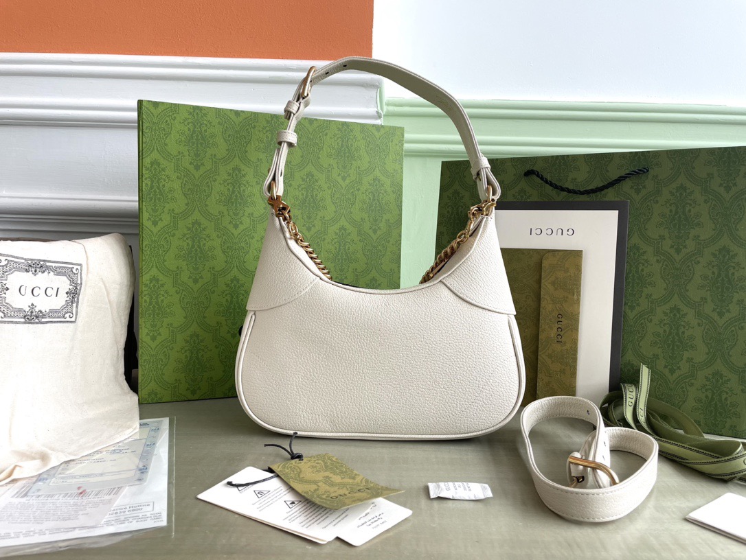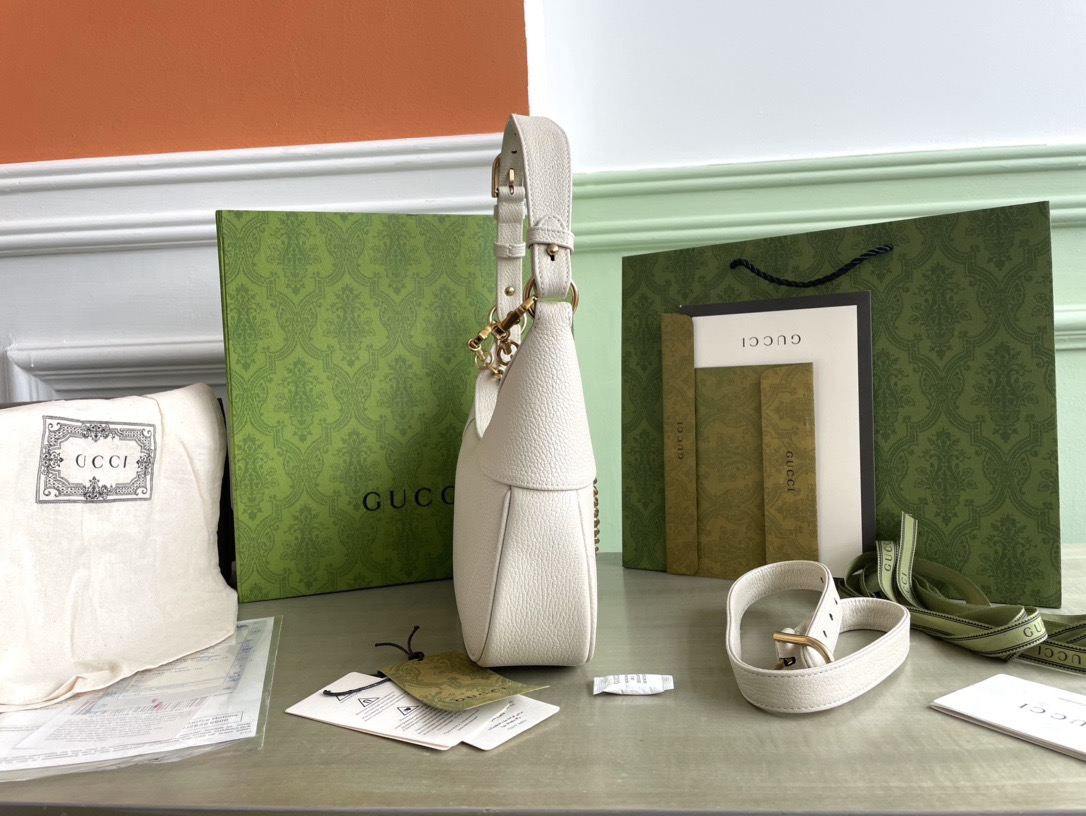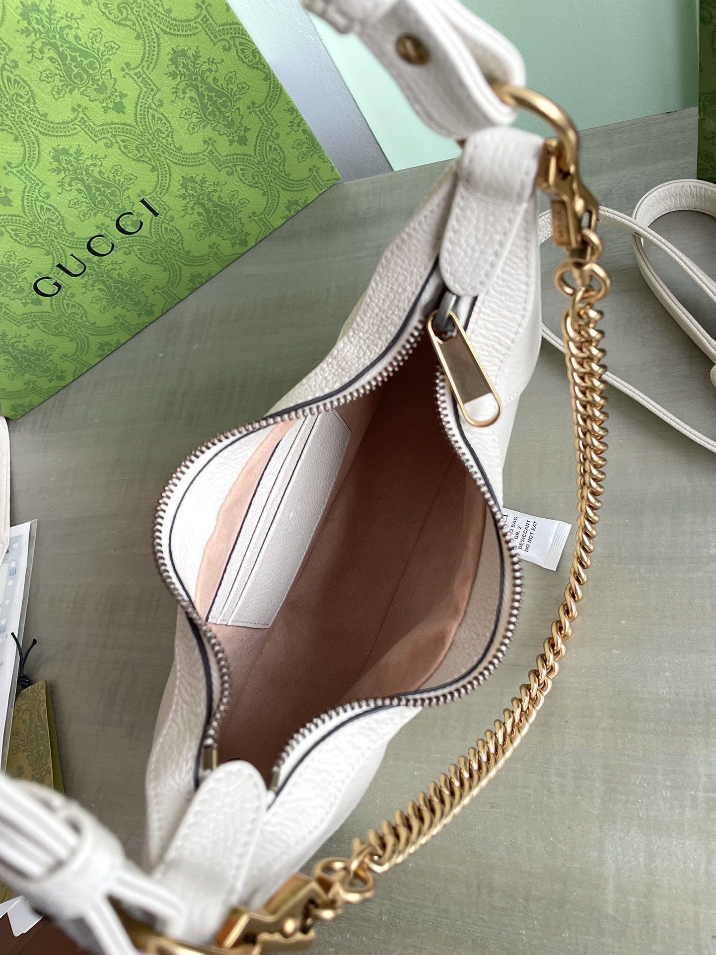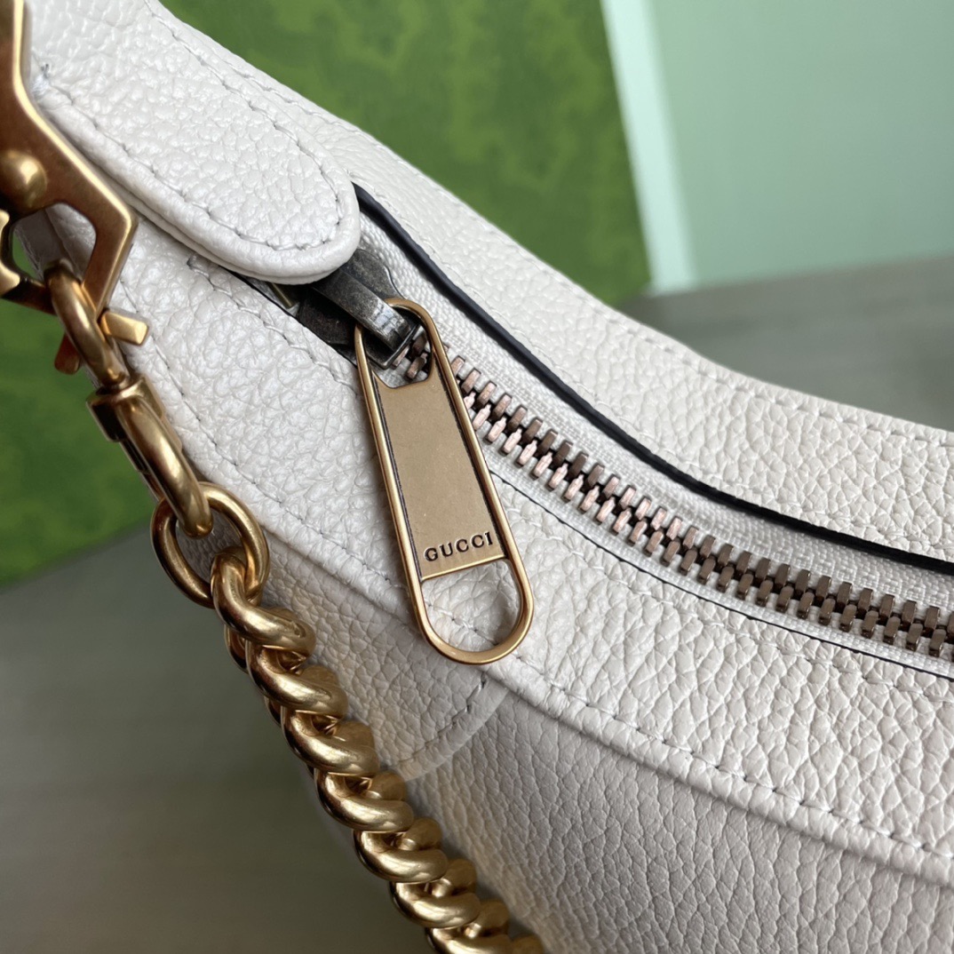 GUCCI Aphrodite gold logo crescent moon bag, hand-held shoulder bag, small size for women, white