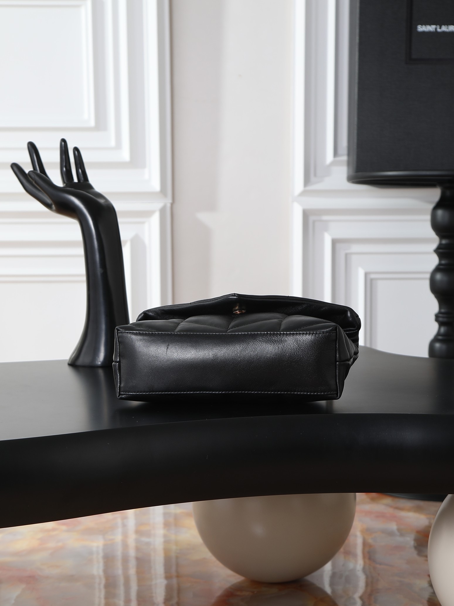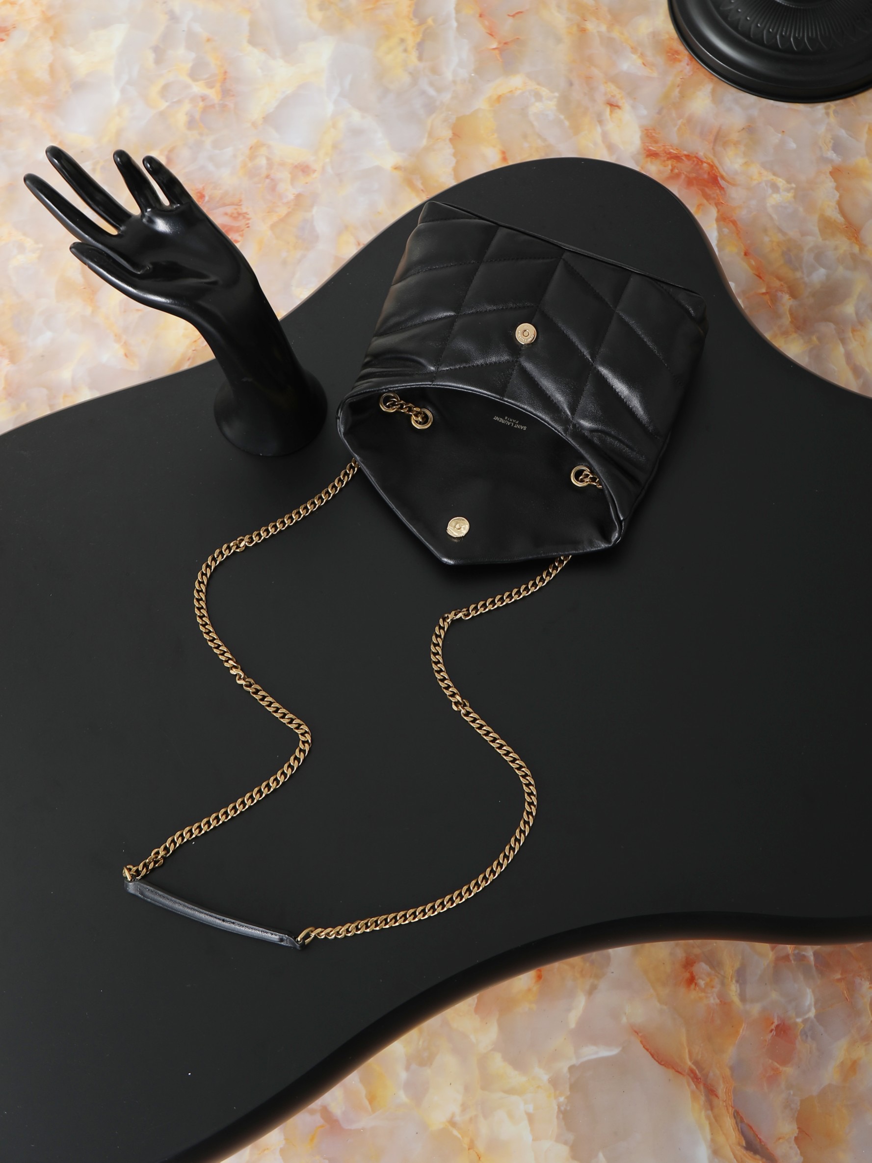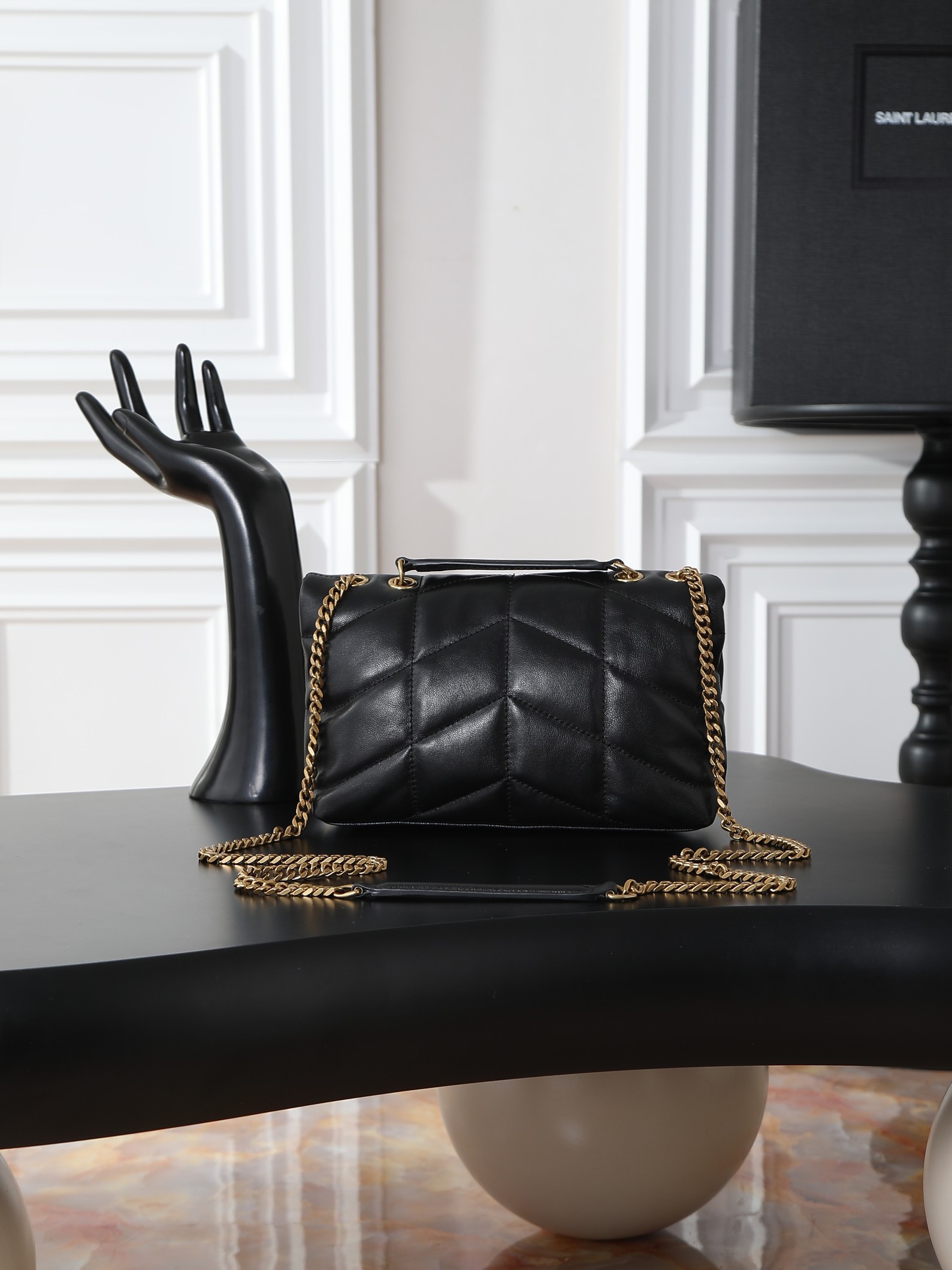 SAINT LAURENT YSL PUFFER, bronze metal accessories, double leather edge chain shoulder strap, hand-held crossbody single-shoulder bag, black