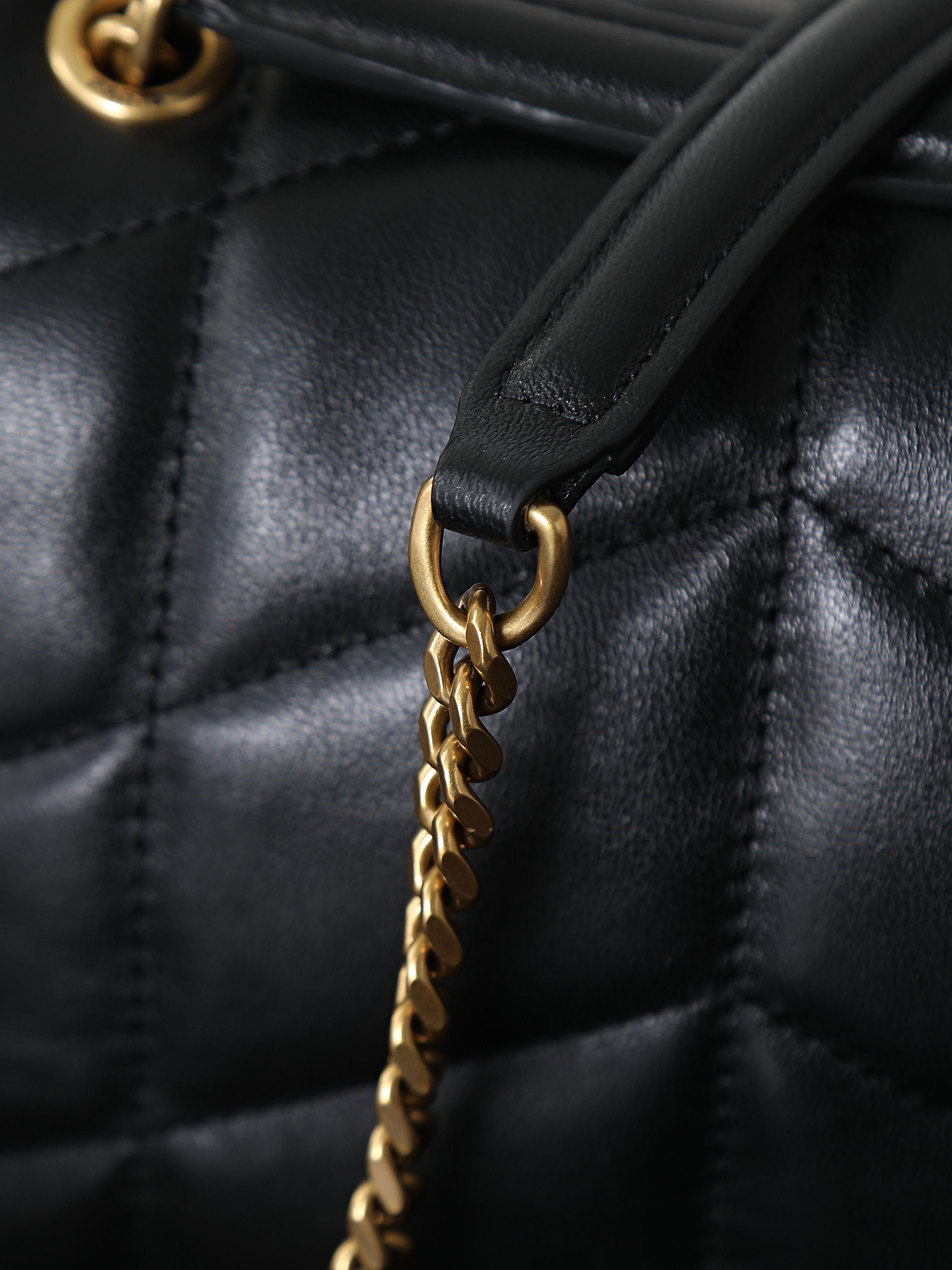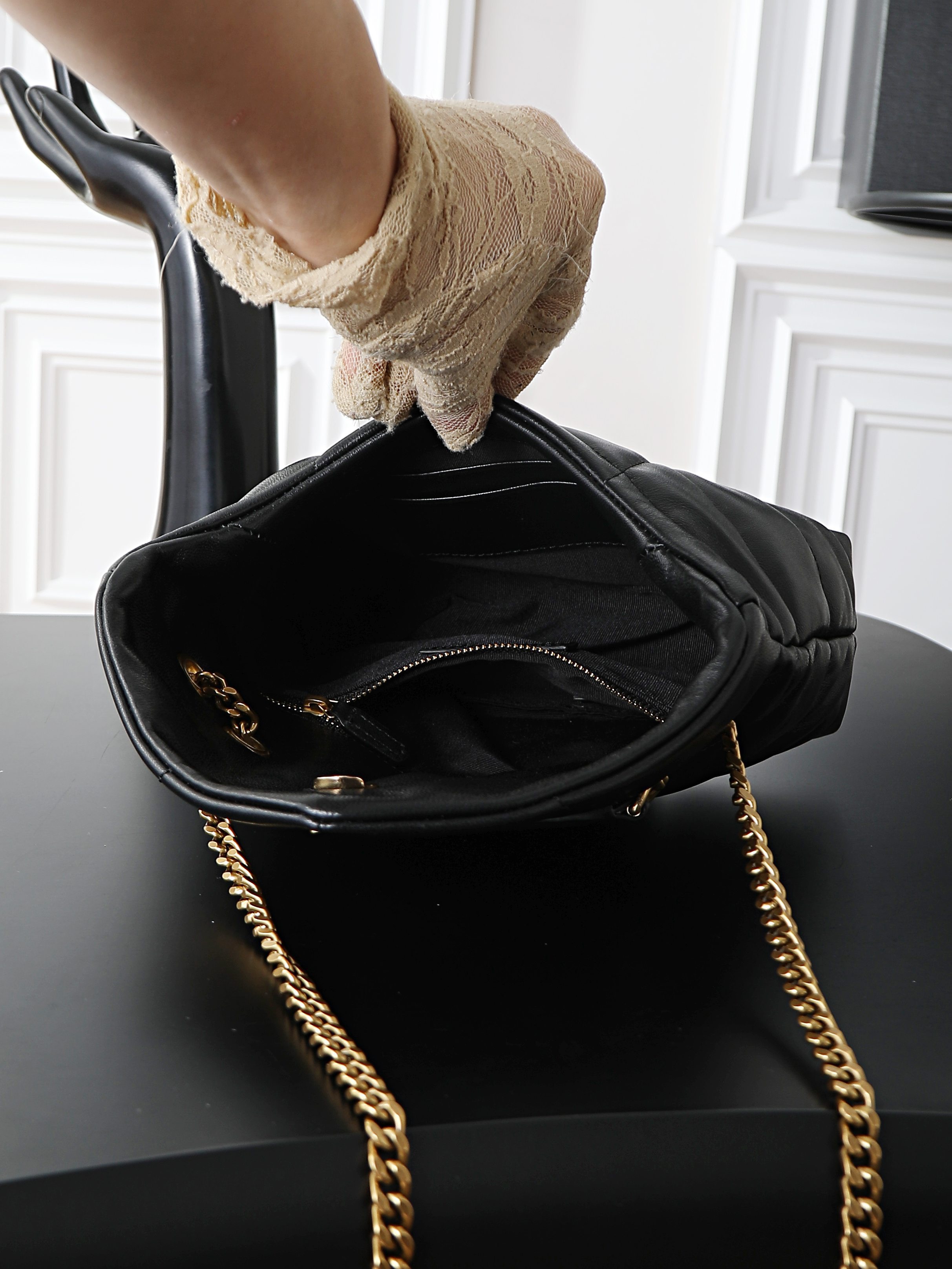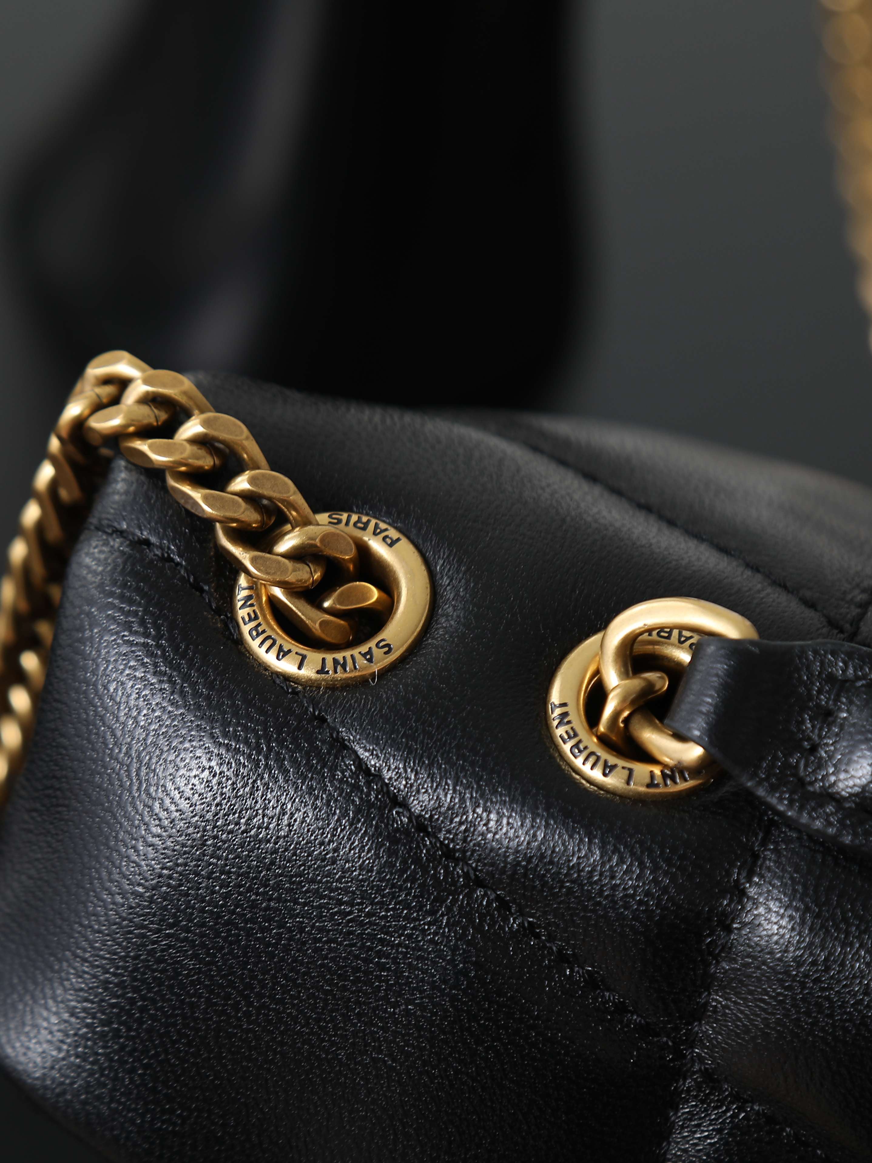 SAINT LAURENT YSL PUFFER, bronze metal accessories, double leather edge chain shoulder strap, hand-held crossbody single-shoulder bag, black
