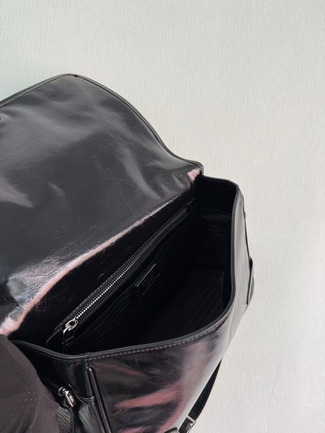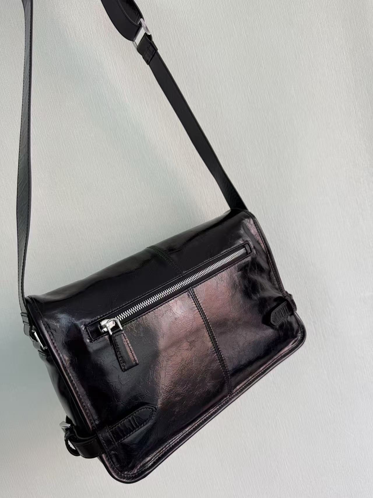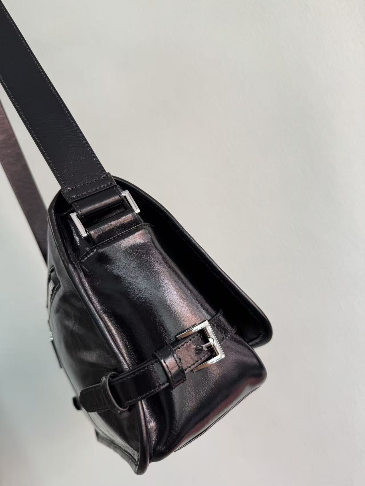 PRADA enamel metal triangular logo magnetic clasp opening and closing crossbody single-shoulder bag, regular men\'s black style