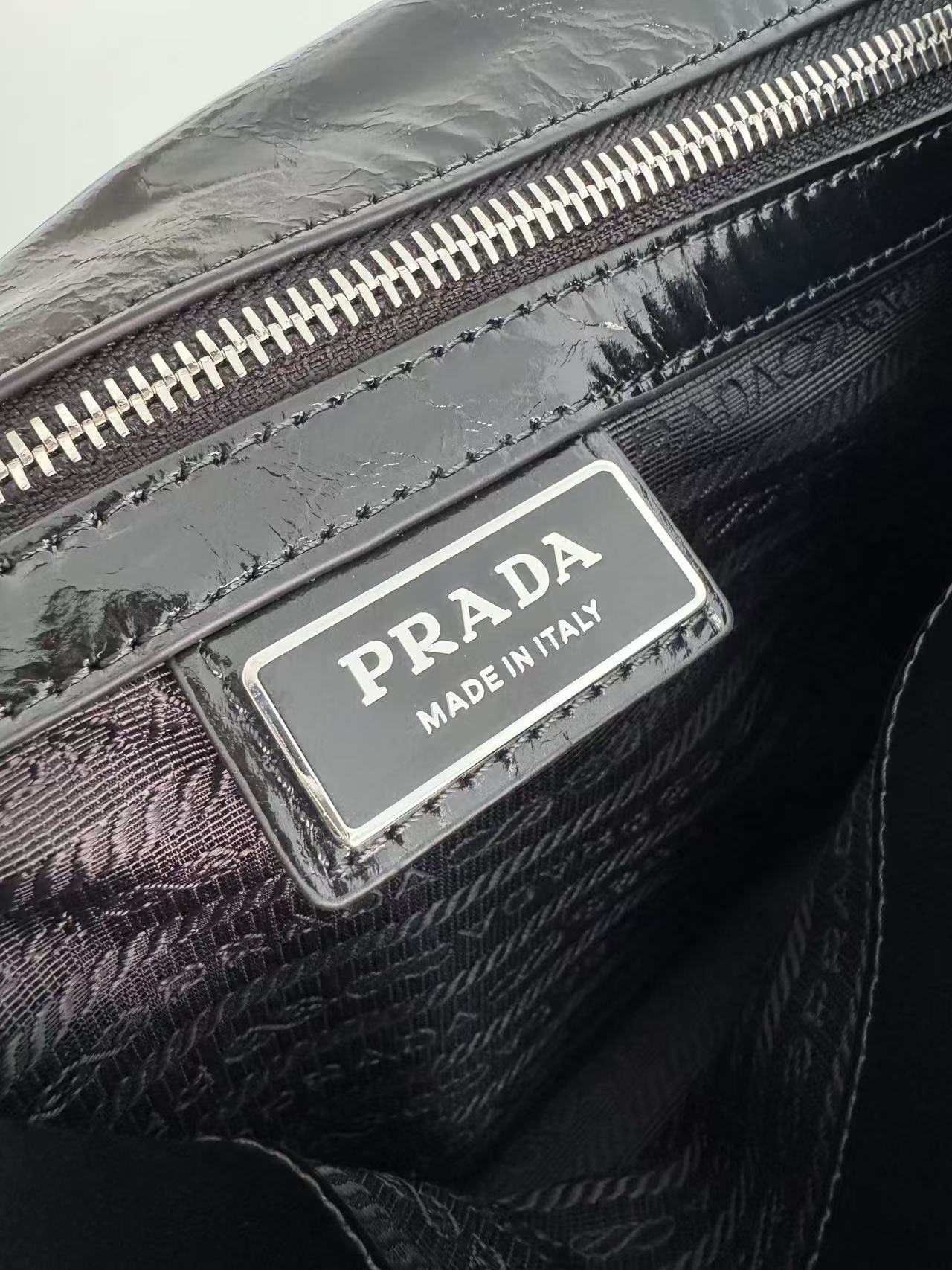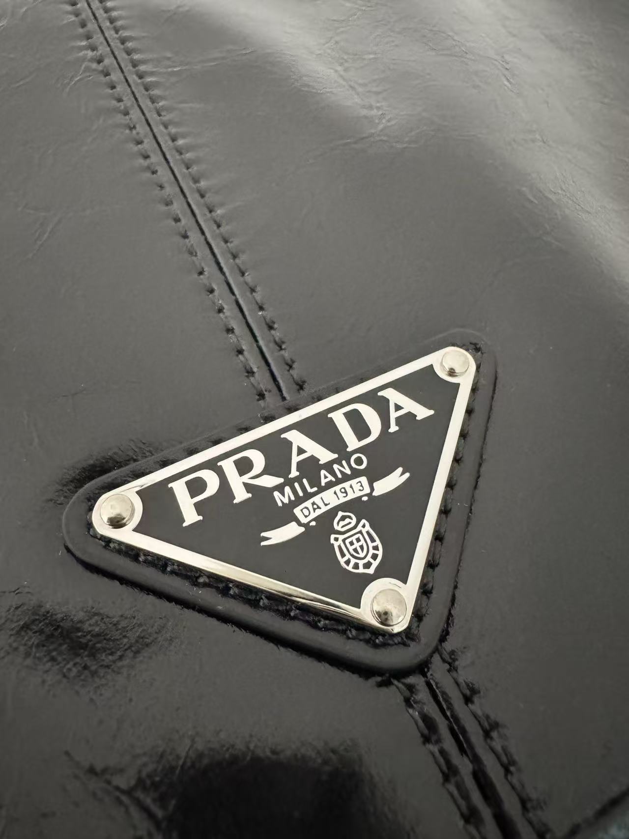 PRADA Explore enamel metal triangular logo zipper open shoulder bag for women, large size