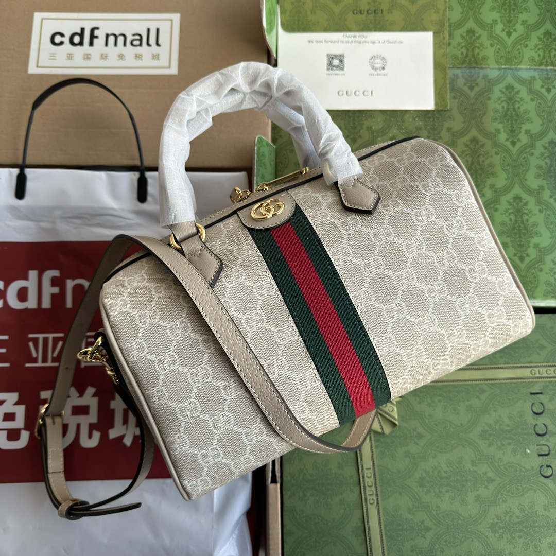 GUCCI Ophidia detachable shoulder strap zipper opening and closing GG Supreme single-shoulder crossbody handbag mini women\'s beige and white