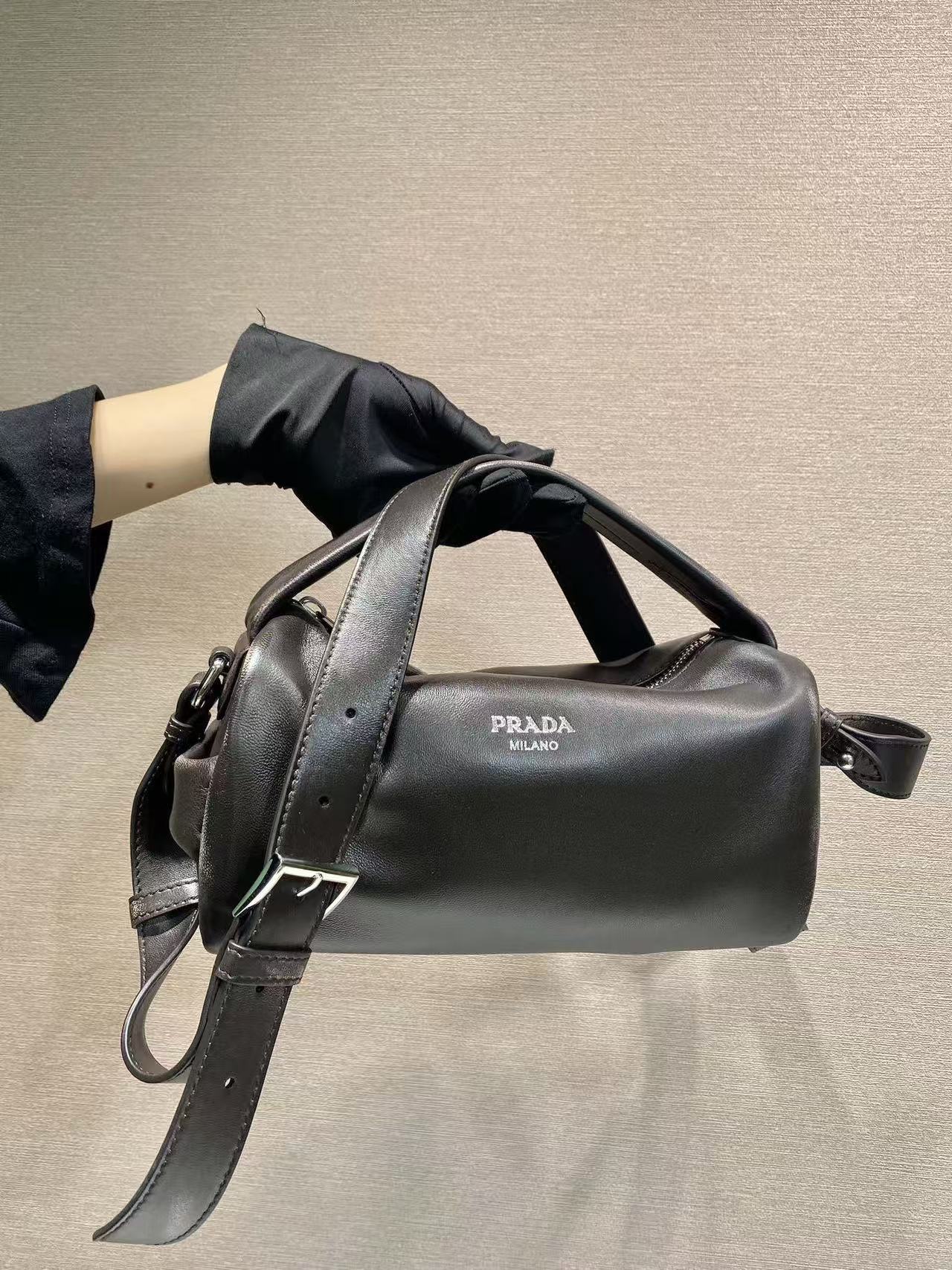 PRADA Explore enamel metal triangular logo zipper open shoulder bag for women, large size
