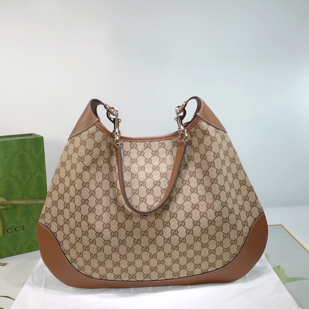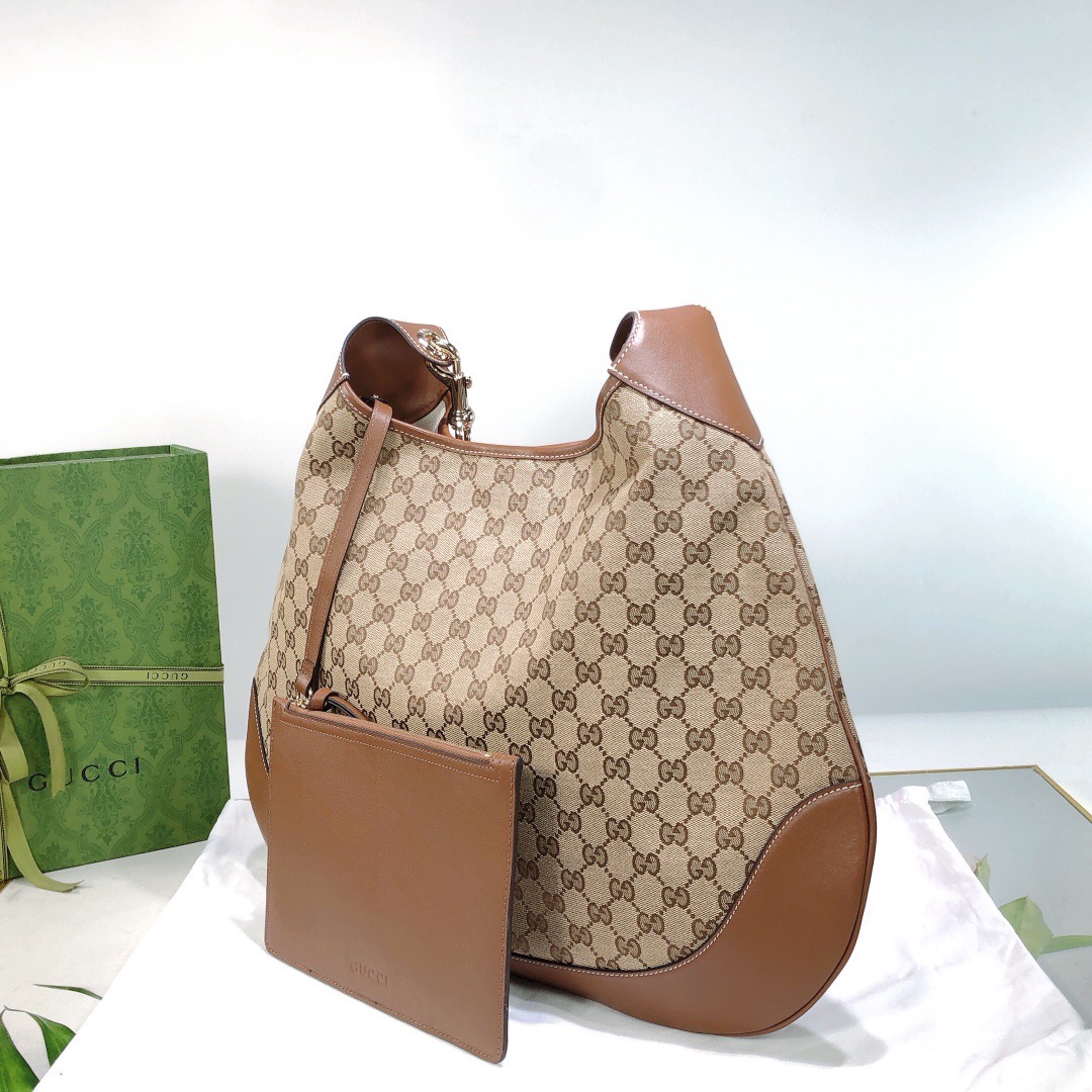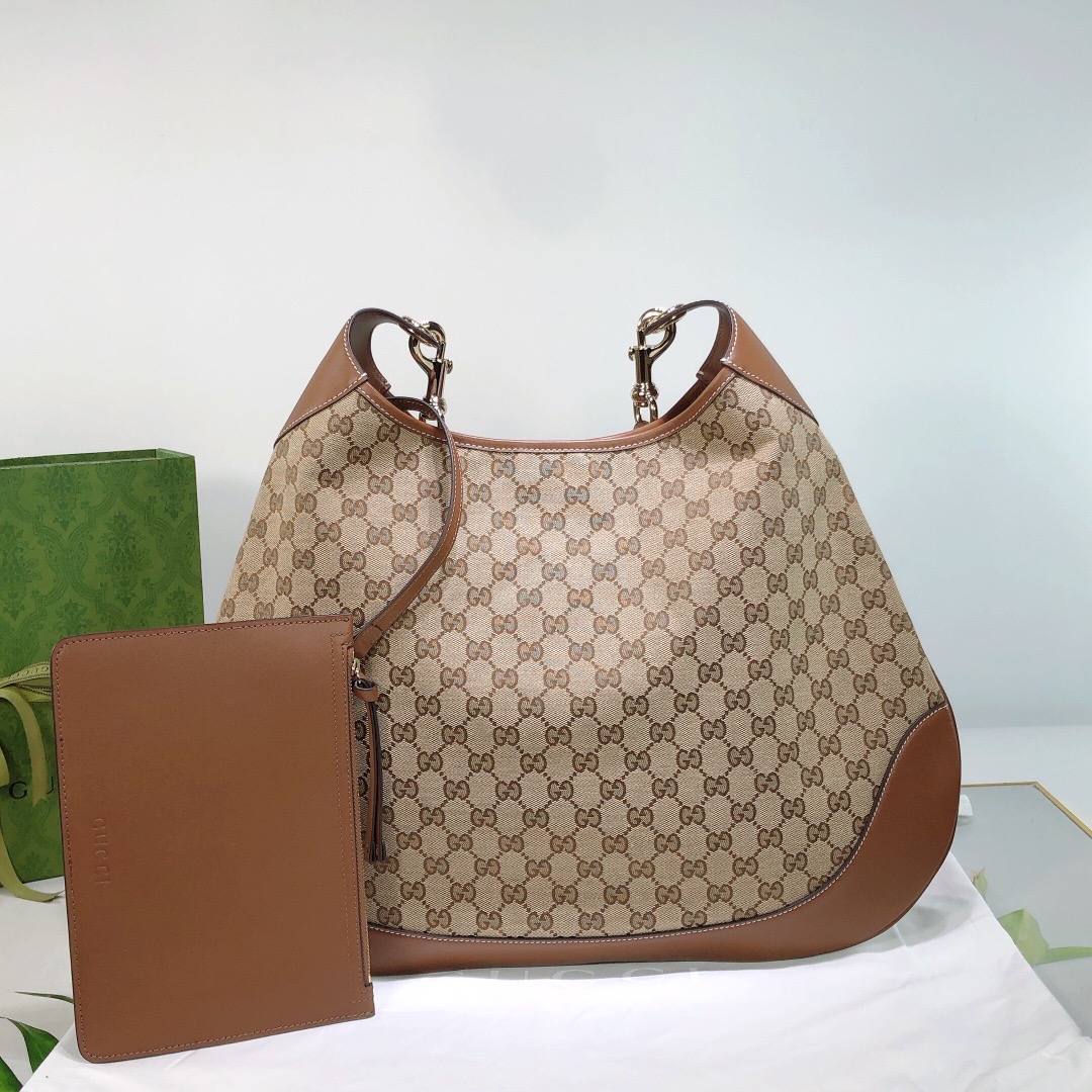 GUCCI Body Detachable and adjustable shoulder strap magnetic clasp opening and closing Original single-shoulder handbag, medium size for women, beige and dark brown