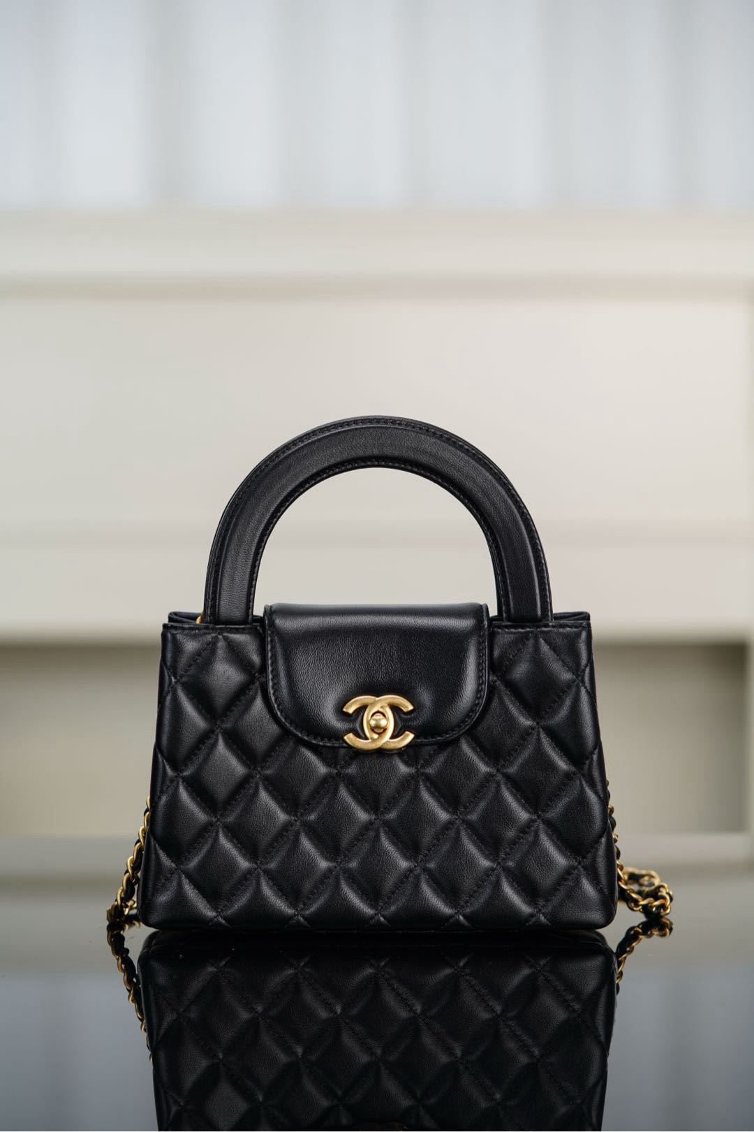 CHANEL 25A kelly Gold buckle Double C Logo diamond-shaped checkered quilted sheepskin gold metal handbag mini Black
