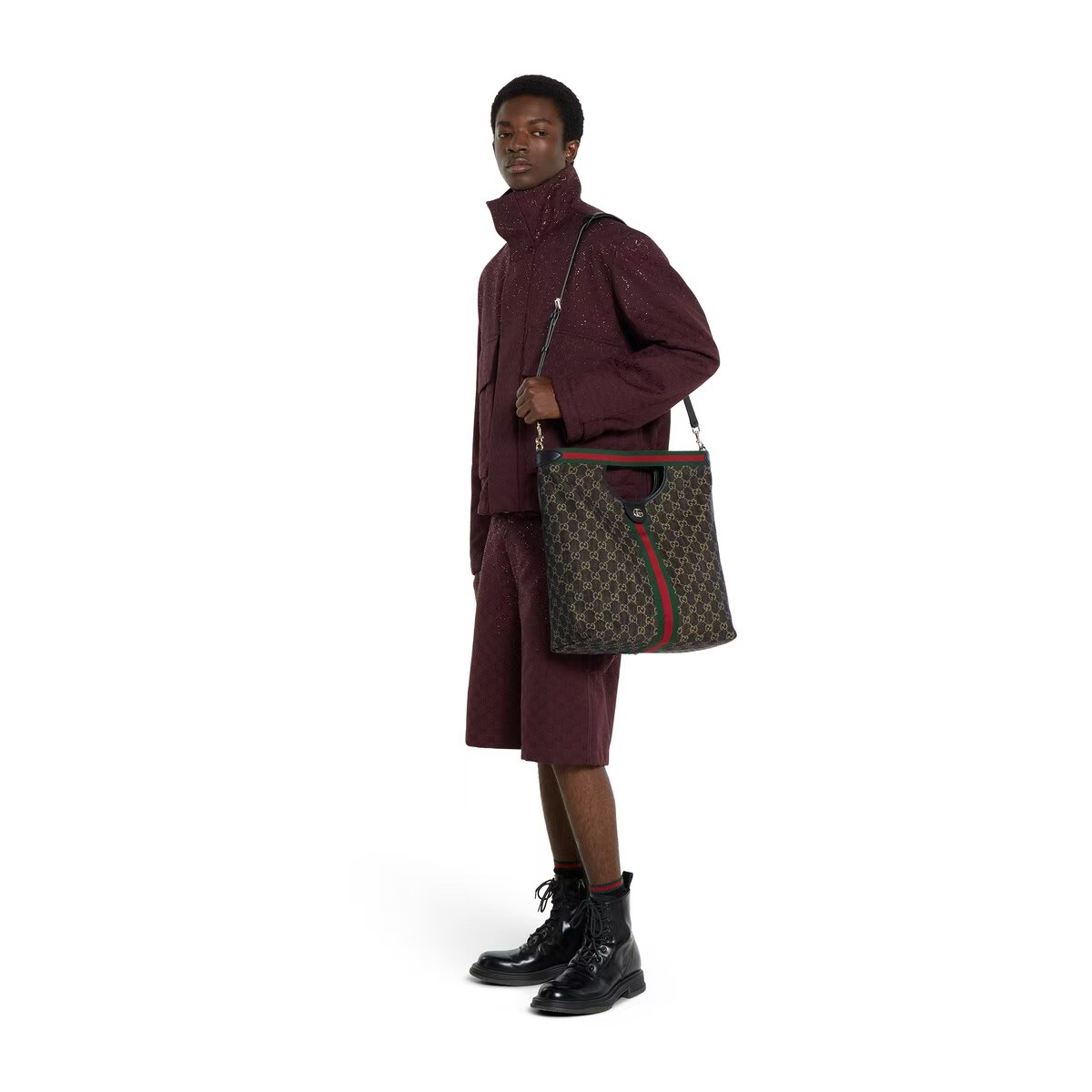 GUCCI Giglio brand logo Tote bag, shopping bag, crossbody bag, handbag, large men\'s size, black and white