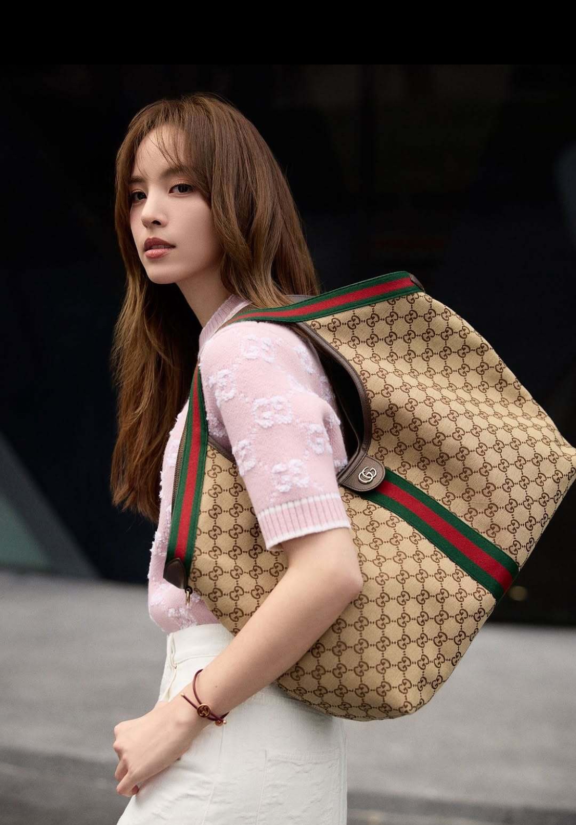 GUCCI GIGLIO light gold accessories, striped Tote bag, shopping bag, shoulder bag, handbag, large women\'s size, beige and dark brown