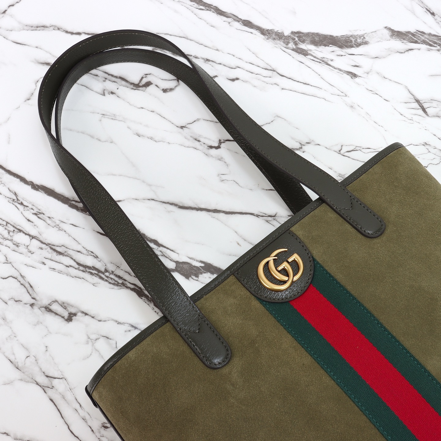 GUCCI Ophidia brand logo, classic Tote bag, shopping bag, shoulder bag, medium size for women, dark green