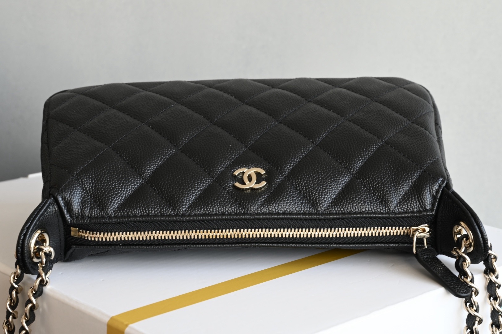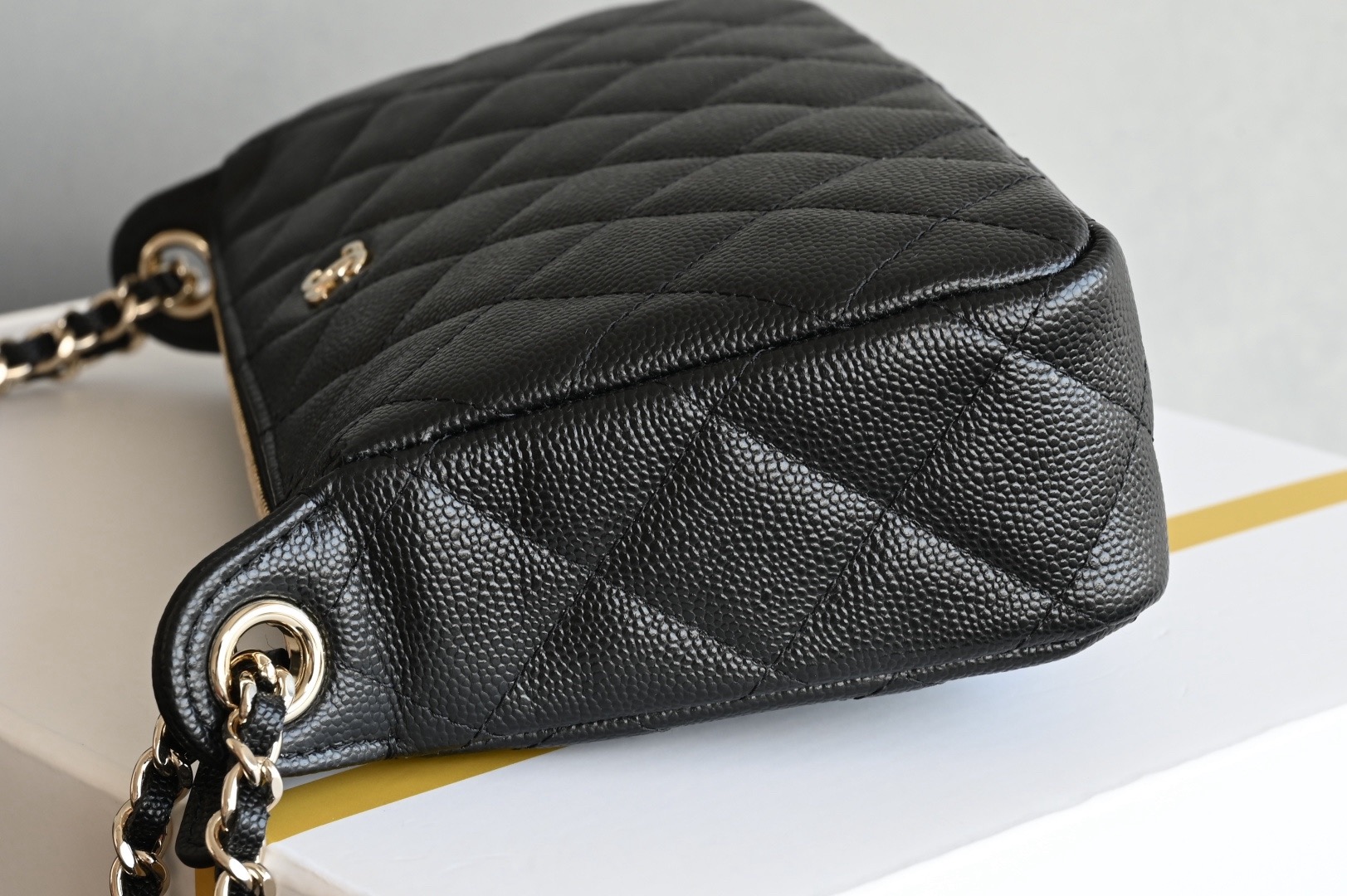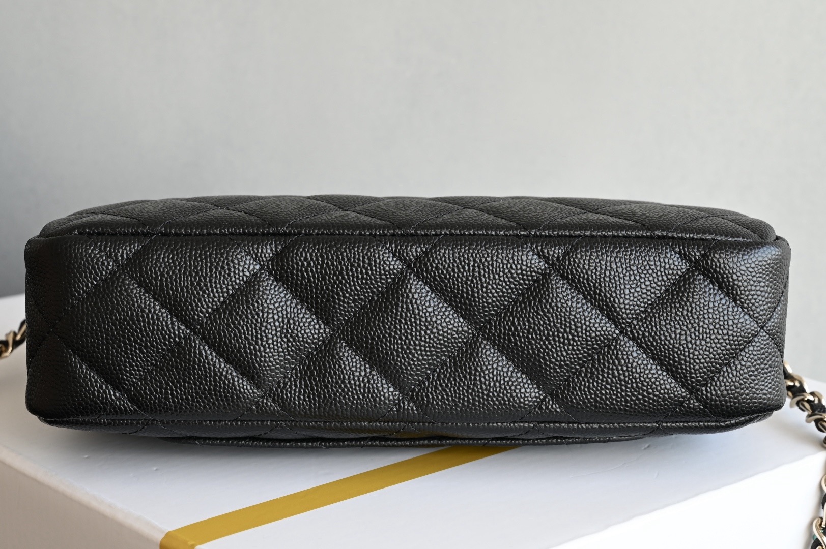 CHANEL 25A grain cowhide material, gold metal HOBO underarm bag, crossbody single-shoulder bag, black