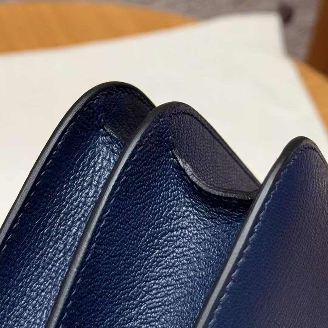 HERMES Constance 18 Silver buckle crossbody single-shoulder bag 18 Women\'s 7U Navy Navy Blue