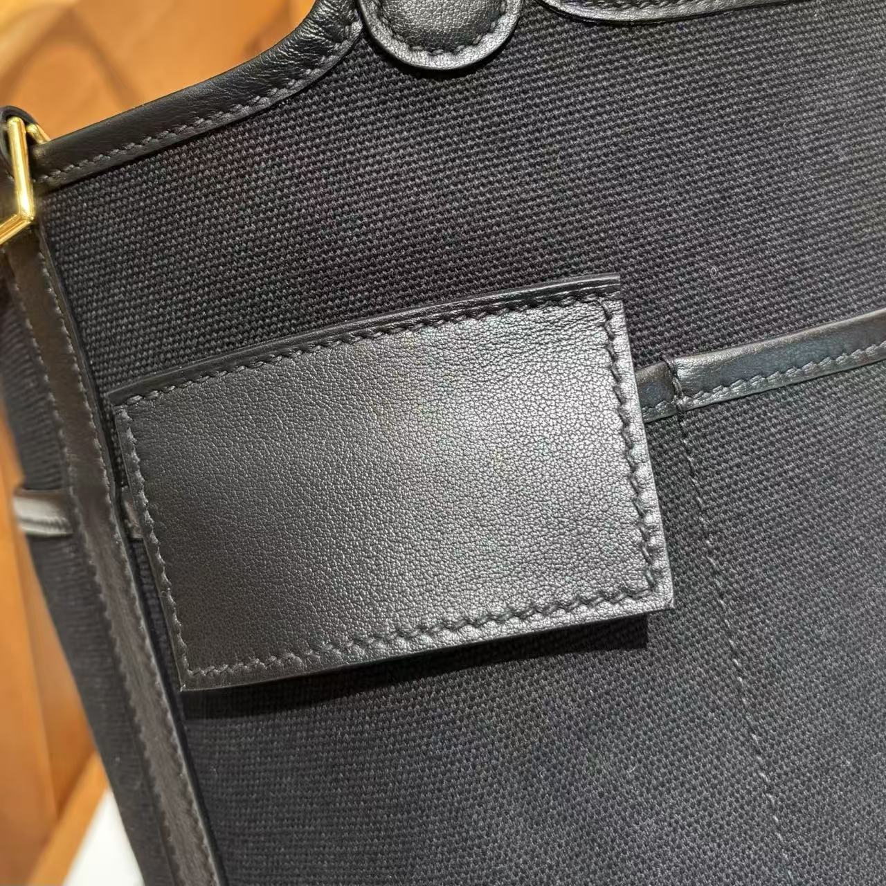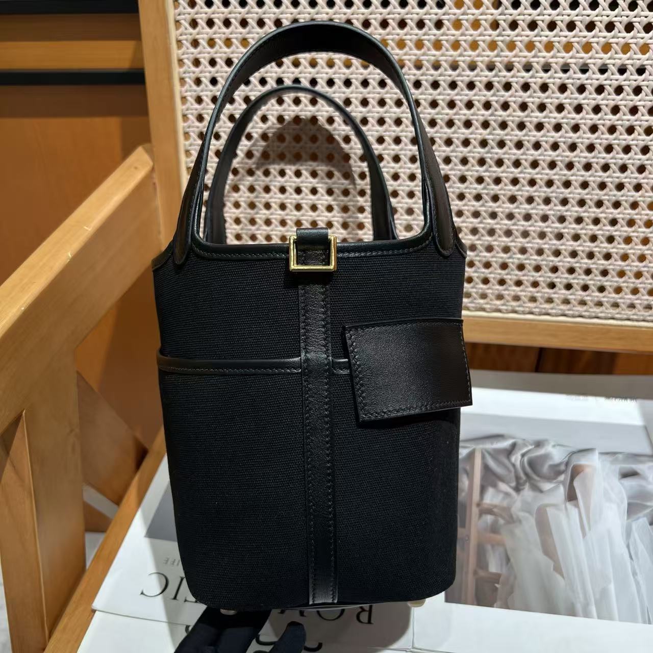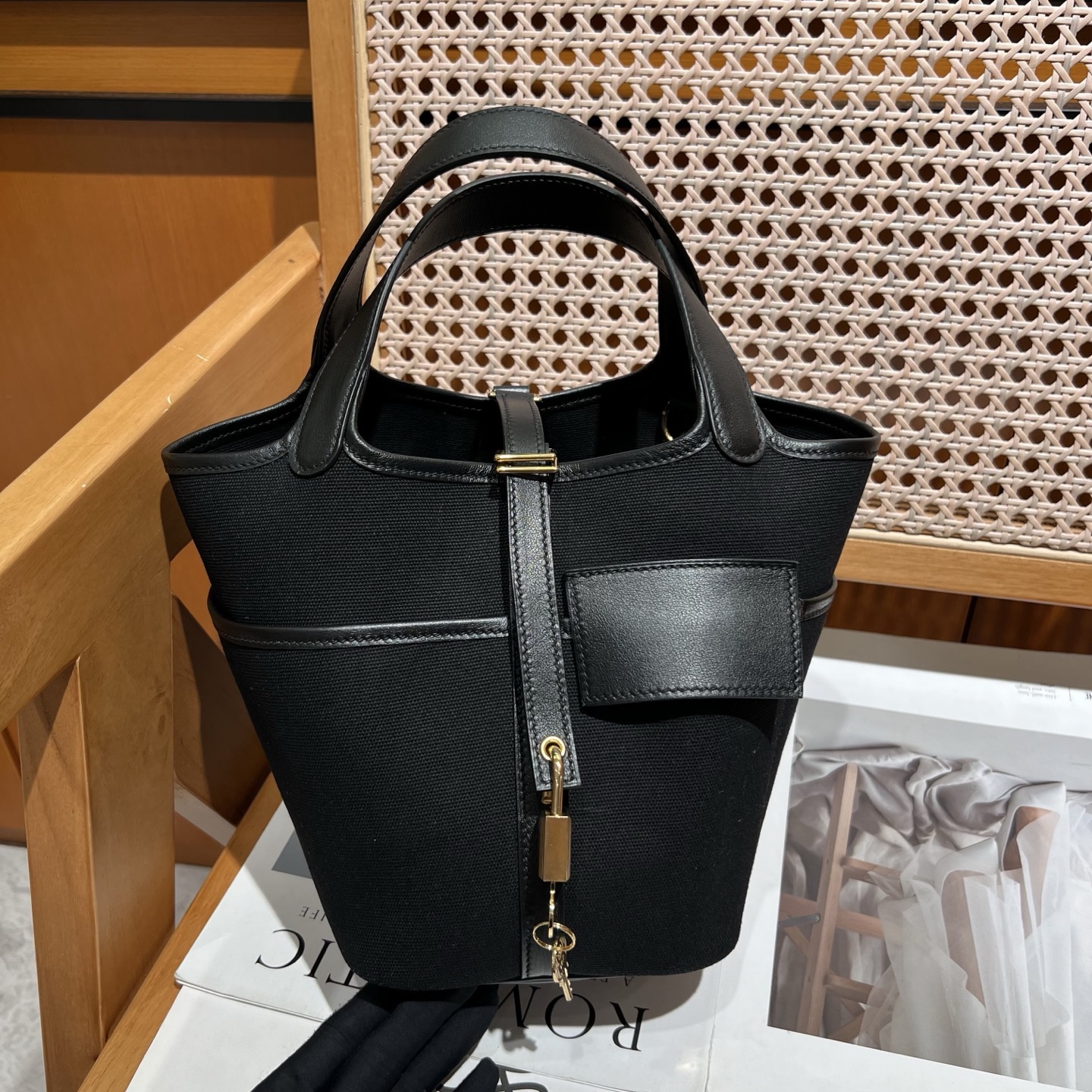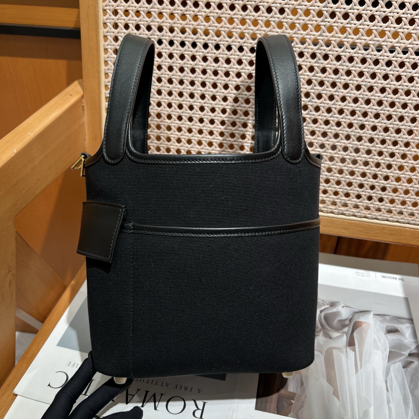 HERMES Picotin Lock 18 pocket Golden Buckle Basket Bucket Bag Handbag 18 Women\'s style 89 Noir Black