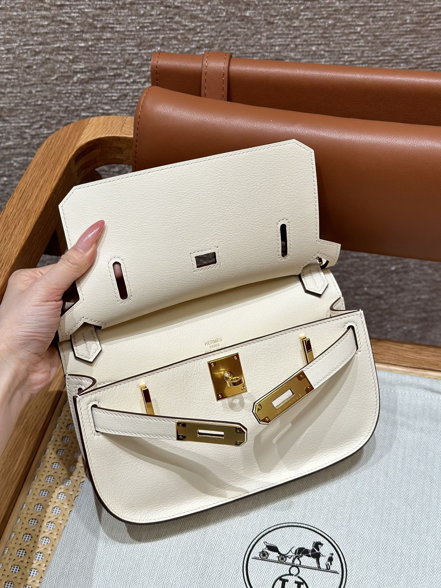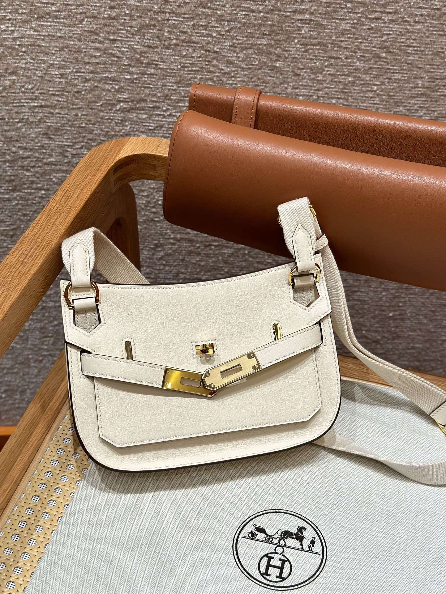 HERMES Jypsiere Gypsy gold buckle crossbody single-shoulder bag mini Women\'s cream white