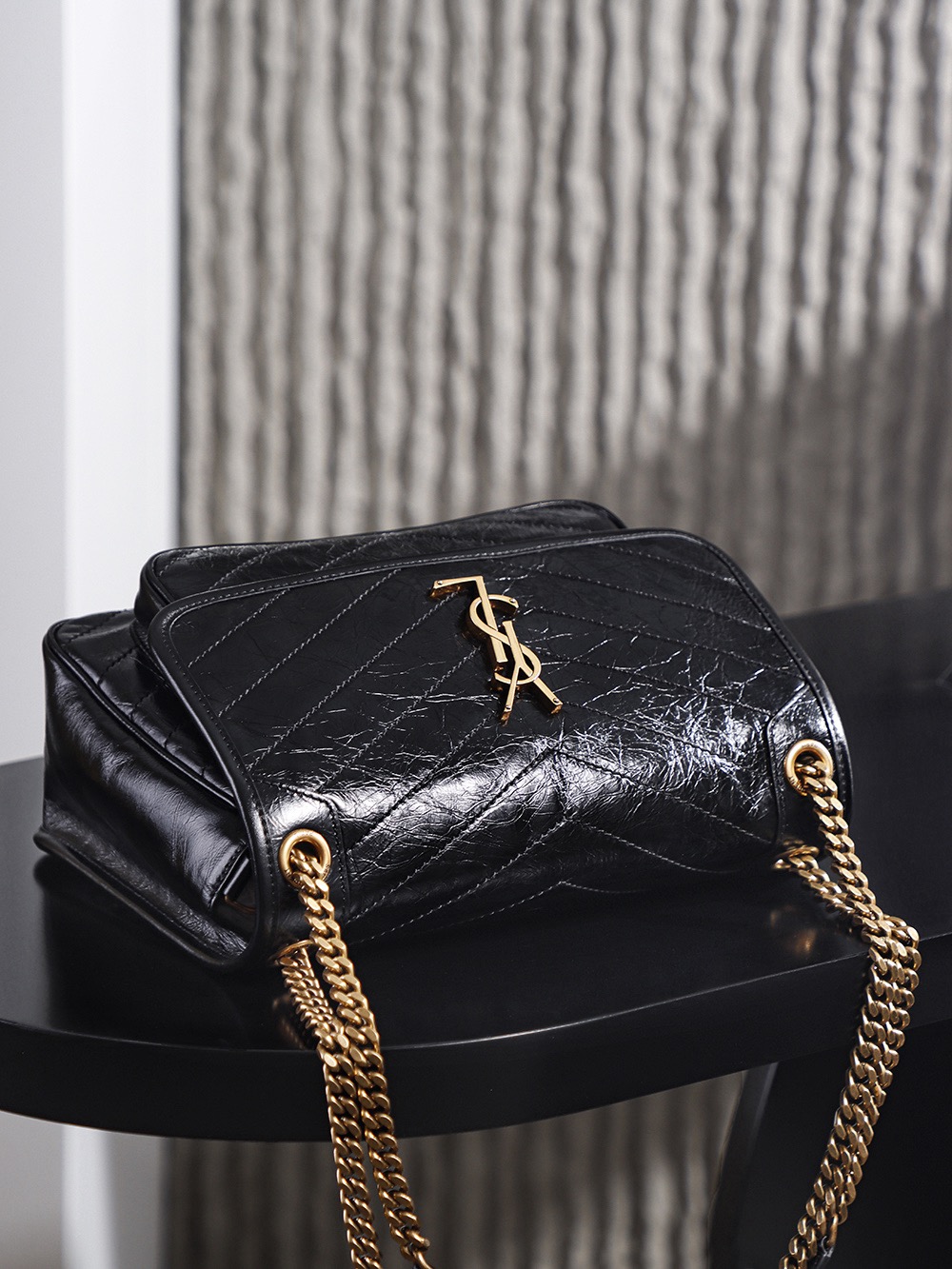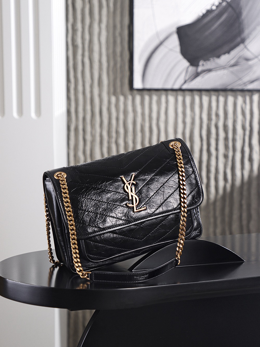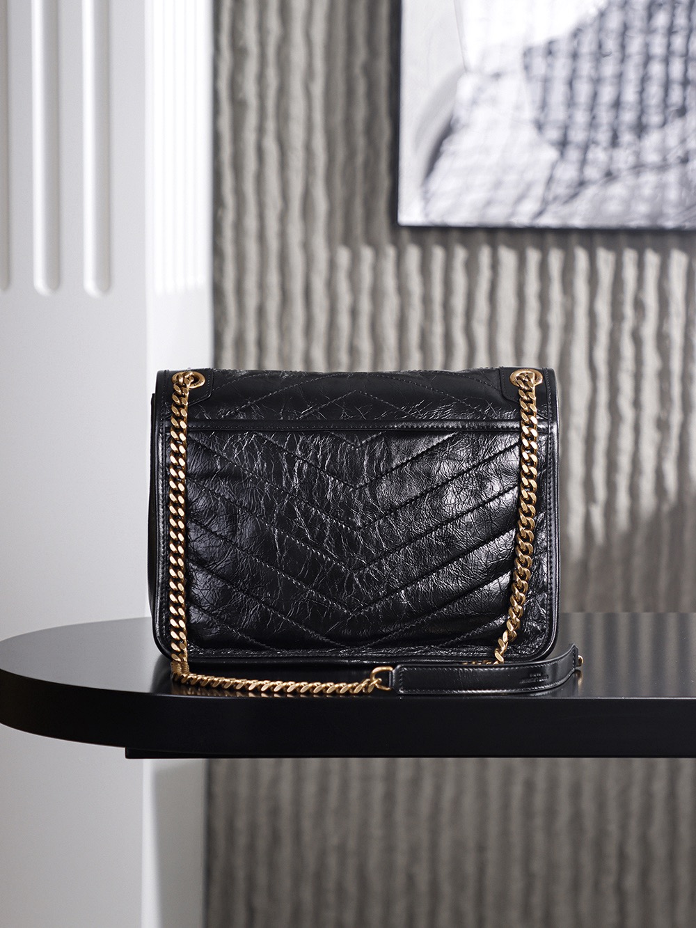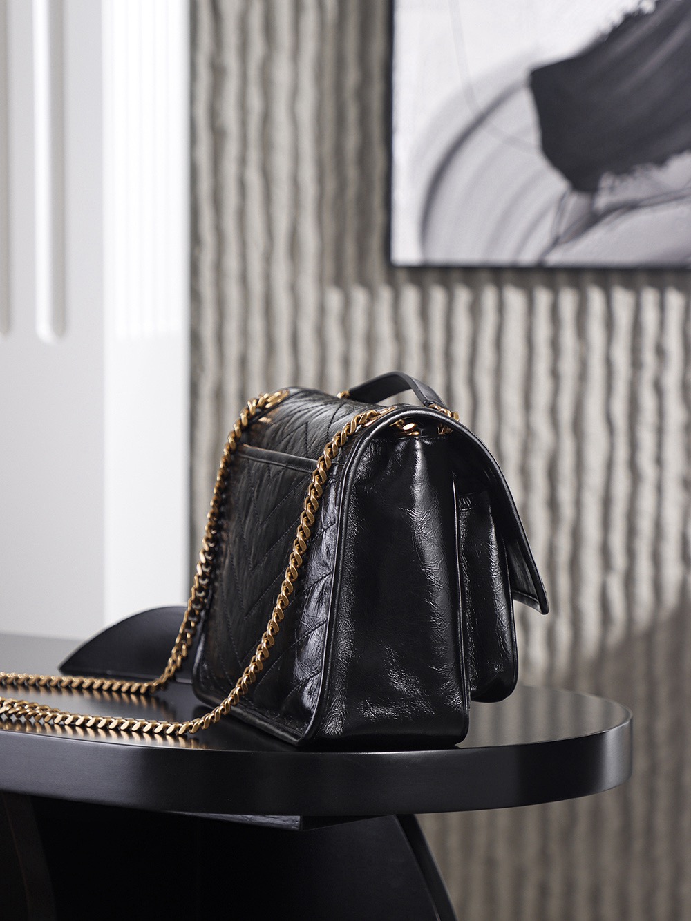 SAINT LAURENT YSL Niki V-shaped retro bronze decorative single-shoulder bag, medium size, black