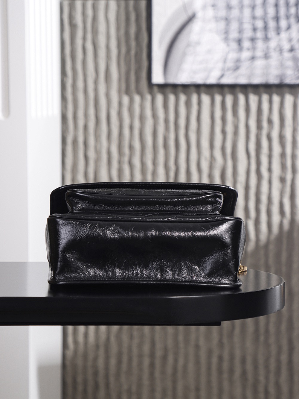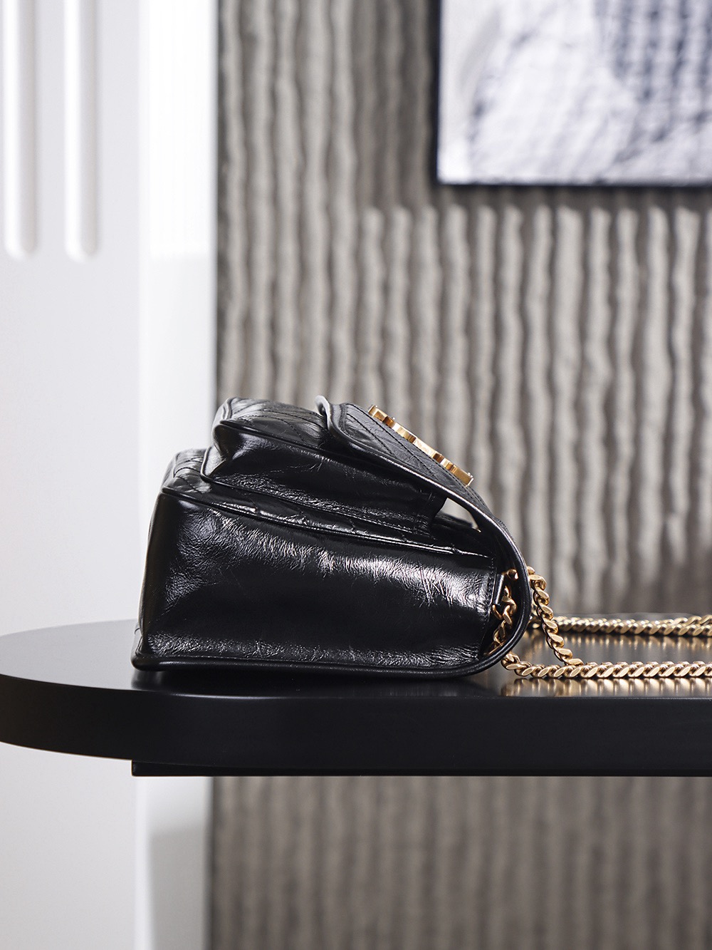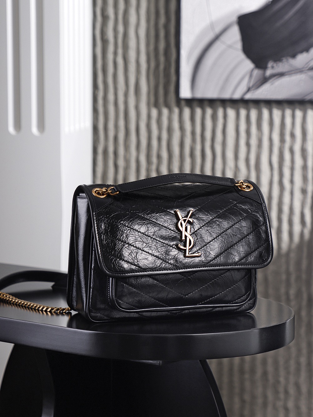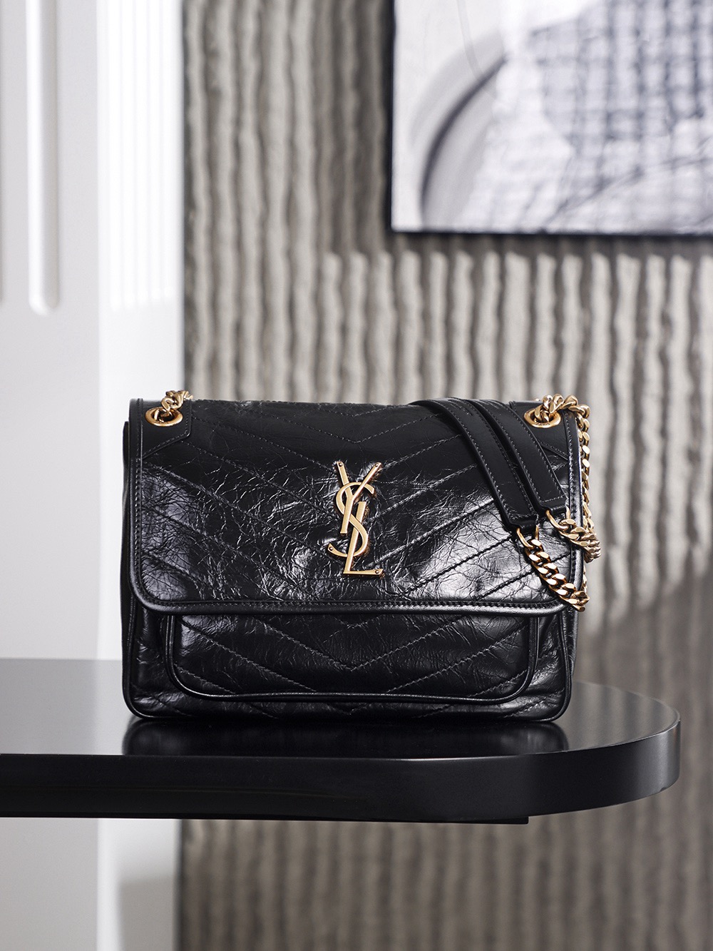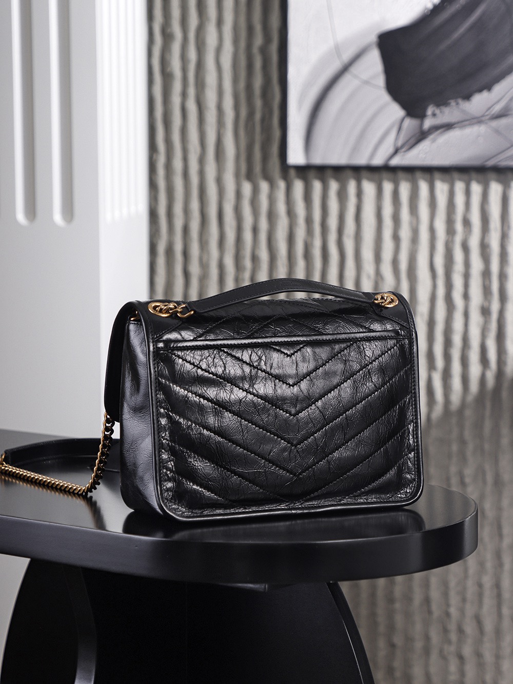 SAINT LAURENT YSL Niki V-shaped retro bronze decorative single-shoulder bag, medium size, black