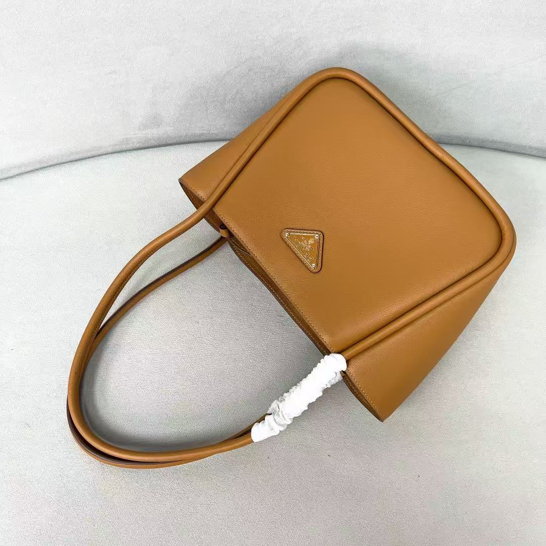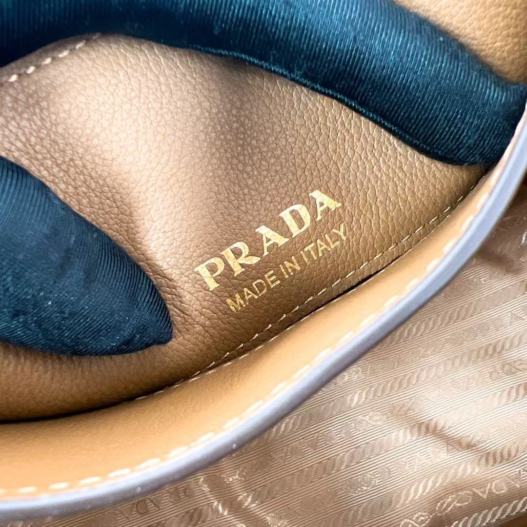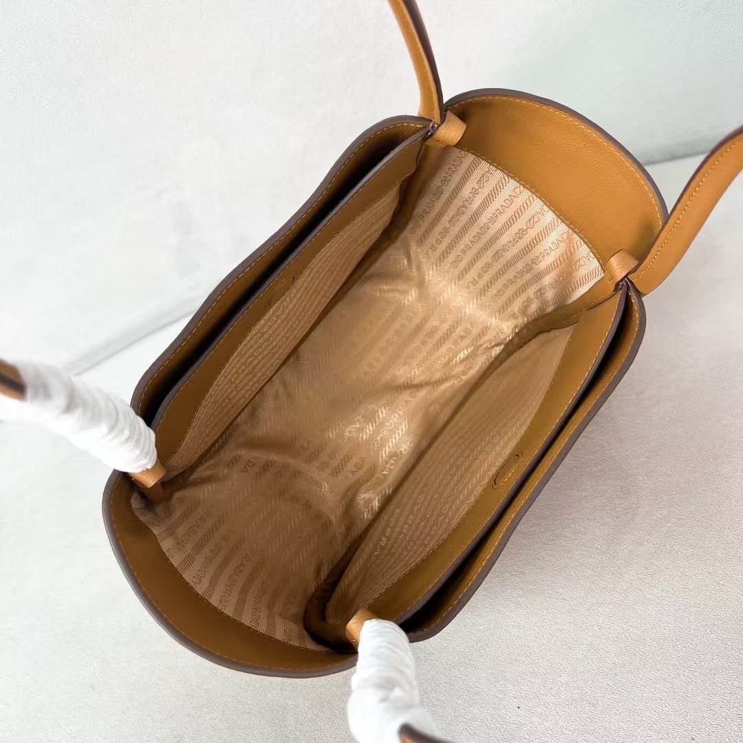 PRADA Enamel metal triangular logo magnetic closed single-shoulder handbag mini Women\'s Camel color